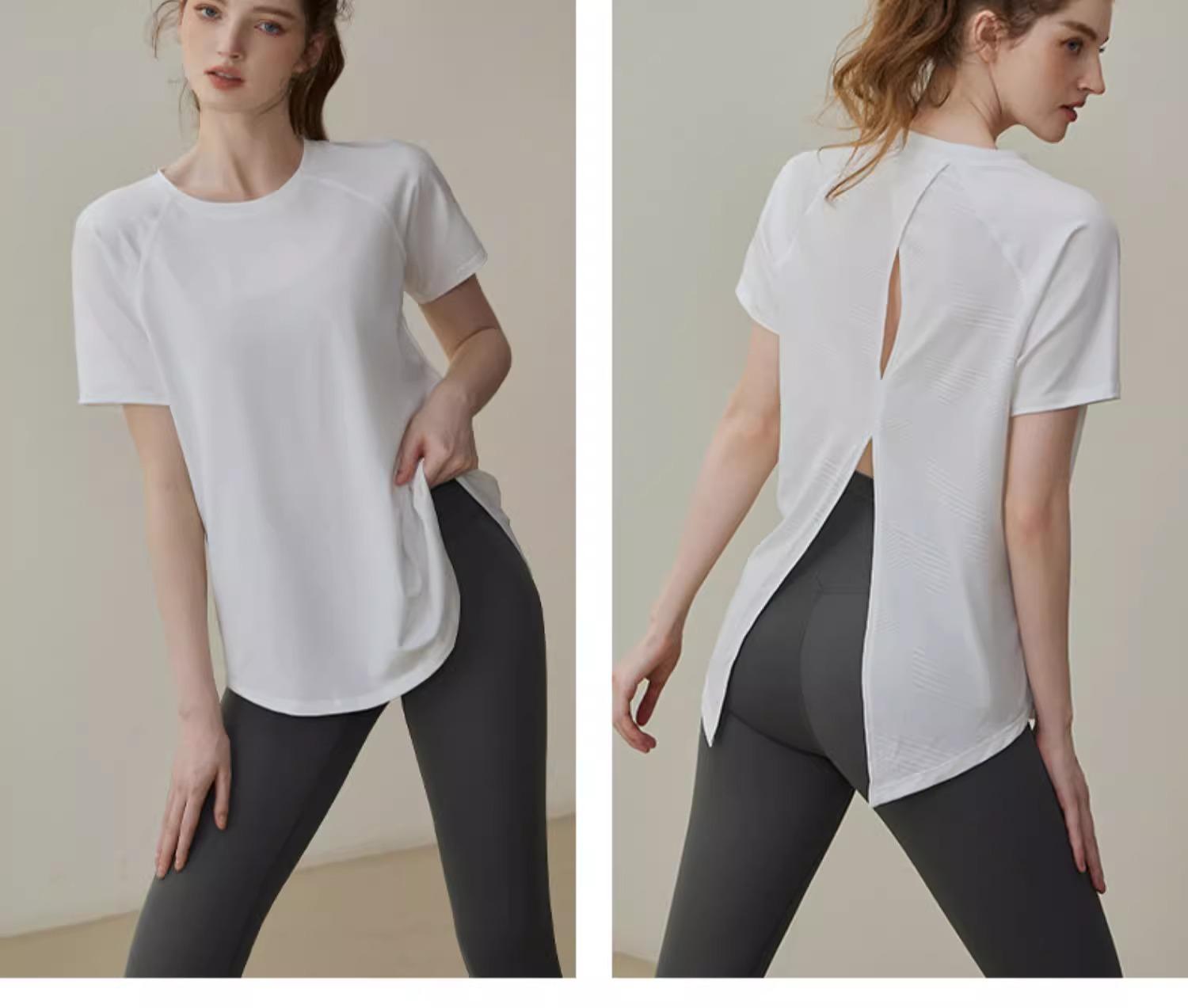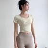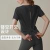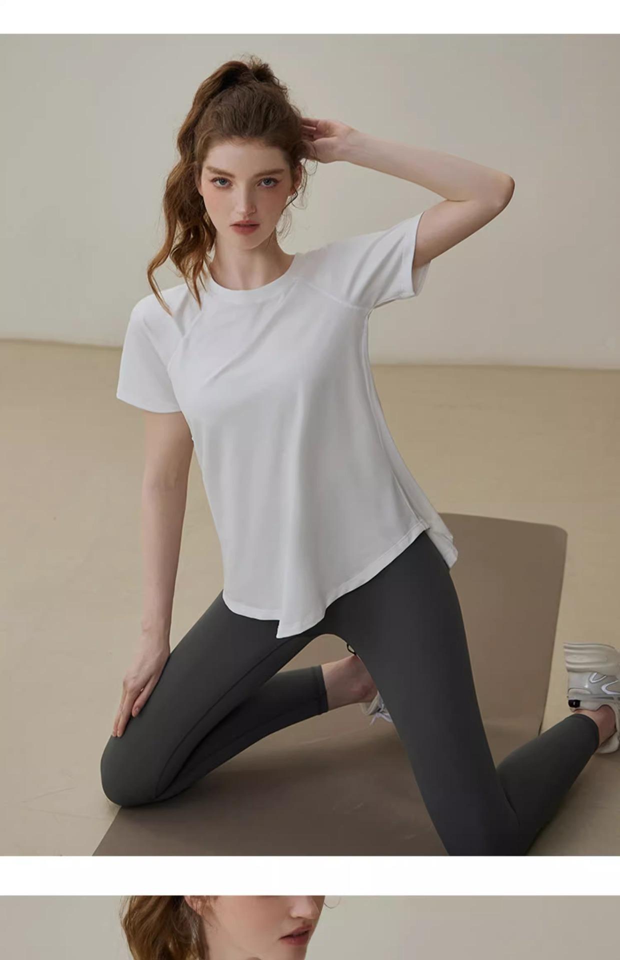 Camiseta de yoga holgada para mujer, de manga corta, para entrenamiento de pilates, fitness y running.