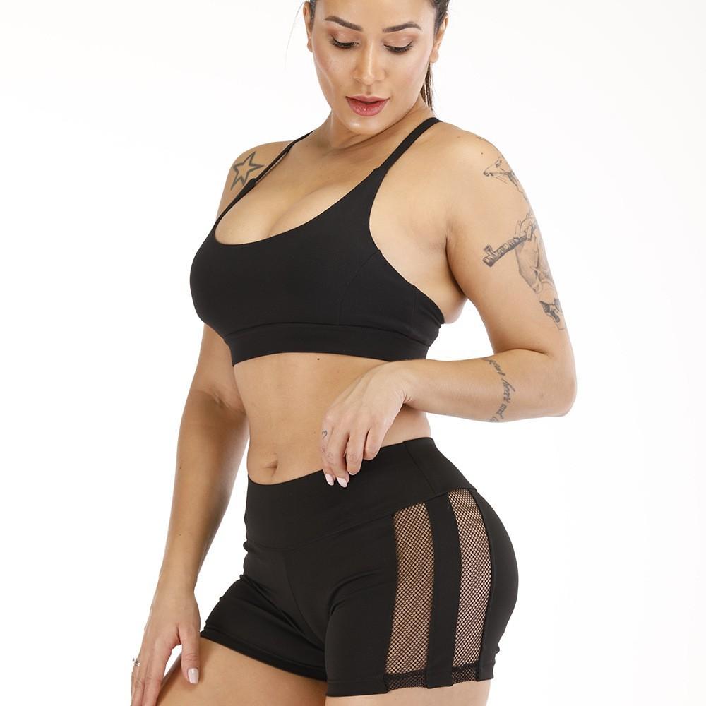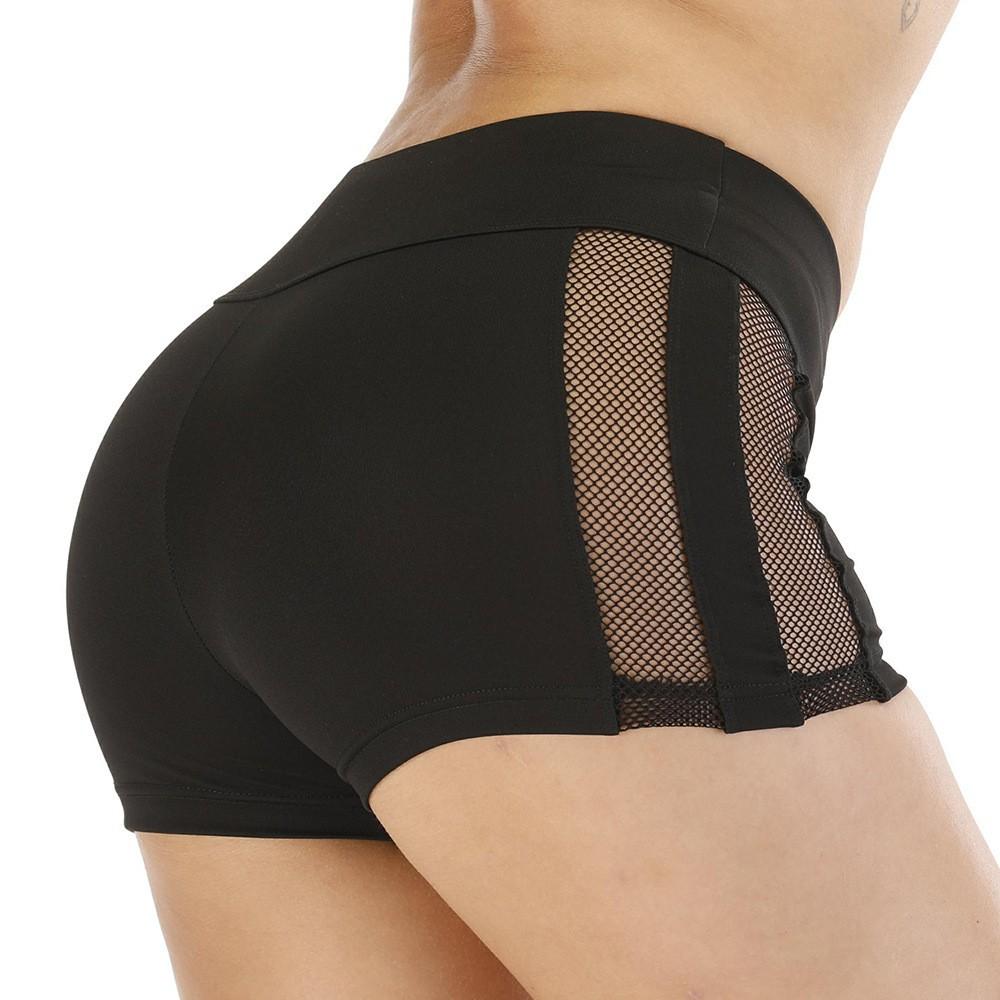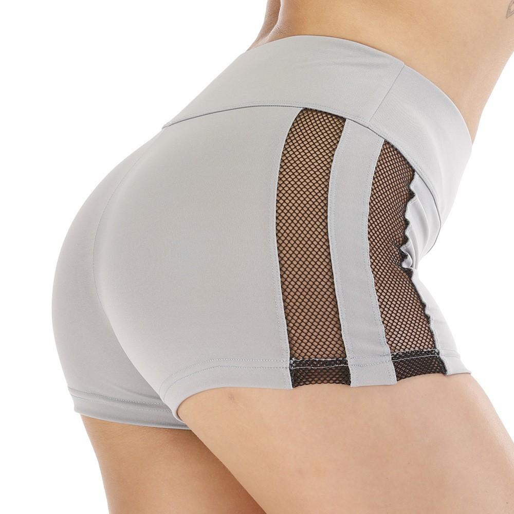 Pantalones cortos de yoga de malla con agujeros grandes y costuras laterales transfronterizas de Amazon Europa y Estados Unidos para mujer, ajustados a la cadera, para correr, de tres puntos
