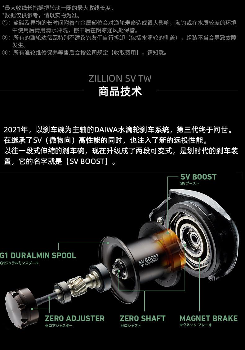 Daiwa 21 Nuevo Modelo Zillion Sv g Tw Carrete de Pesca Universal para Lanzamiento Largo Carrete Dragon Gota de Agua