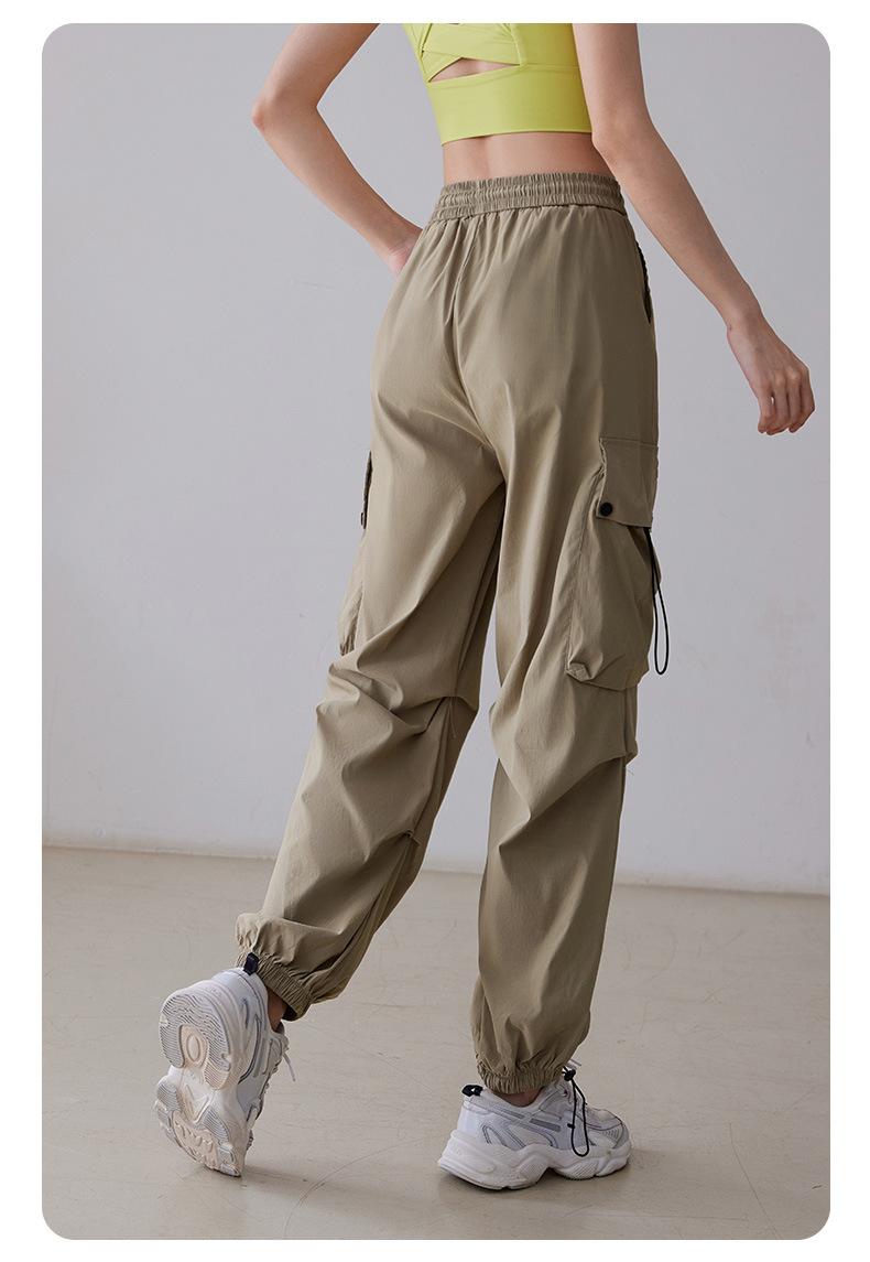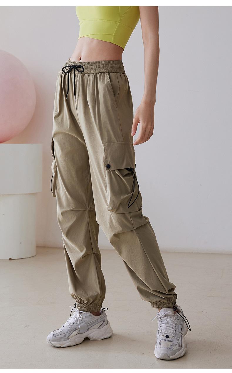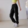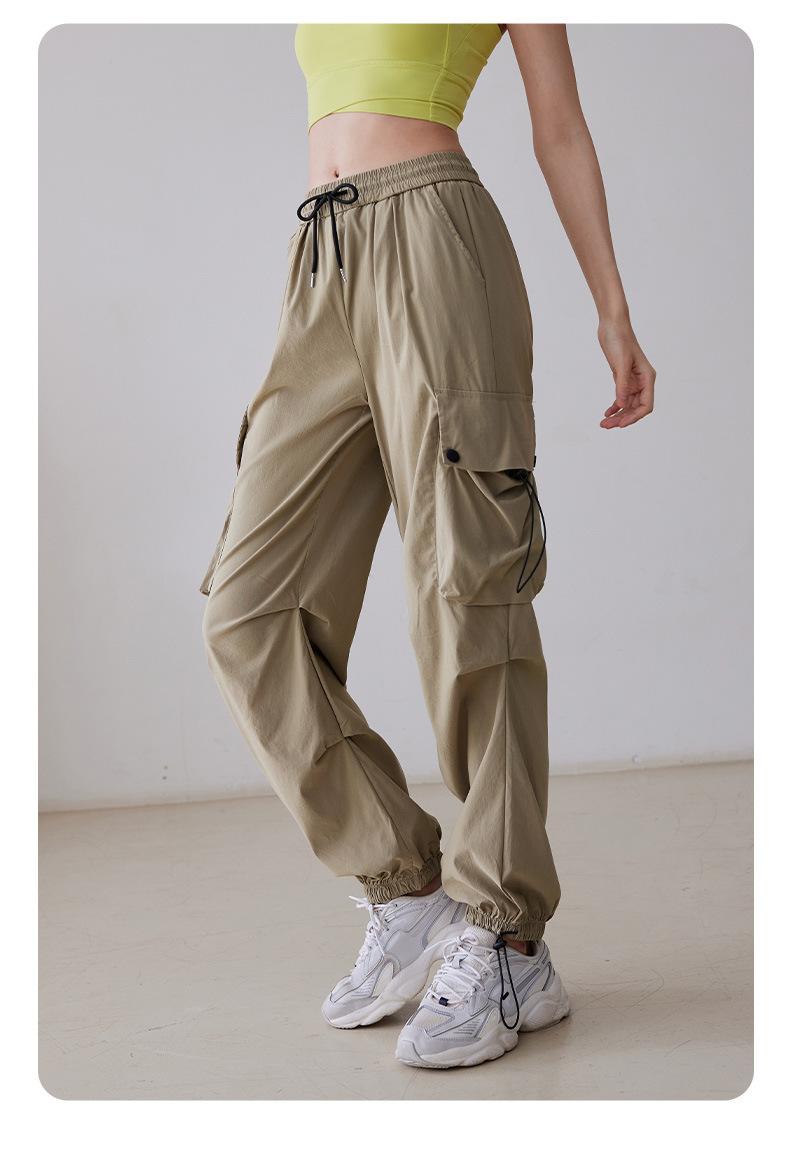 Pantalones casuales holgados de otoño con cordón de cintura alta para deportes, correr, fitness, yoga, entrenamiento, pantalones ajustados para usar en los pies.