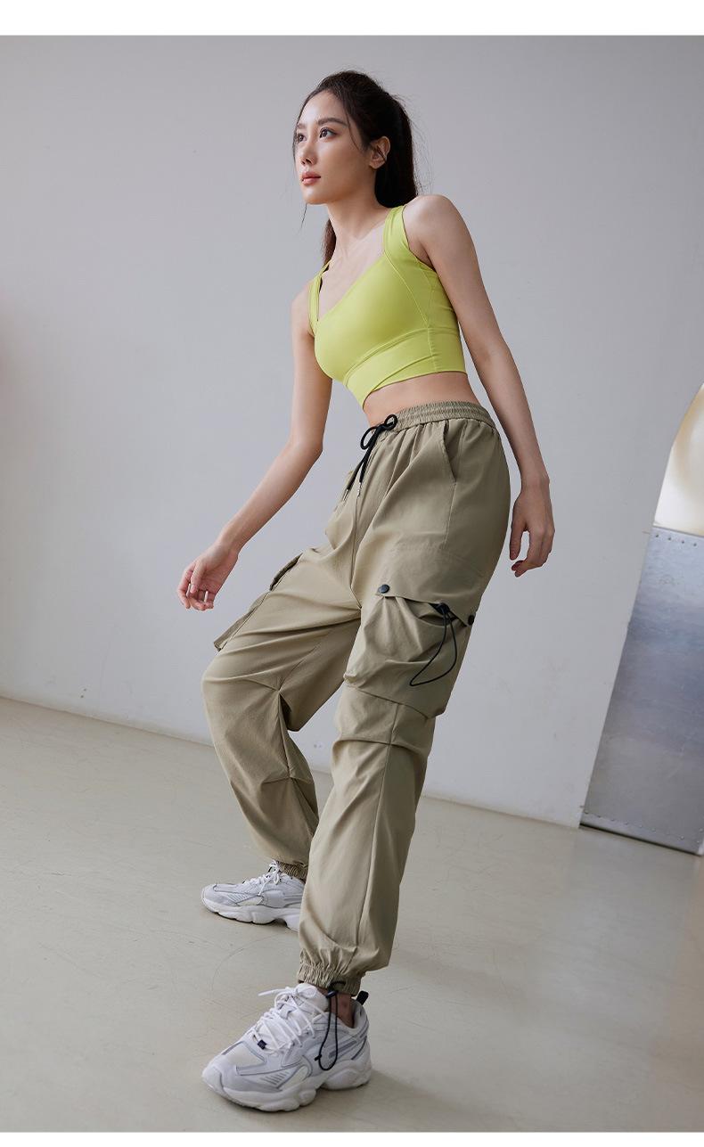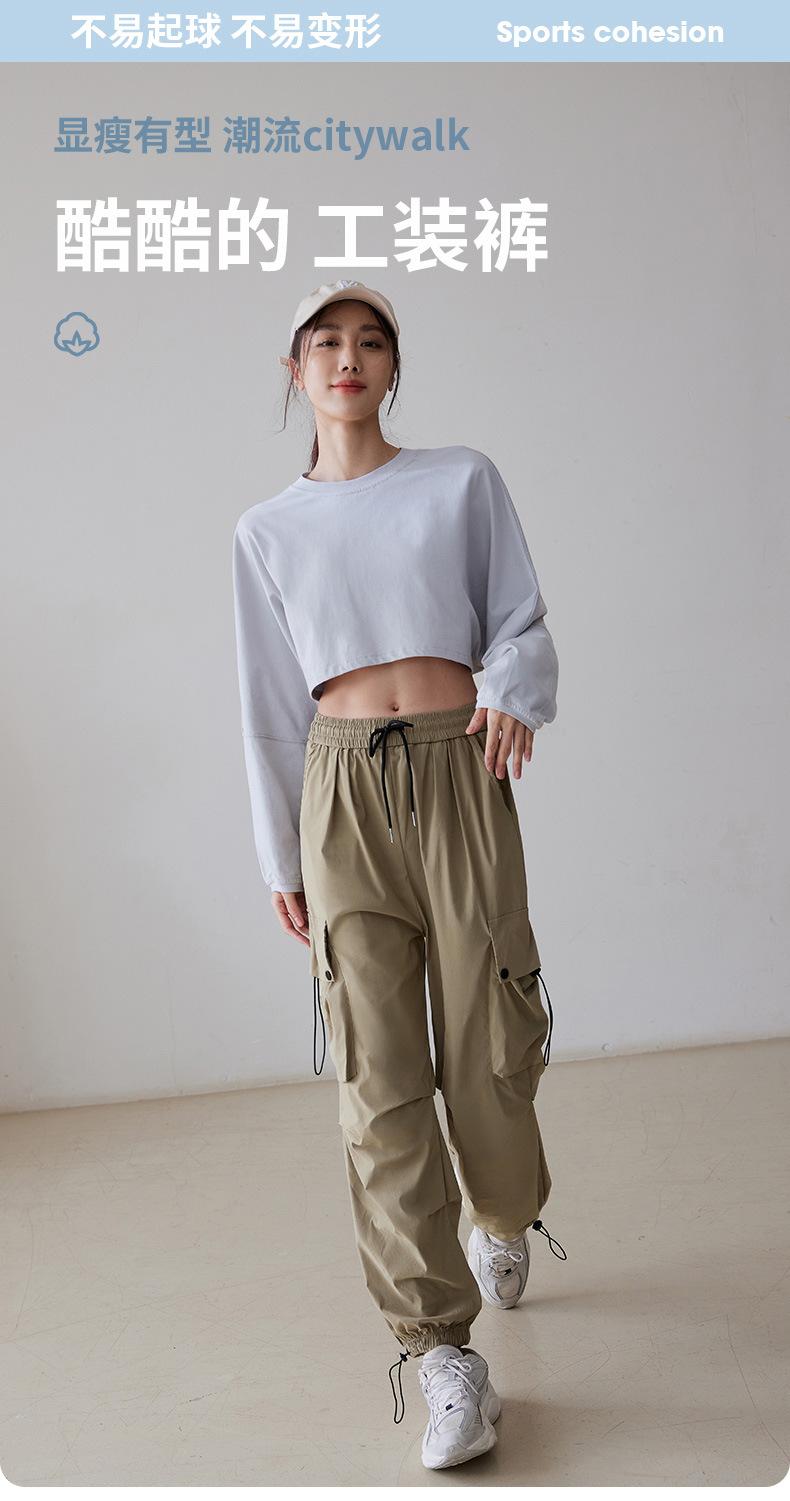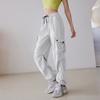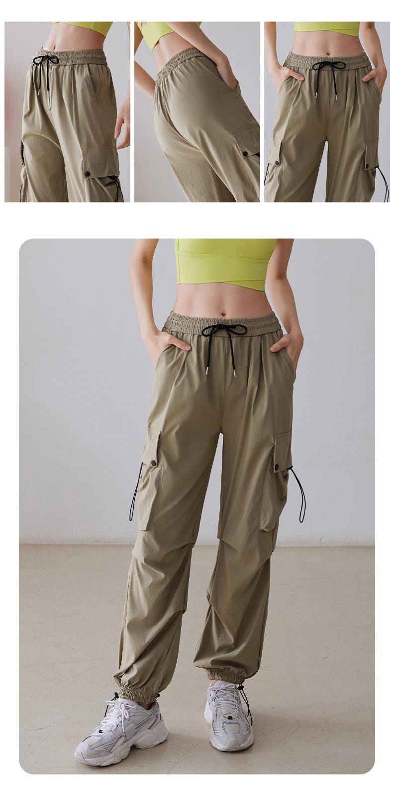Pantalones casuales holgados de otoño con cordón de cintura alta para deportes, correr, fitness, yoga, entrenamiento, pantalones ajustados para usar en los pies.