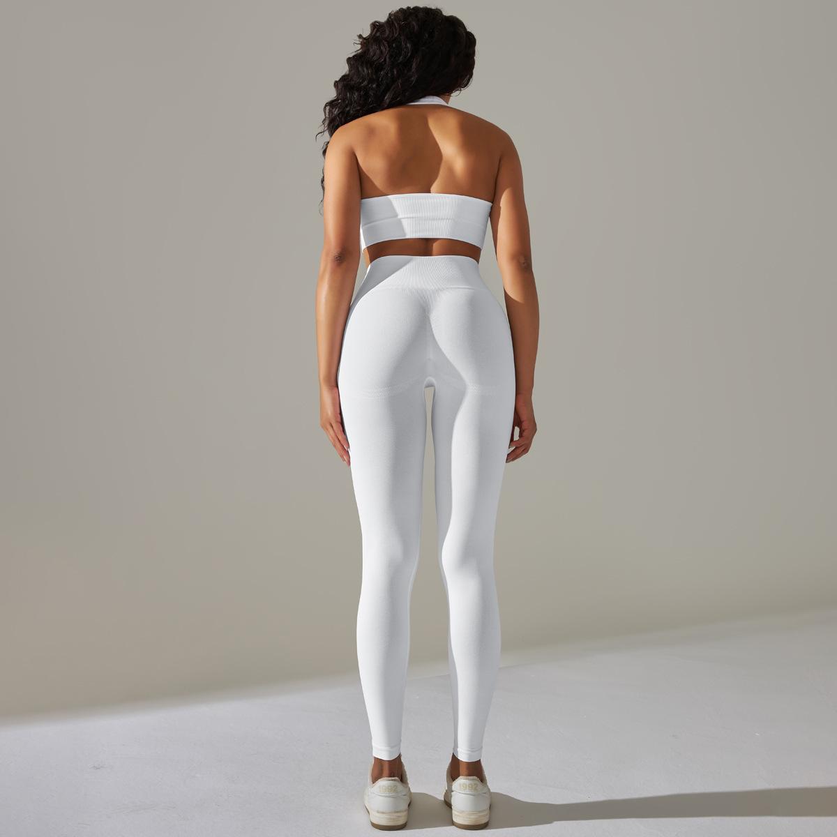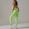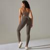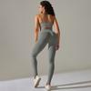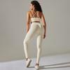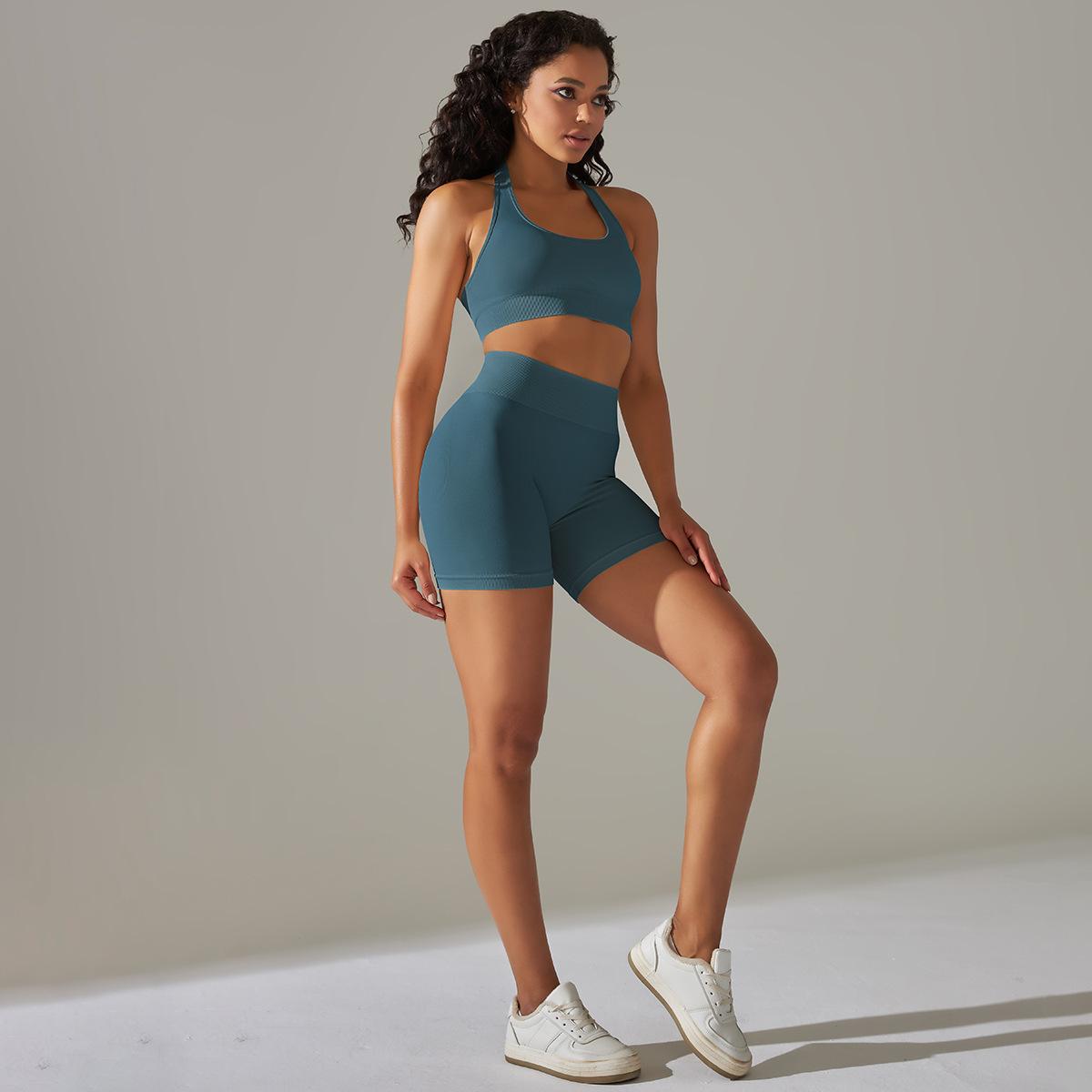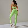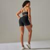 Nuevo sujetador deportivo de alta elasticidad de color sólido sin costuras transfronterizo, ropa interior para yoga, traje para correr y fitness, conjunto de dos piezas