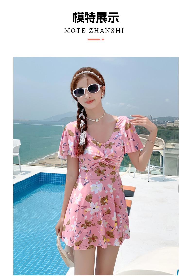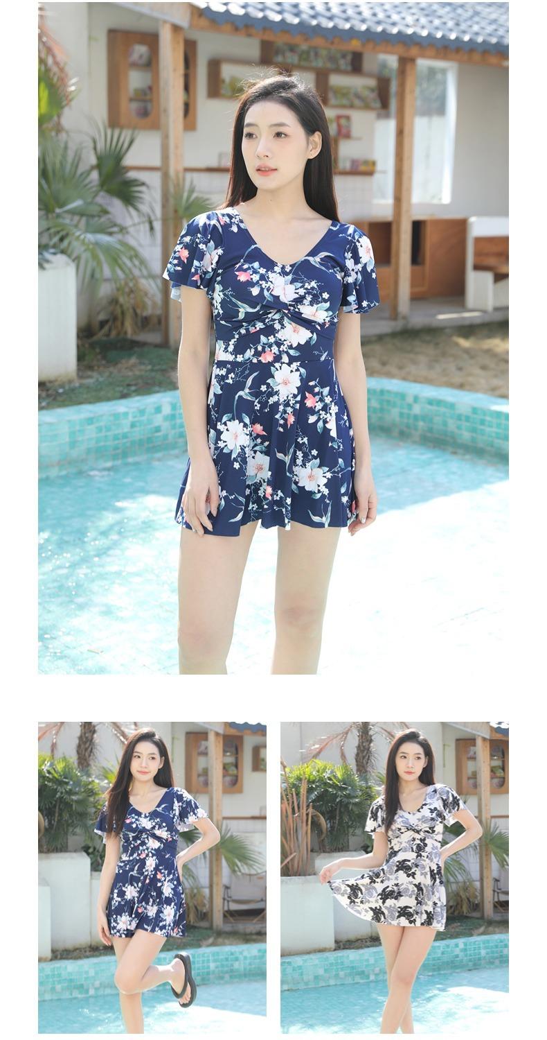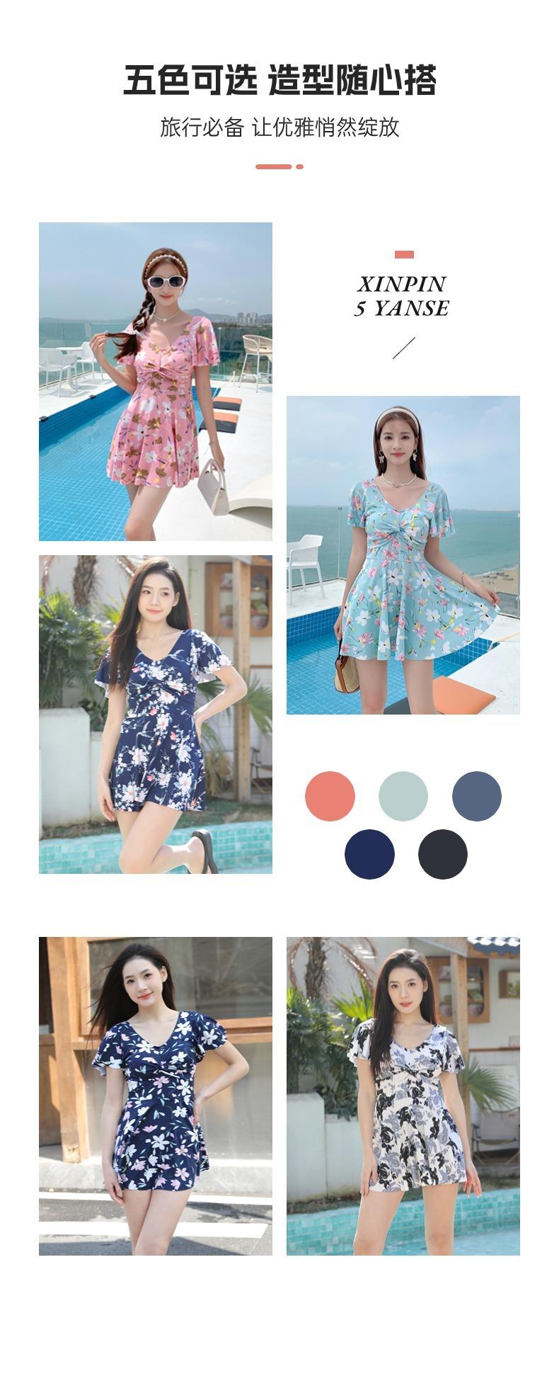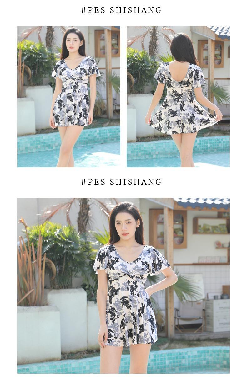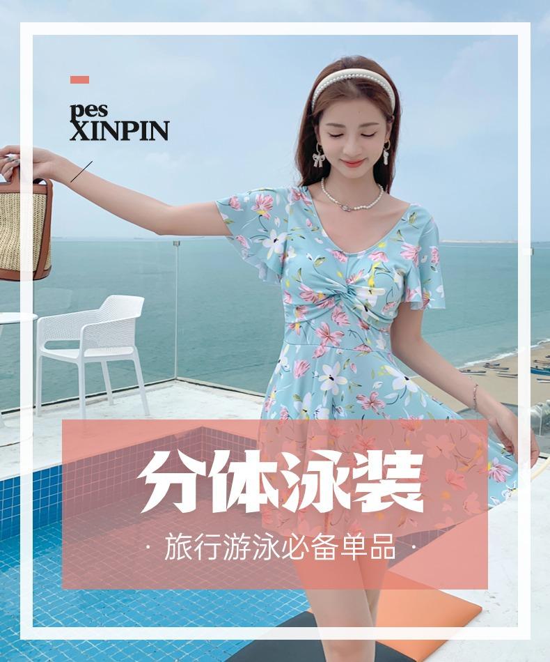 Traje de Baño Conservador de Dos Piezas Estilo Falda para Mujer con Almohadillas en el Pecho, Adelgazante, Oculta el Abdomen, Talla Grande Traje de Baño para Aguas Termales de Piaorshu 2436