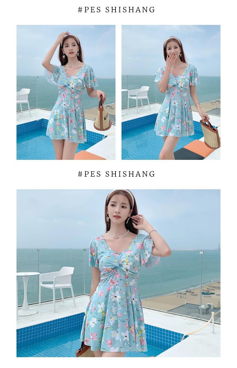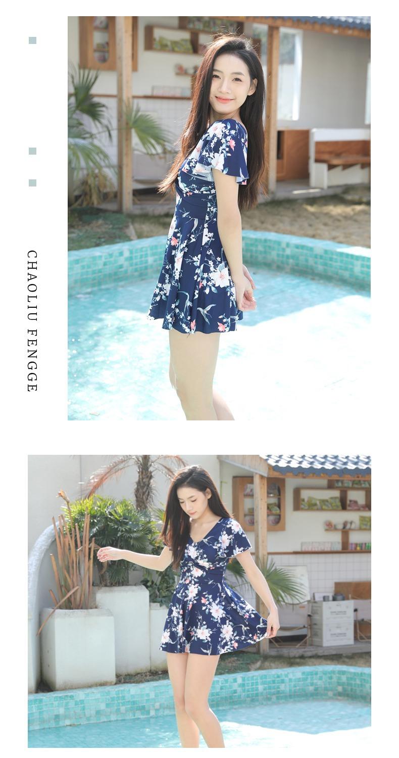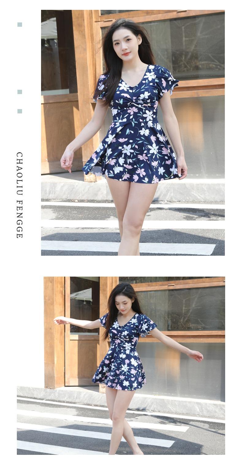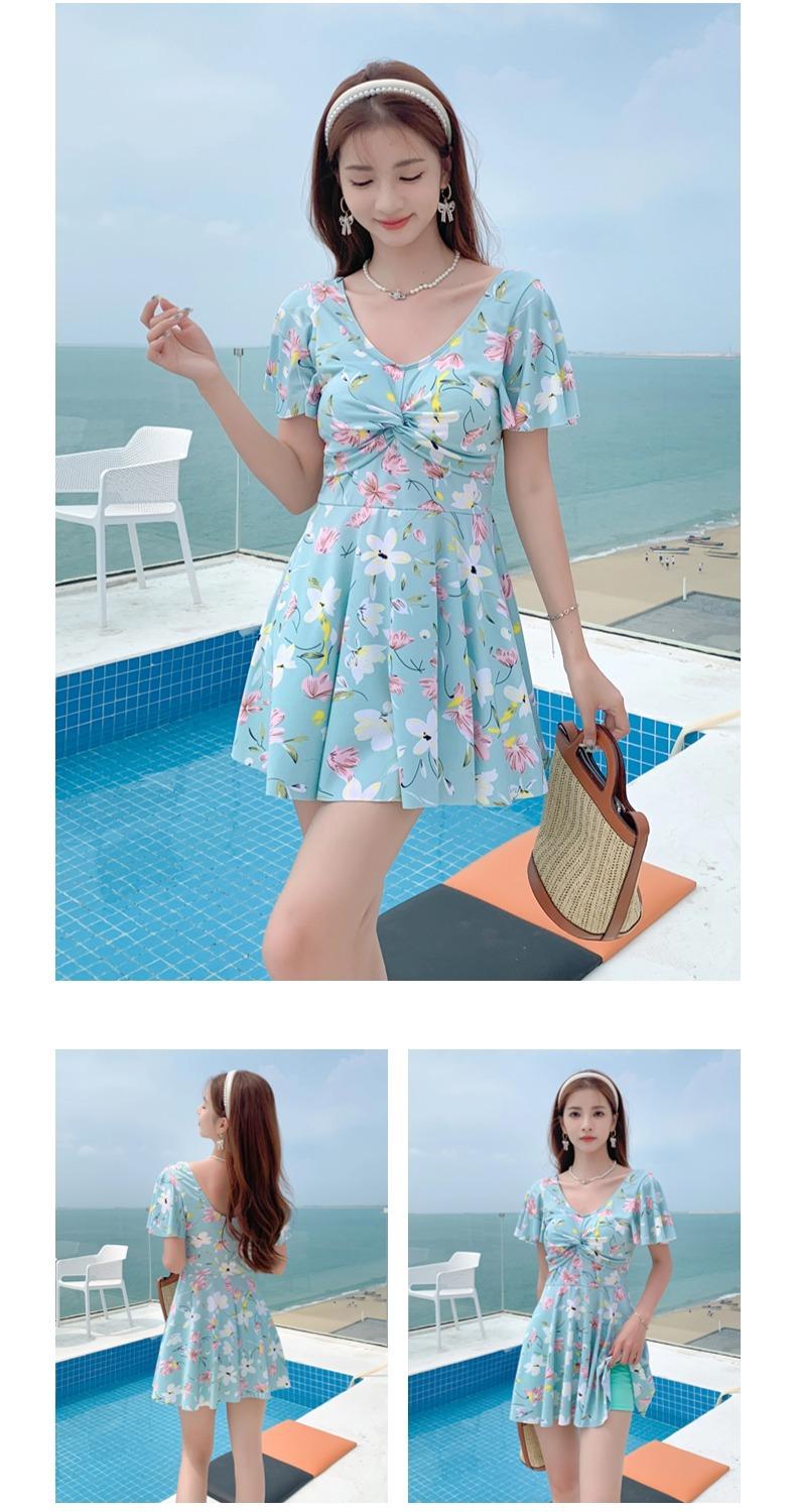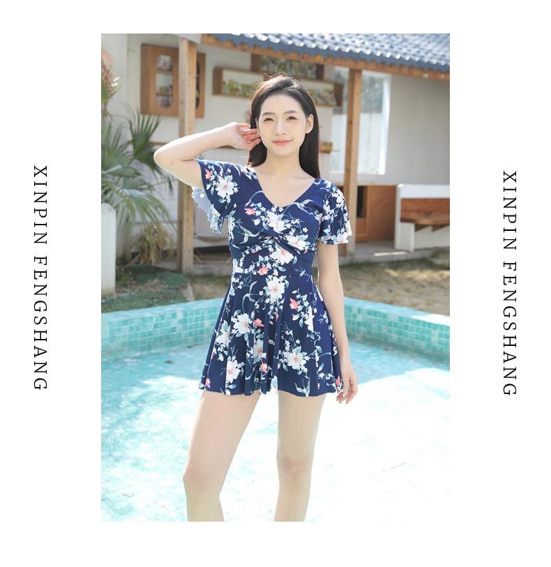 Traje de Baño Conservador de Dos Piezas Estilo Falda para Mujer con Almohadillas en el Pecho, Adelgazante, Oculta el Abdomen, Talla Grande Traje de Baño para Aguas Termales de Piaorshu 2436