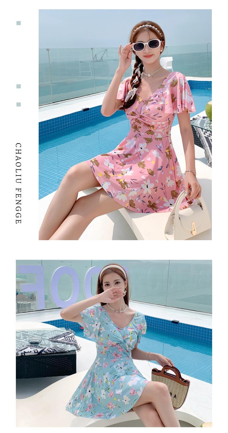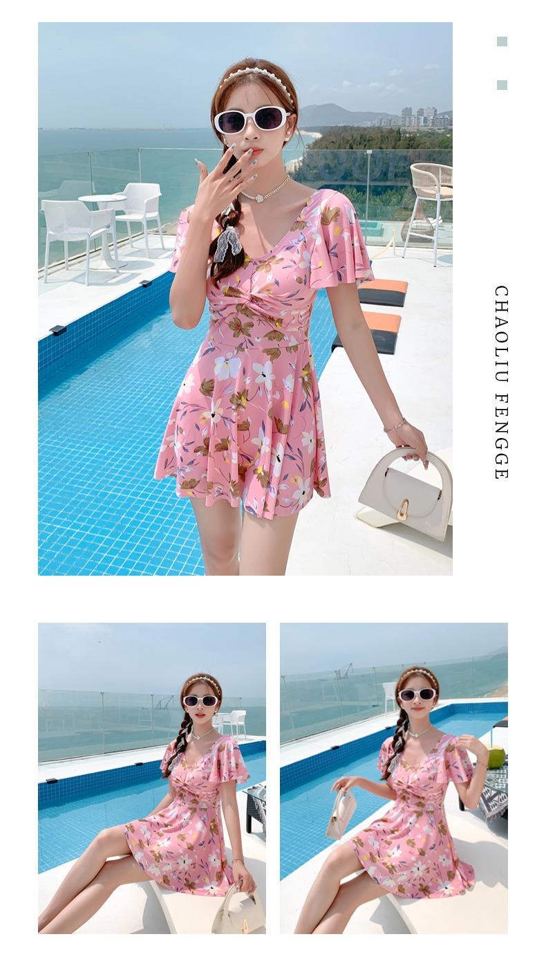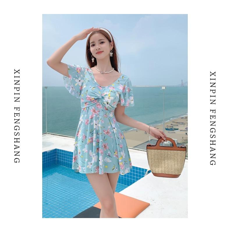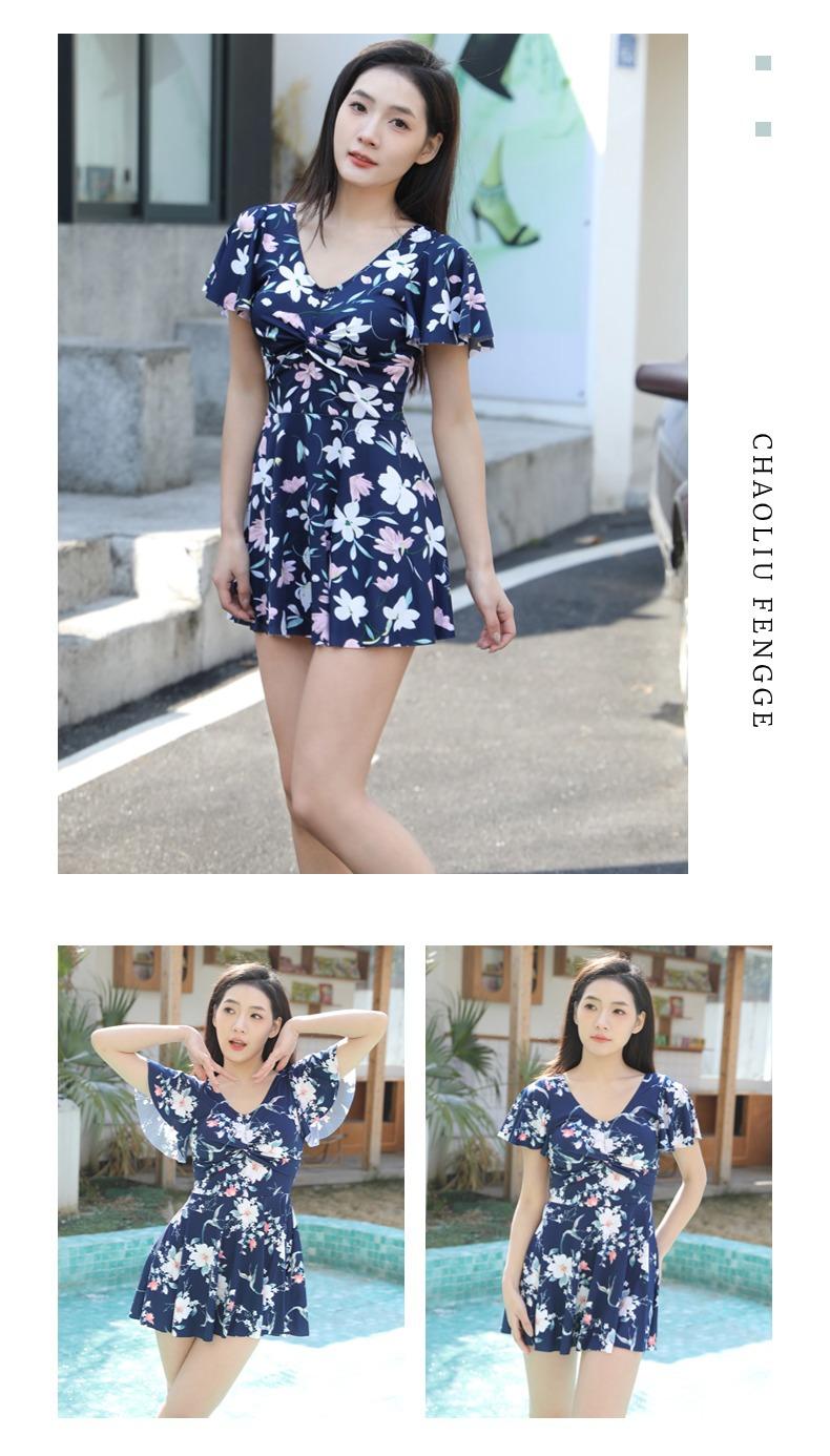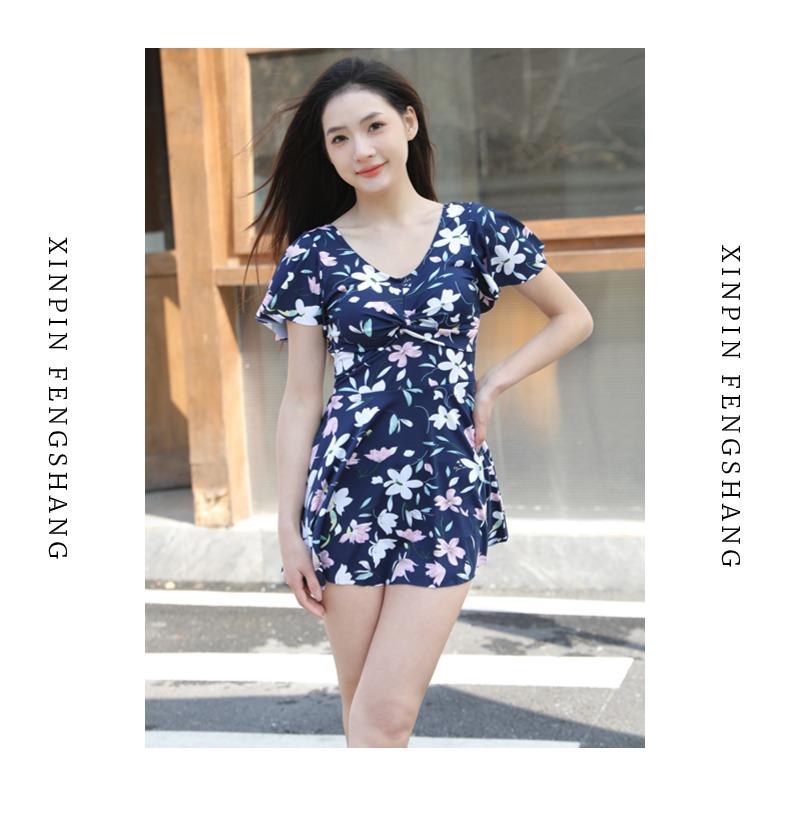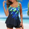 Traje de Baño Conservador de Dos Piezas Estilo Falda para Mujer con Almohadillas en el Pecho, Adelgazante, Oculta el Abdomen, Talla Grande Traje de Baño para Aguas Termales de Piaorshu 2436