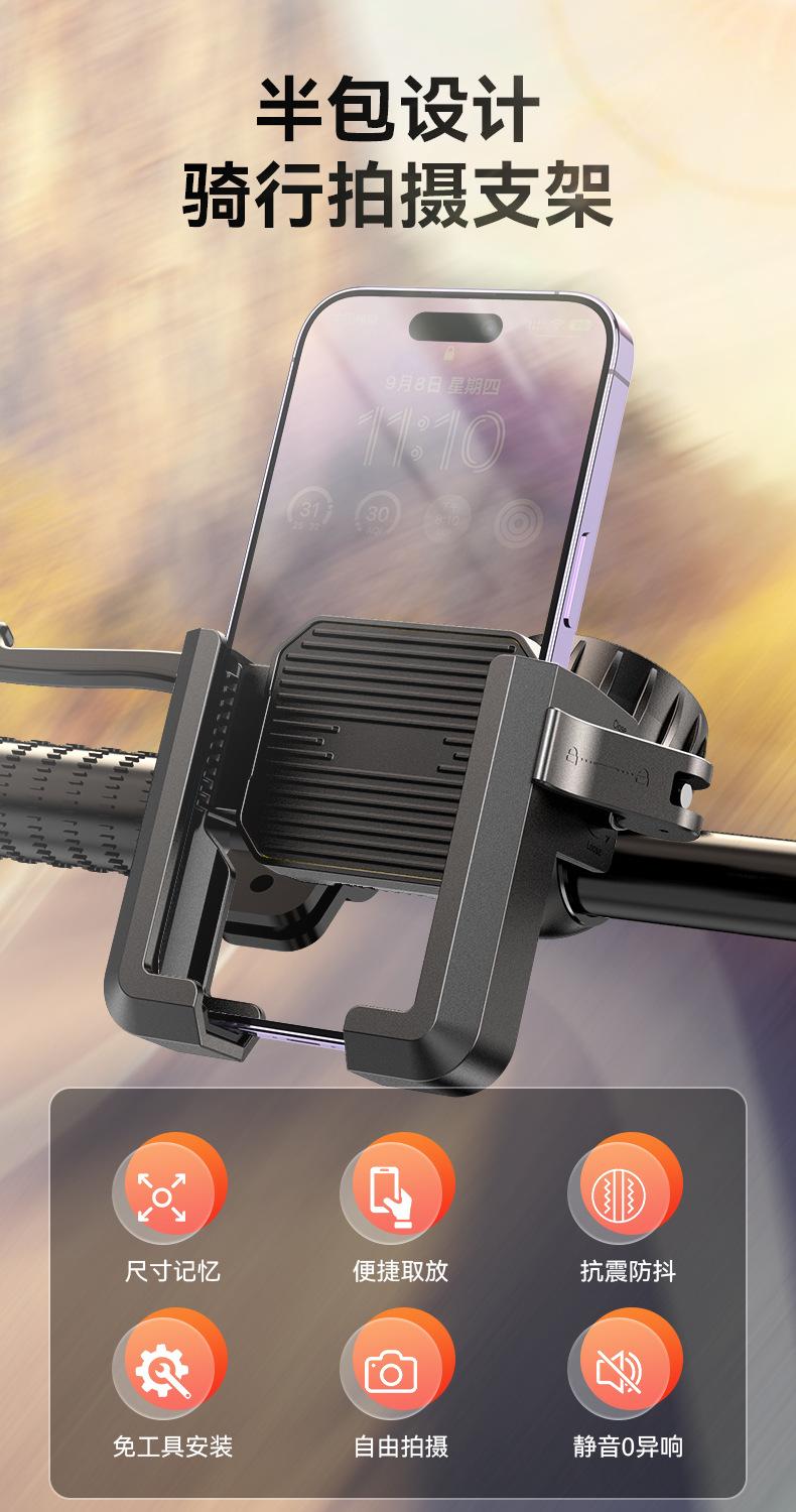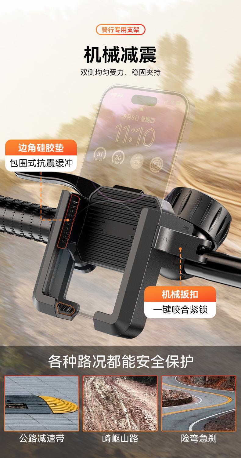 Soporte para teléfono móvil para bicicleta de montaña de venta caliente transfronteriza, antivibración, absorción de impactos, marco fijo, bicicleta, carretera, manillar, navegación