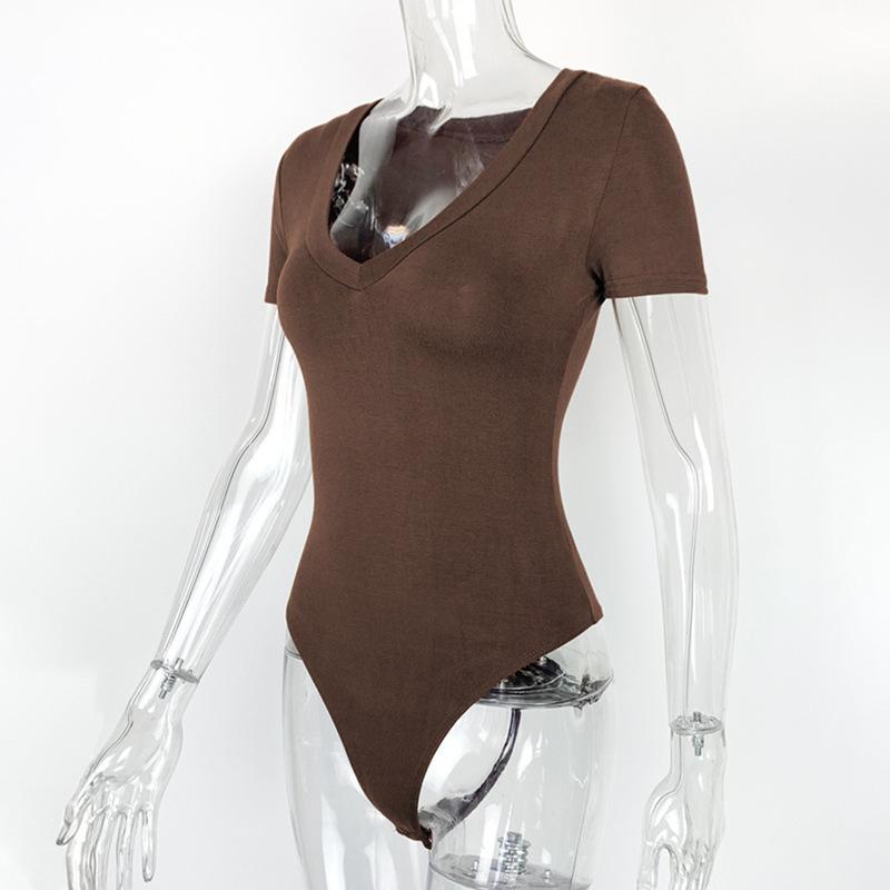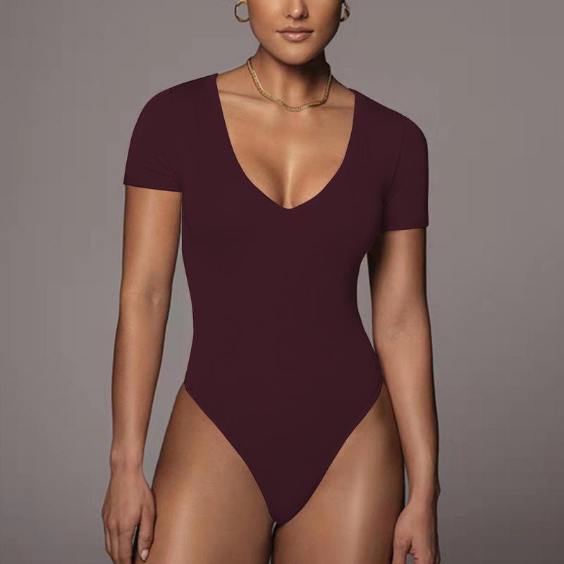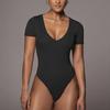 Amazon Transfronterizo Ropa de Yoga Europea y Americana Deportes Natación para Mujer Manga Corta Cuello V Yoga Sexy Mono Ajustado