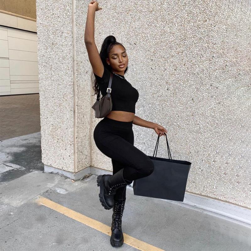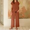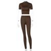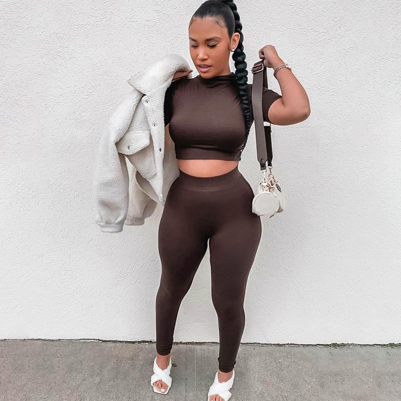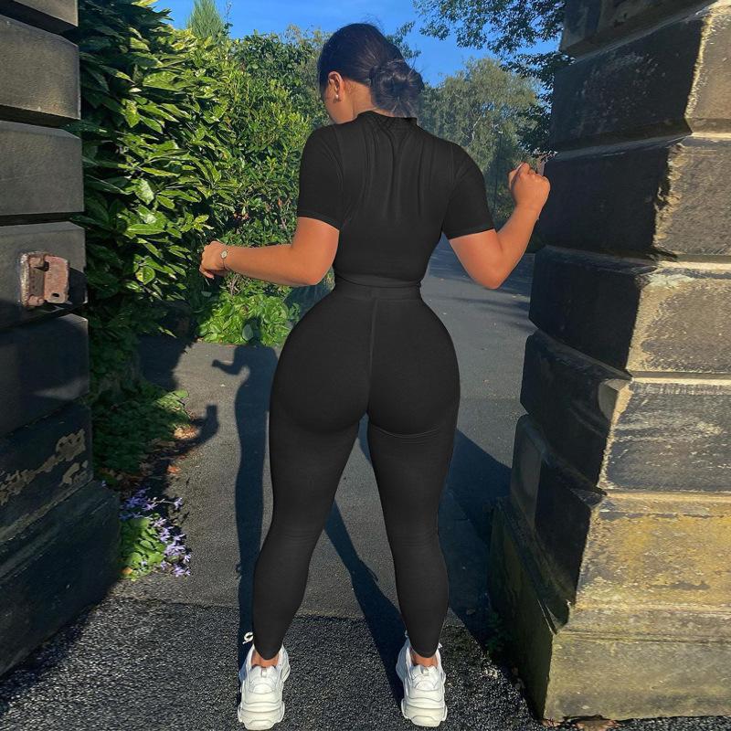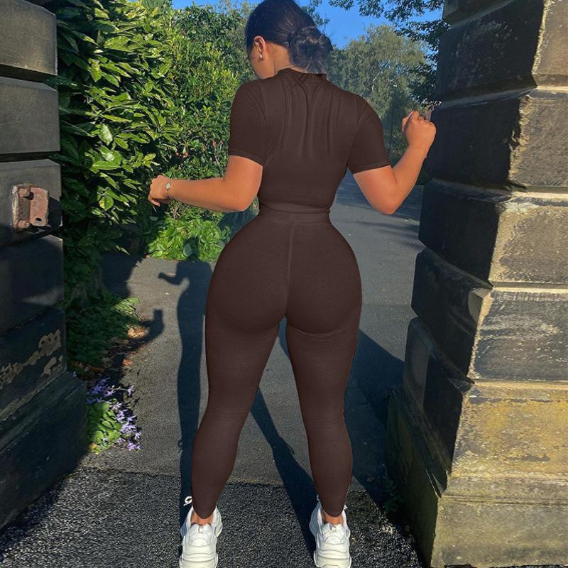 Traje deportivo de dos piezas ajustado de manga corta para mujer, informal, de color sólido, de comercio exterior de Amazon, para verano, transfronterizo europeo y americano