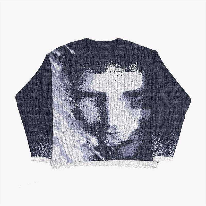 Suéter jacquard de retrato holgado casual de estilo callejero retro americano transfronterizo de Amazon