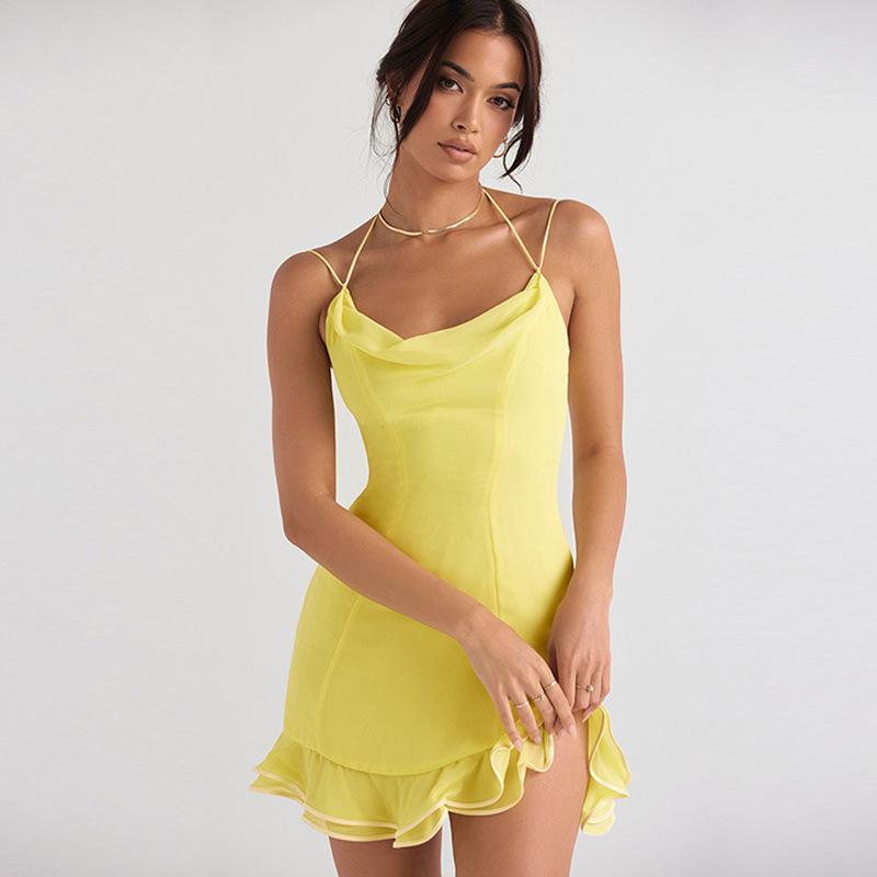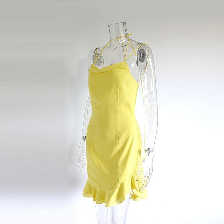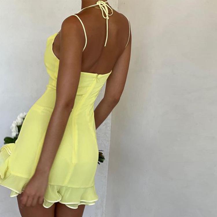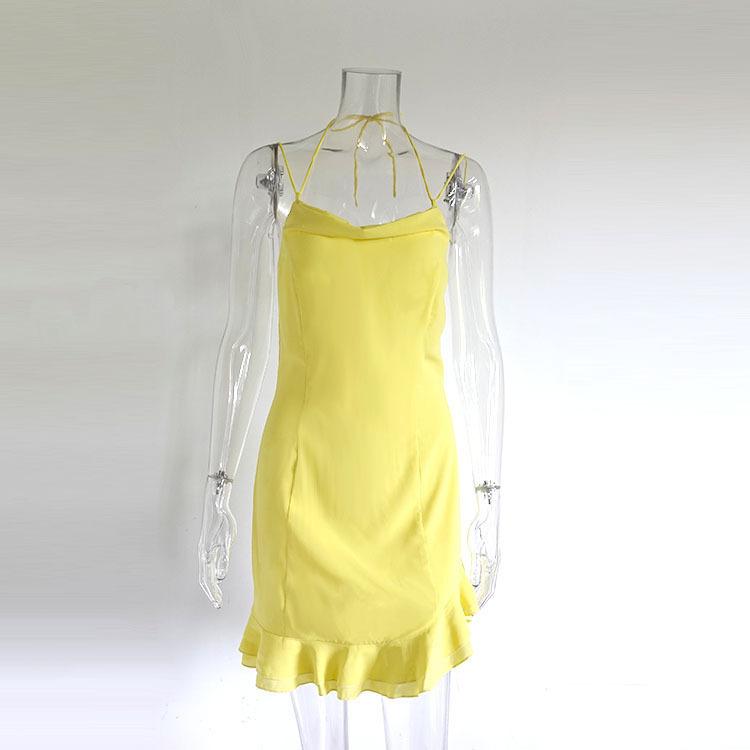 Vestido de verano 2023 para mujer, nuevo estilo, con tirantes finos, falda sexy sin espalda, temperamento, comercio exterior, venta al por mayor