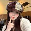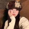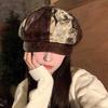 Boina de pana con costuras jacquard de estilo retro de otoño e invierno con diseño de cachorro callejero, sombrero octogonal pequeño para vendedor de periódicos.