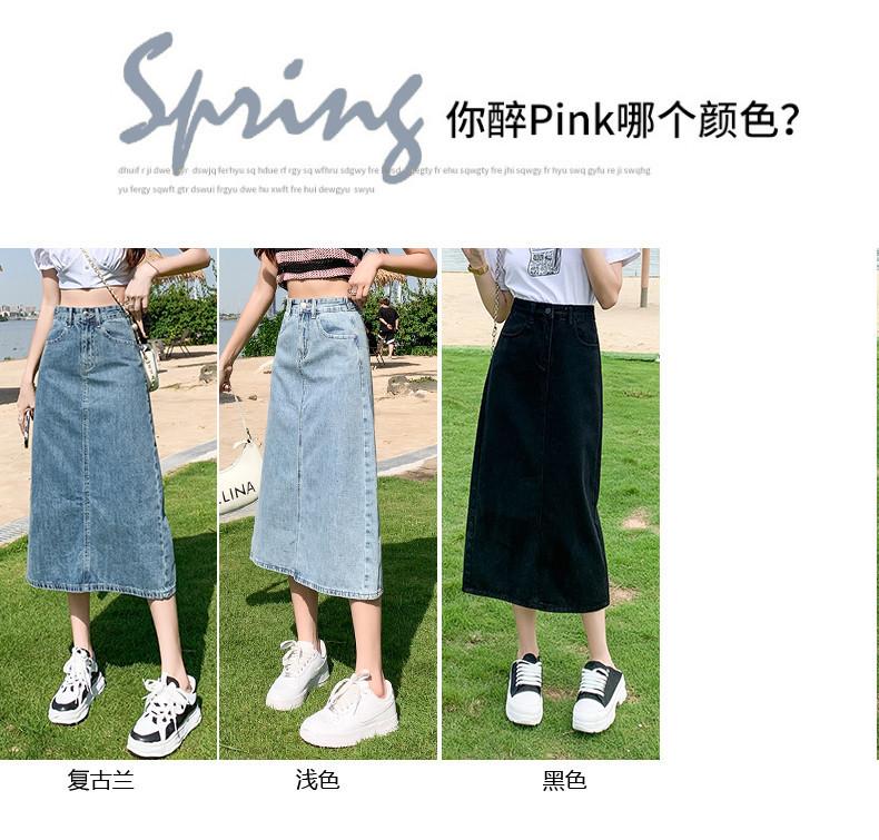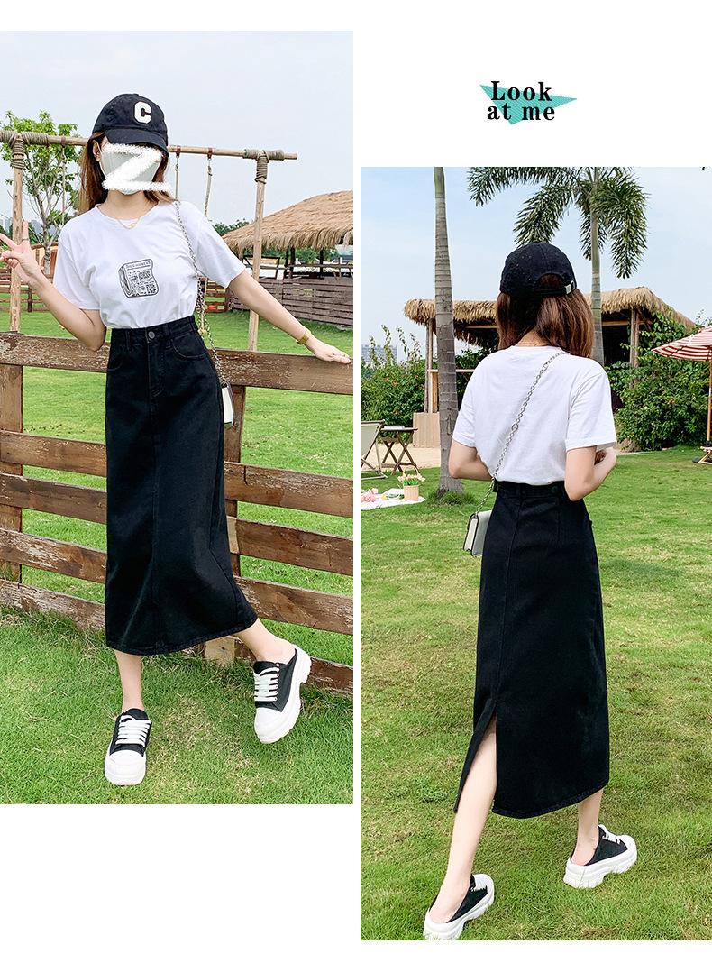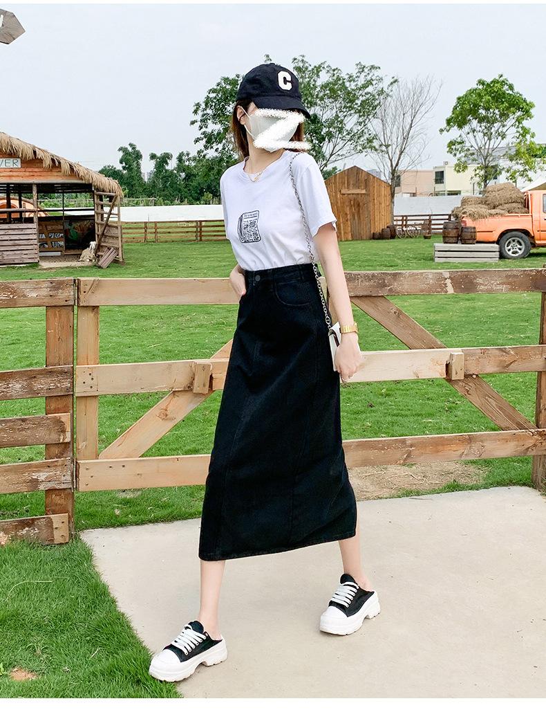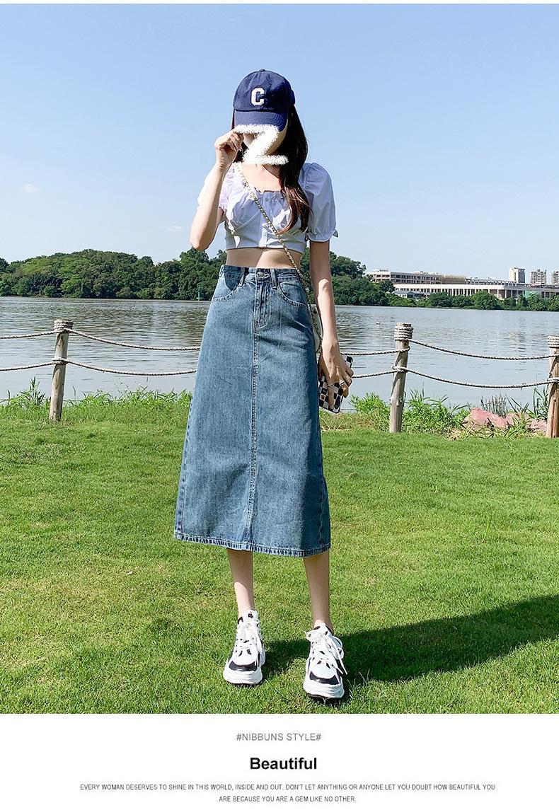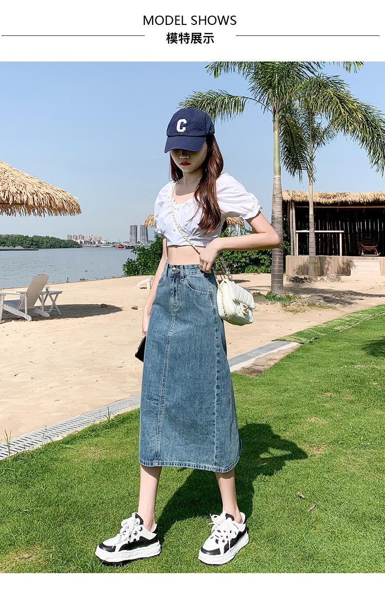Falda de Mezclilla con Abertura para Mujer de Largo Medio 2024 Verano Nuevo Estilo Línea A Versátil Cintura Alta Ajustada a la Cadera