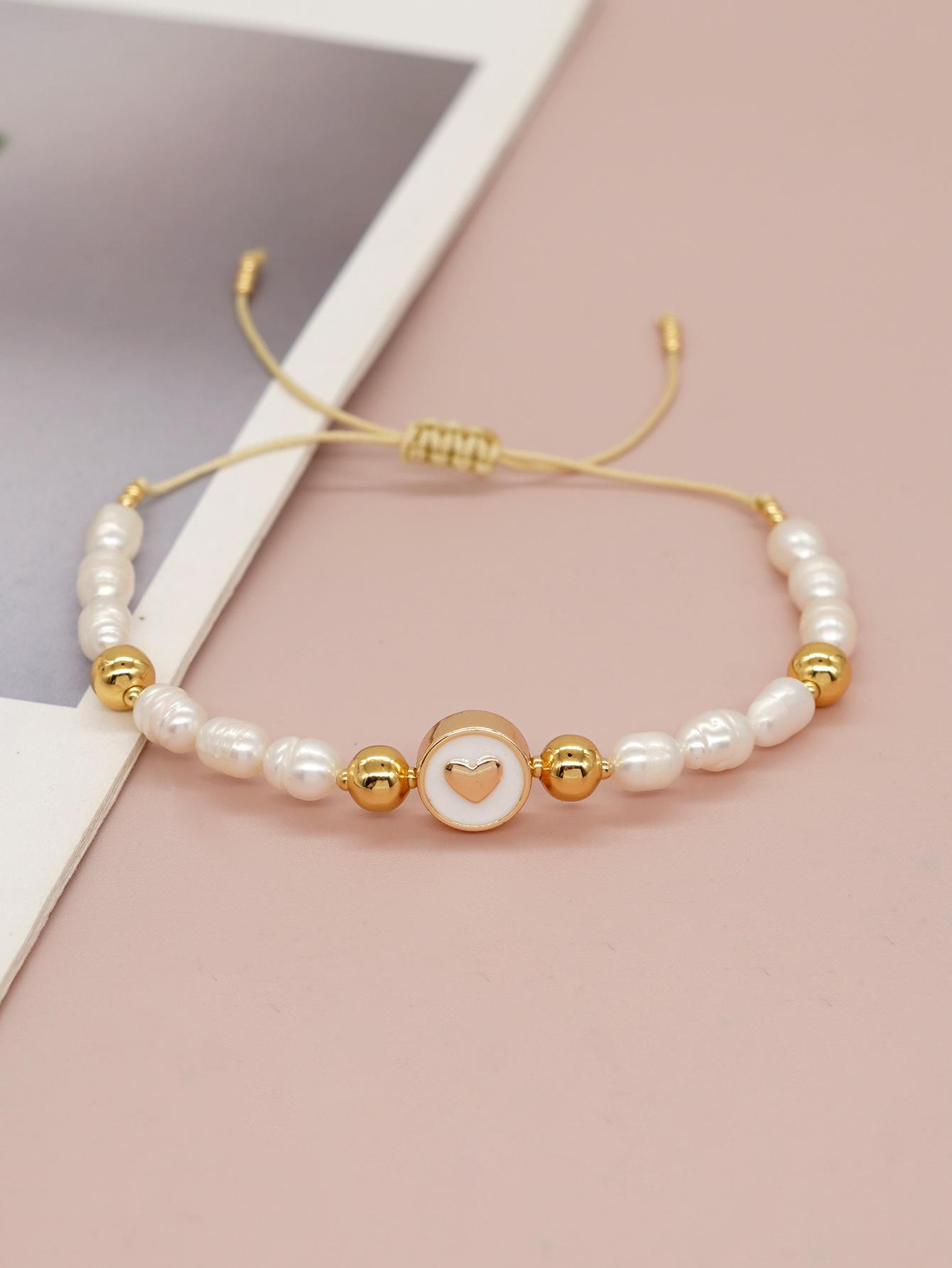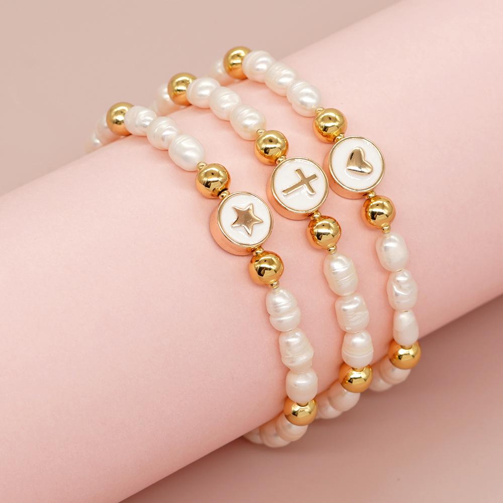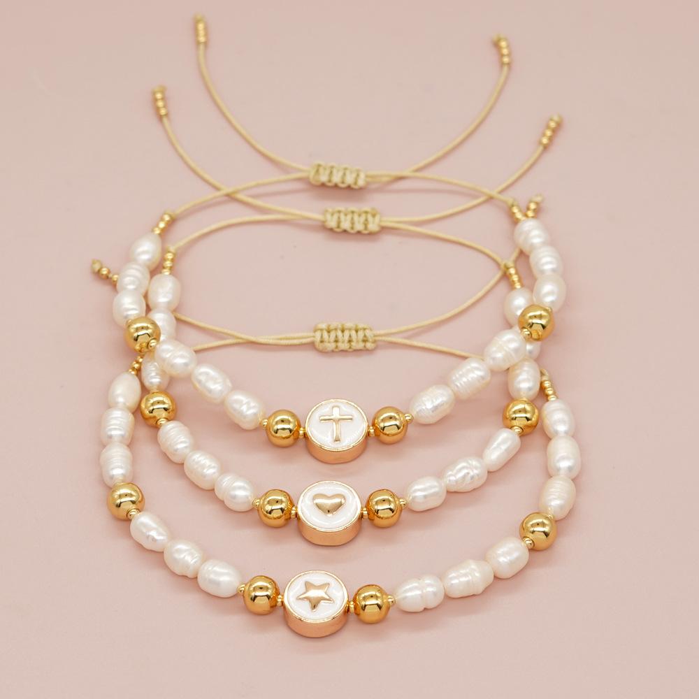 Pulsera Bohemia de Perlas Cruz Corazón Estrella Europea y Americana Literaria Retro Pulsera de Perlas de Agua Dulce Joyería