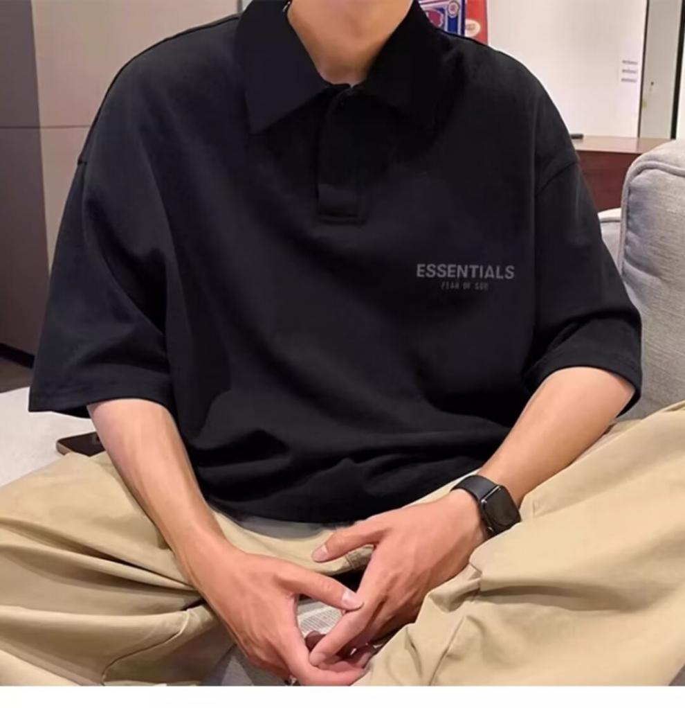 Camisa polo para hombre, de verano, de manga corta, estilo americano, elegante, gruesa, sencilla, holgada, de color liso, con solapa y media manga.