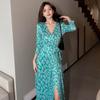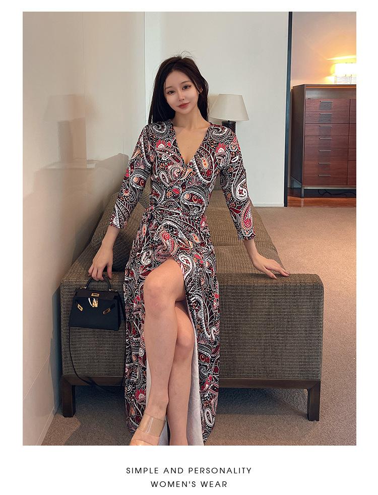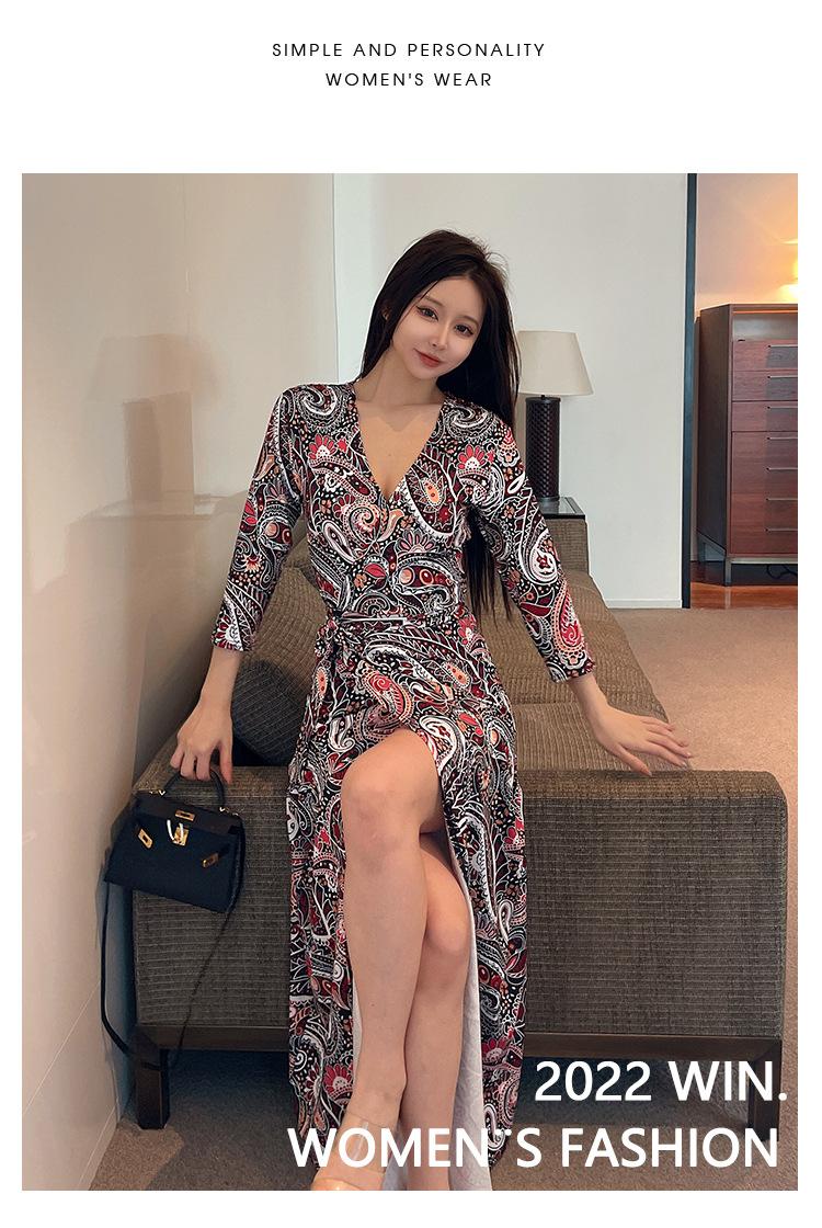 Vestido cruzado con estampado de anacardos vintage, cuello en V, ajustado y sexy, para verano, 2022