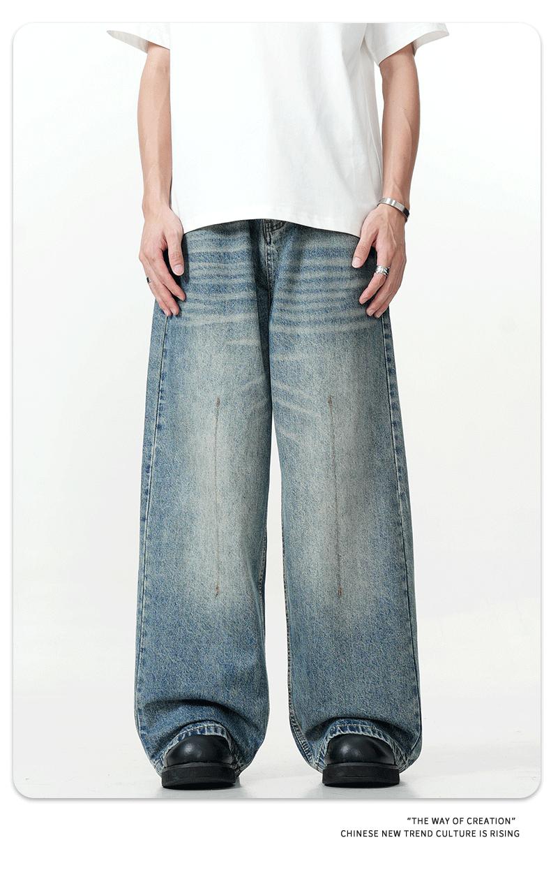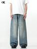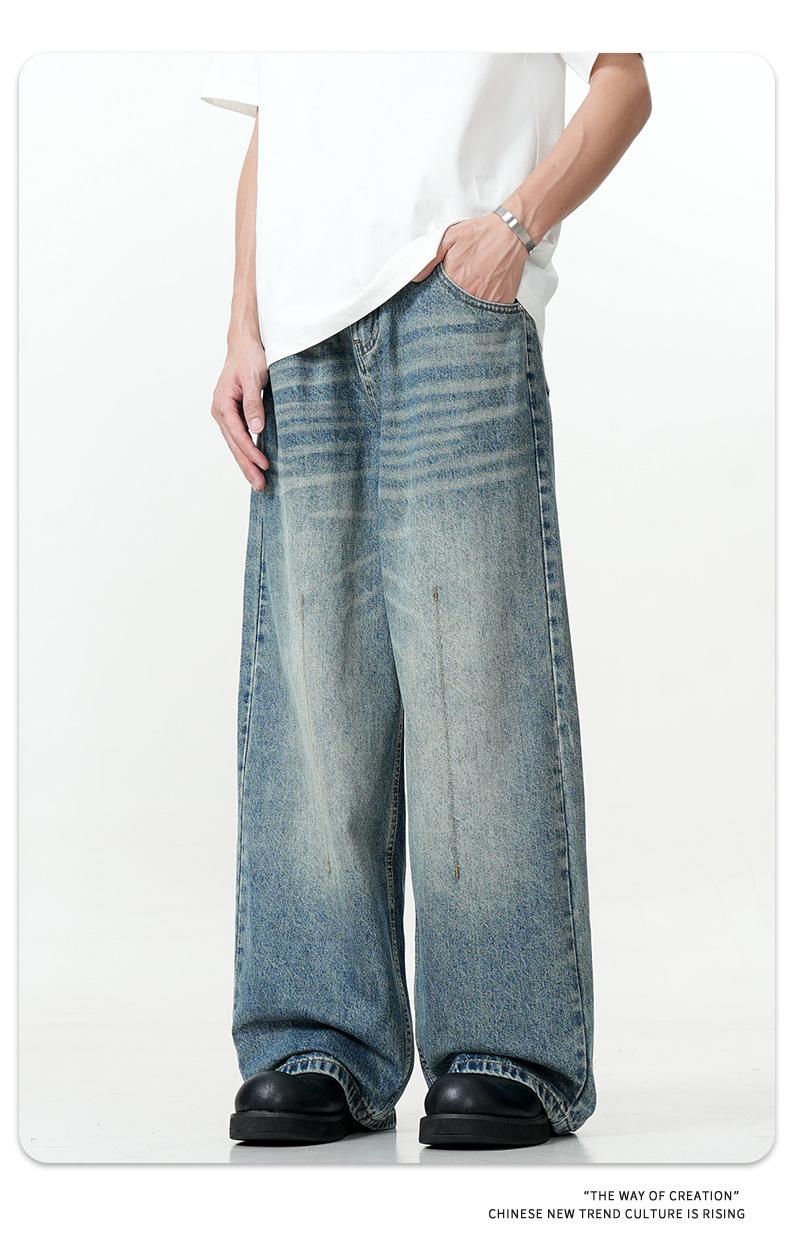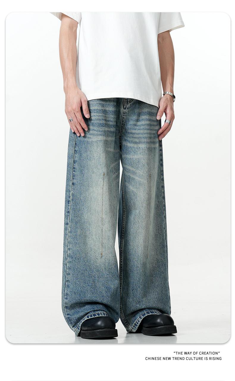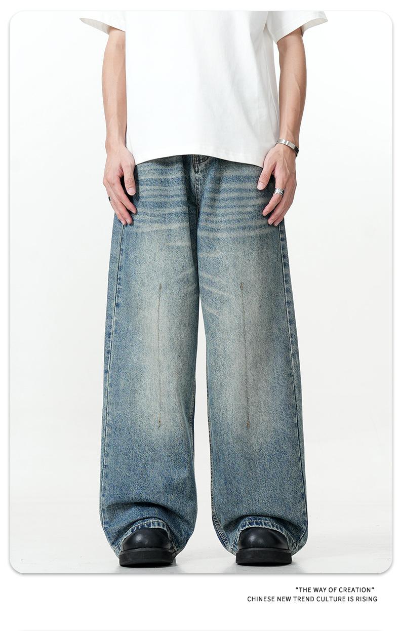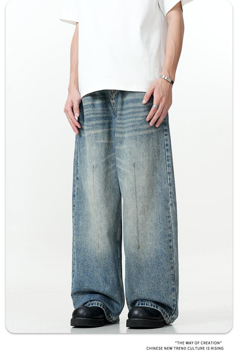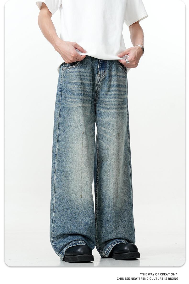 11KN Americano retro calle lavado viejo holgado jeans anchos casual pantalones rectos arrastrando la marea transfronterizo