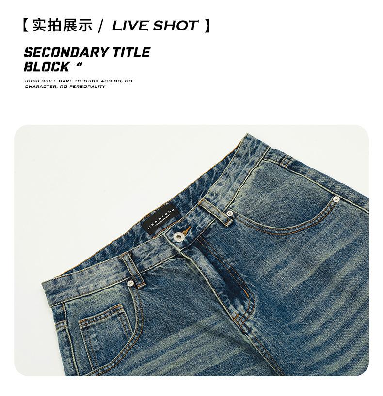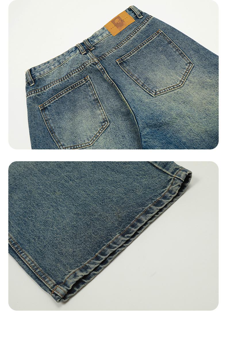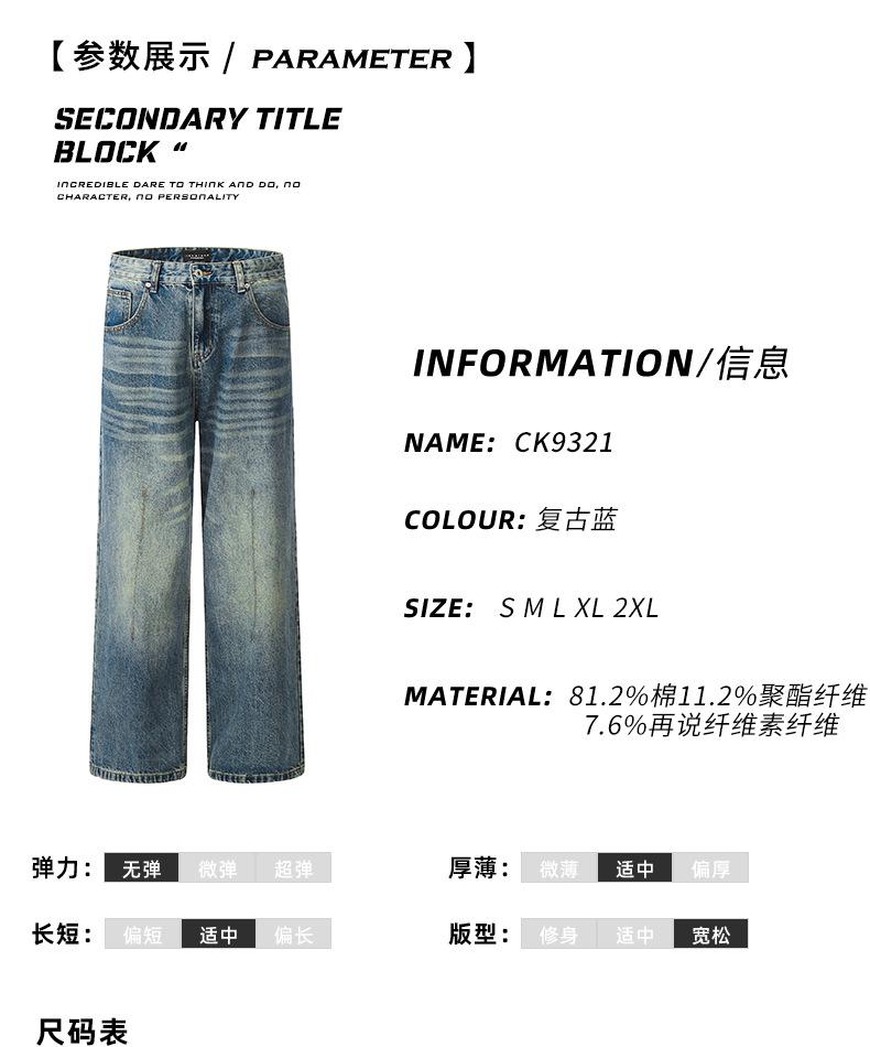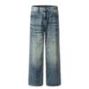 11KN Americano retro calle lavado desgastado suelto jeans de pierna ancha casual pantalones de pierna recta tendencia trapecio transfronterizo