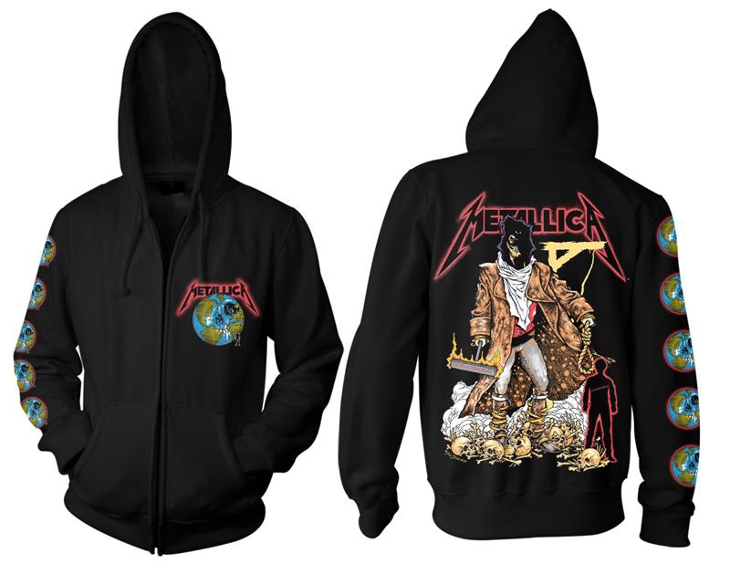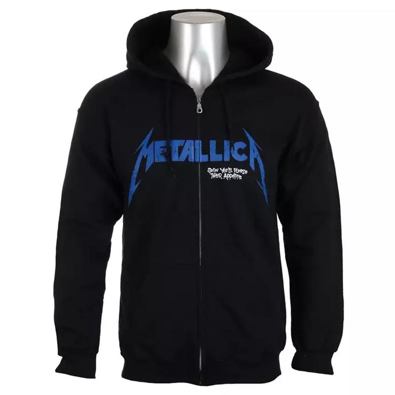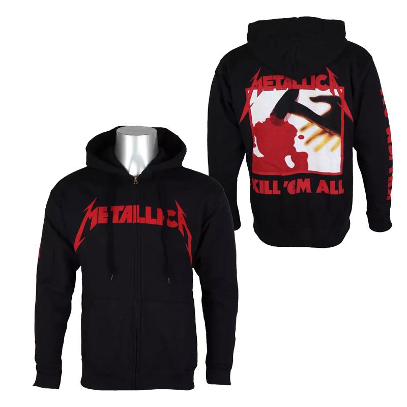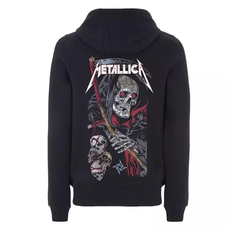 Sudadera con capucha de algodón de Metallica, estilo rock oscuro con calavera, cárdigan suelto de calle alta, abrigo con cremallera