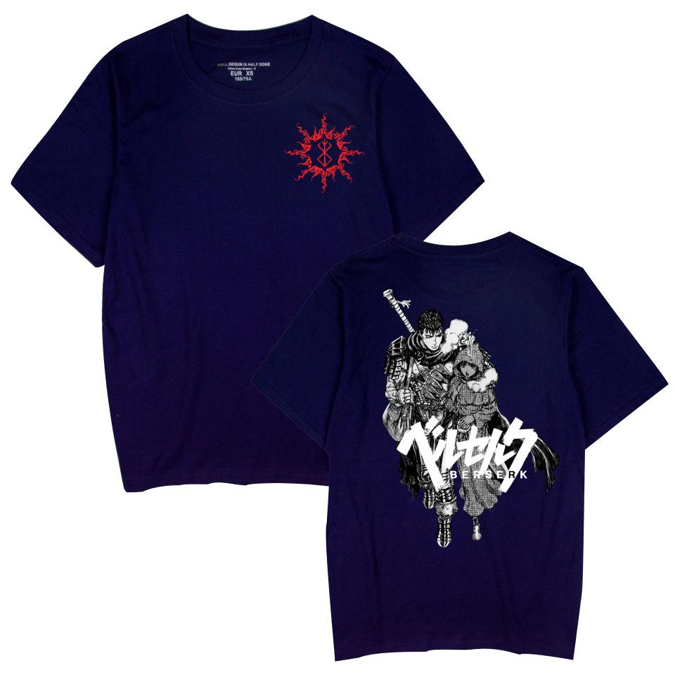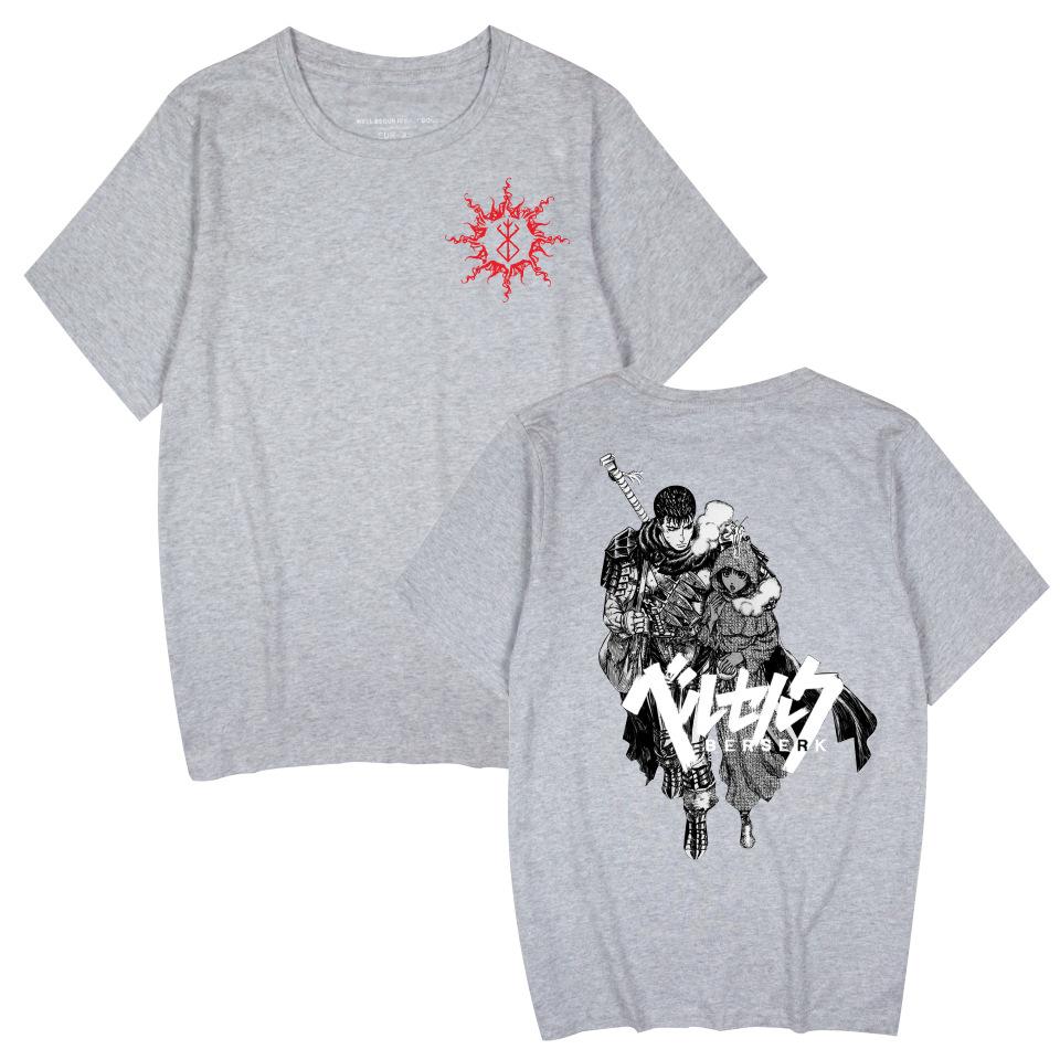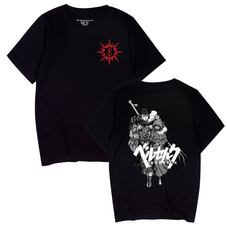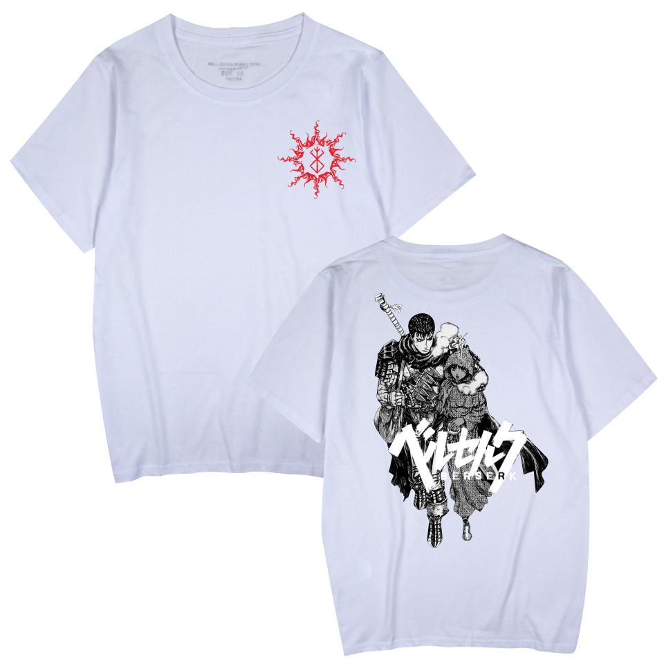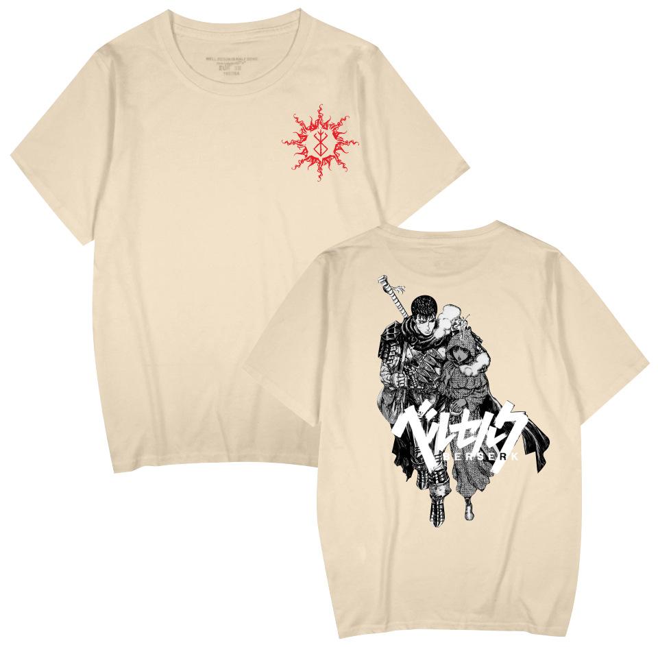 Camiseta de Verano para Pareja de Algodón Puro de Manga Corta con Hombro Caído Estilo Espada Berserk Legendario Casual Más Holgada Estilo Coreano a la Moda