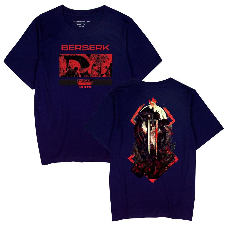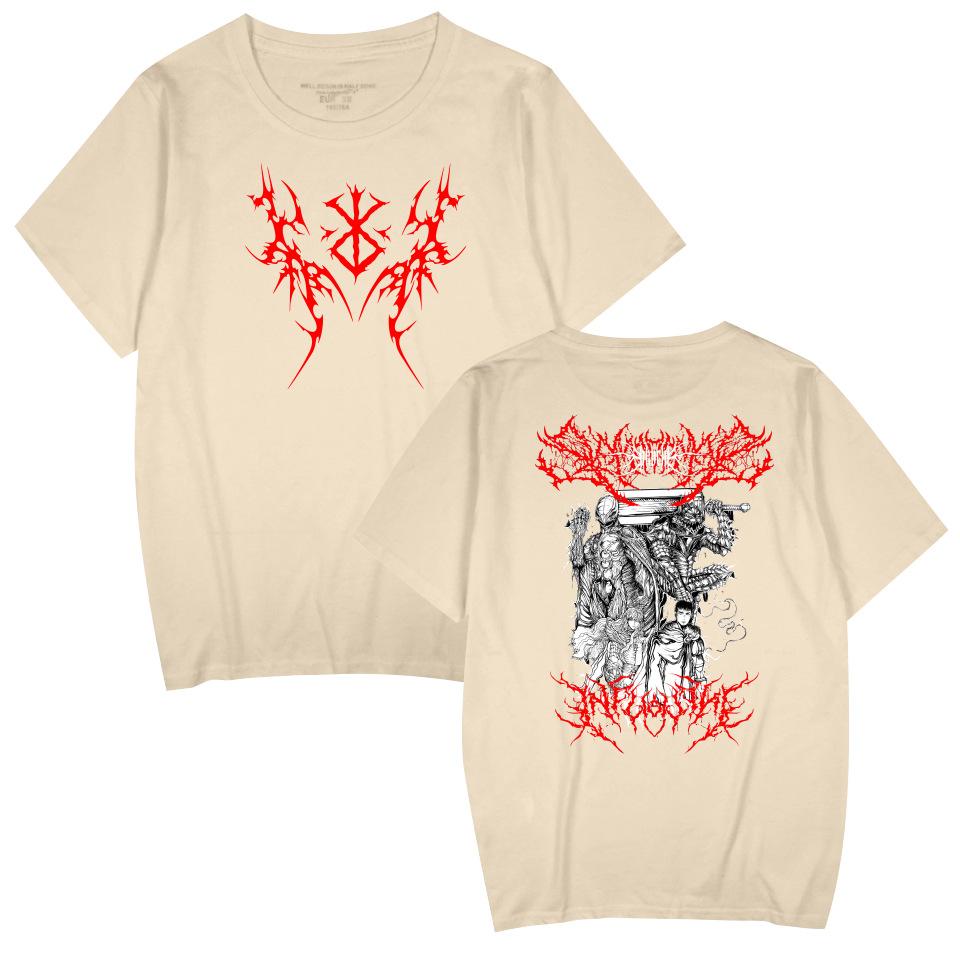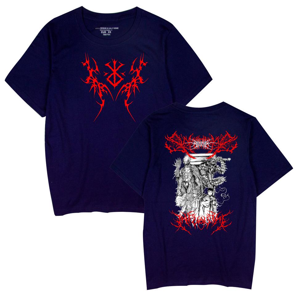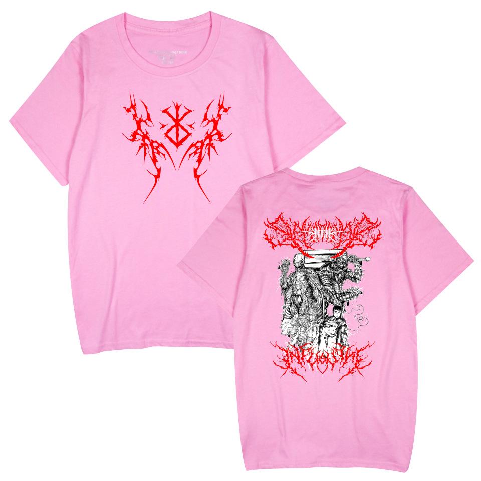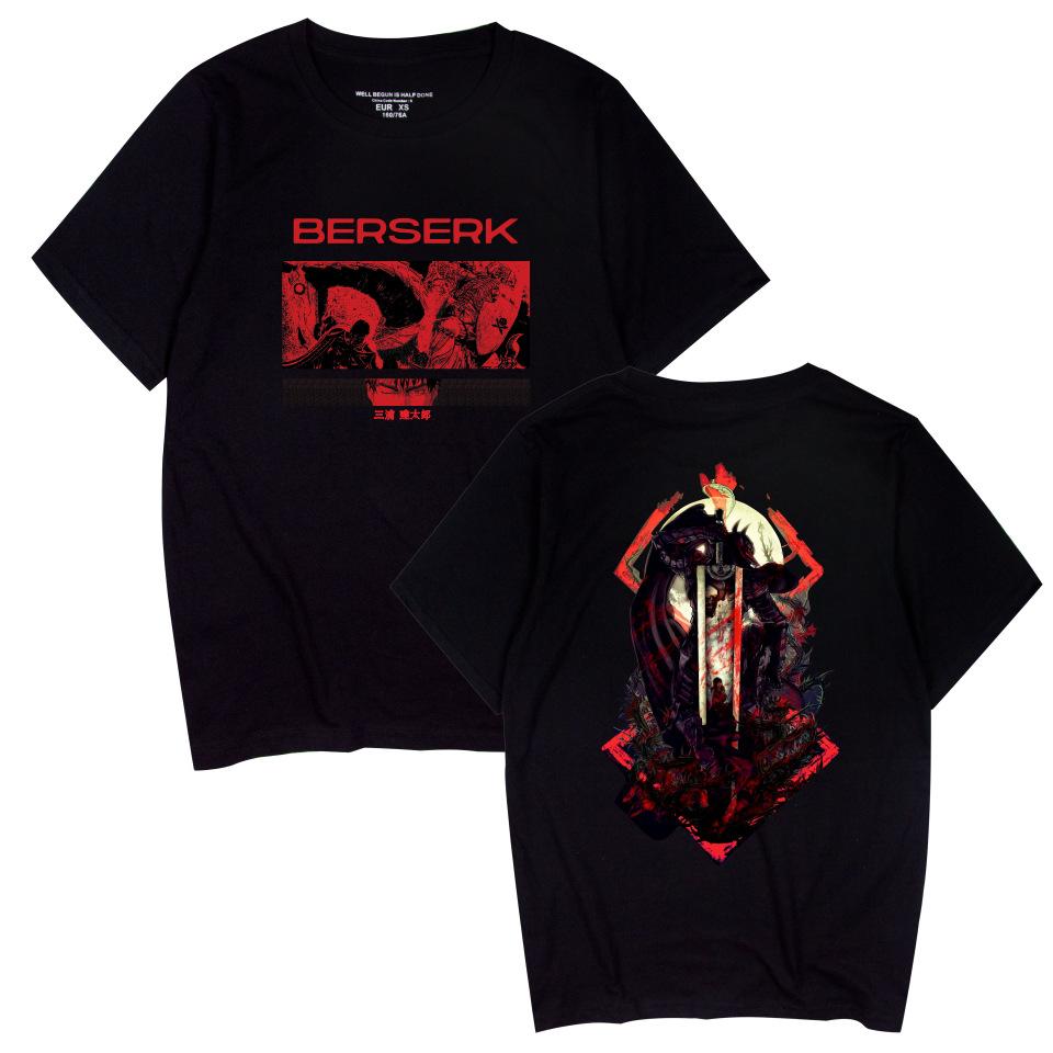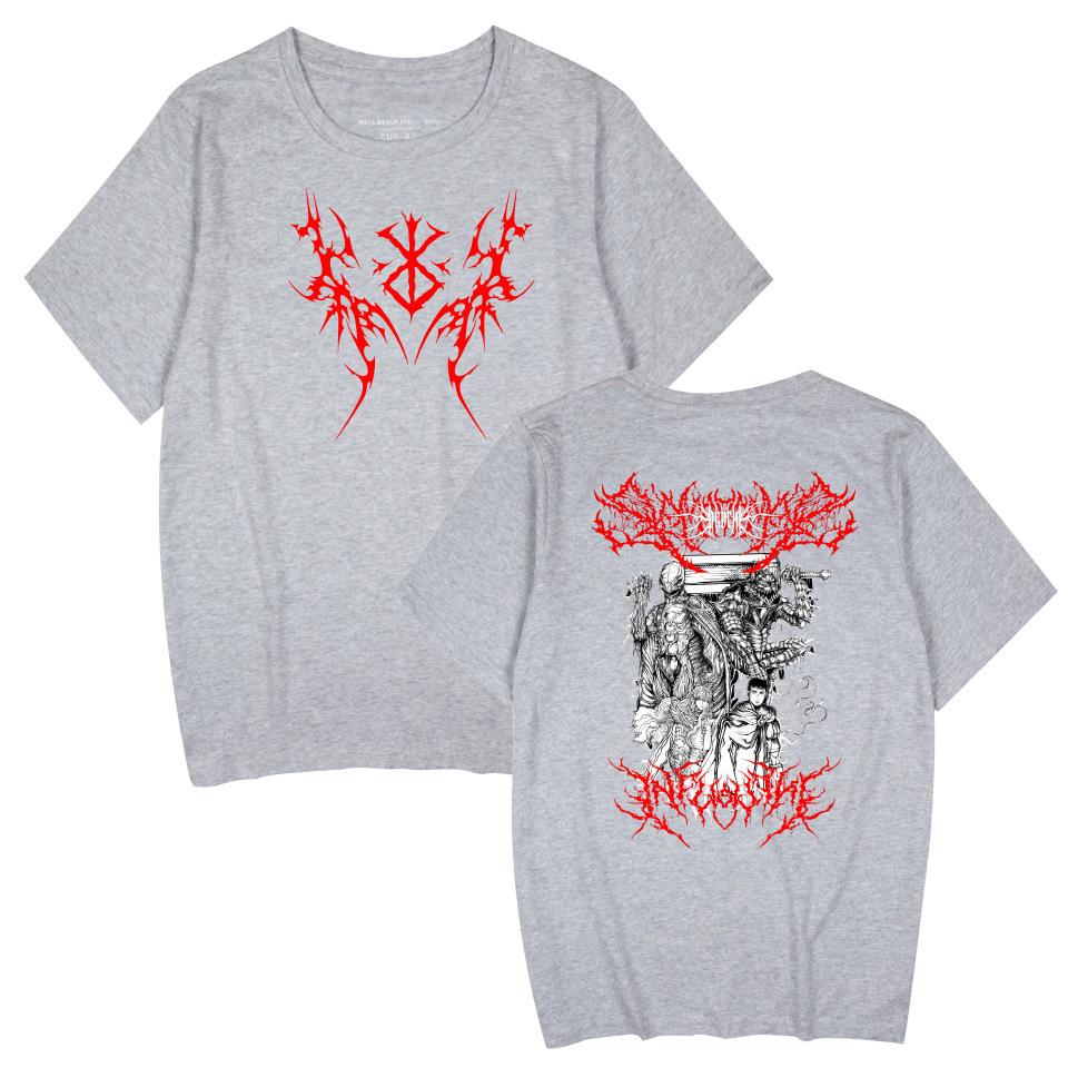 Camiseta de Verano para Pareja de Algodón Puro de Manga Corta con Hombro Caído Estilo Espada Berserk Legendario Casual Más Holgada Estilo Coreano a la Moda
