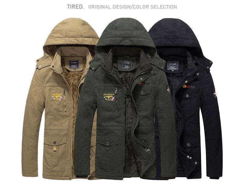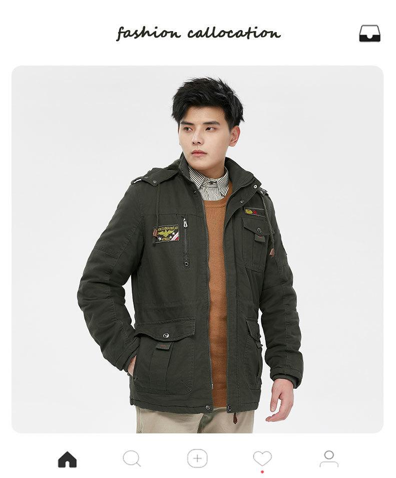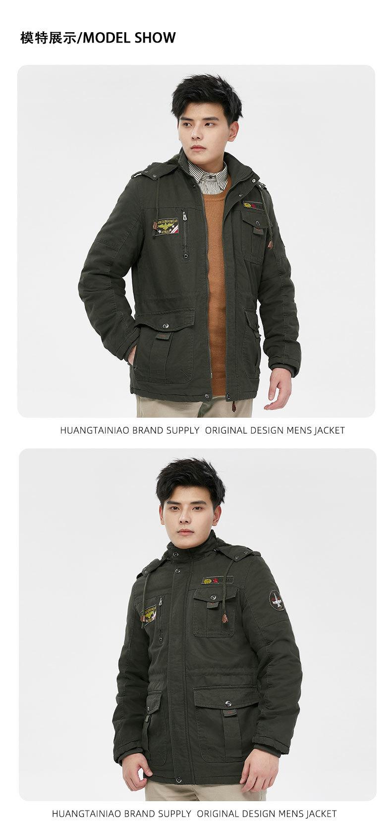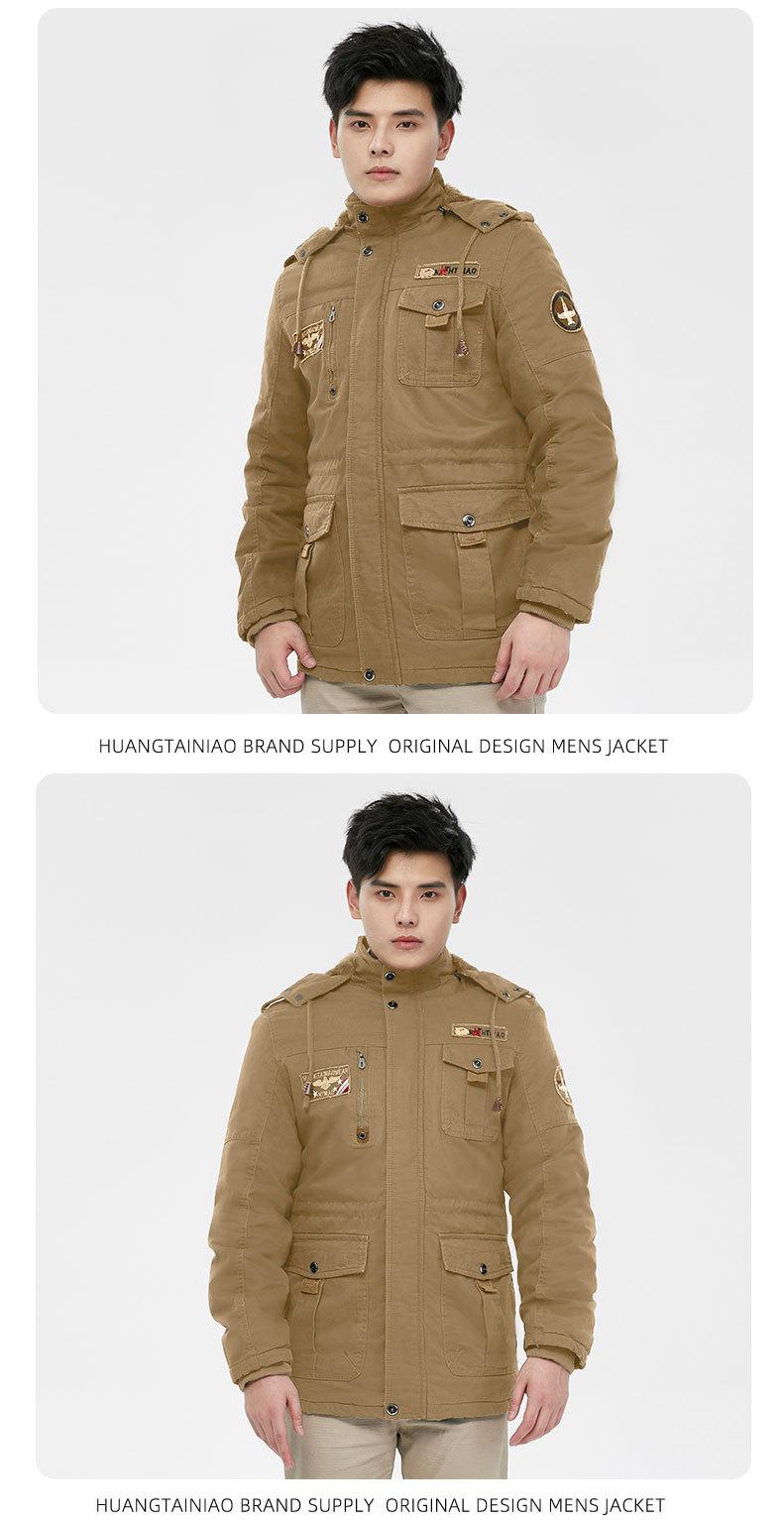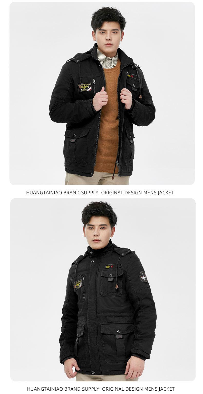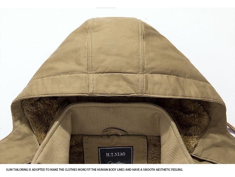 2025 Ropa de Trabajo de Invierno para Hombre Chaqueta Retro Engrosada con Terciopelo Color Sólido Algodón con Capucha
