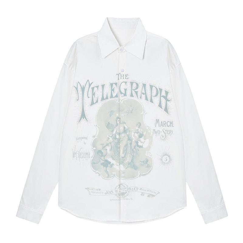 Camisa de manga larga para hombre y mujer, chaqueta informal holgada con estampado de personajes retro creativos americanos de otoño, combina con todo, para calle