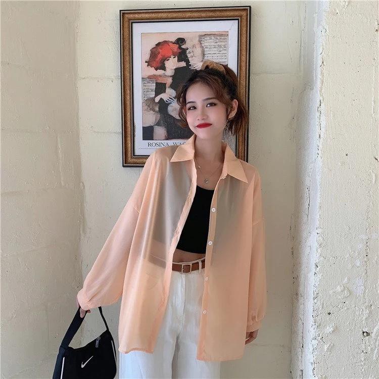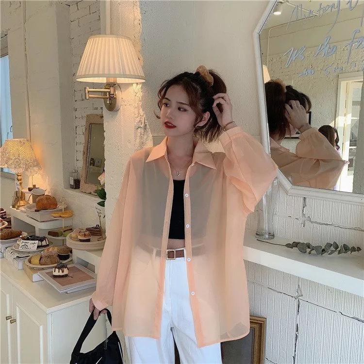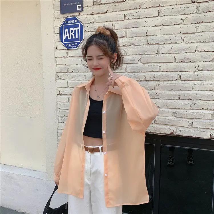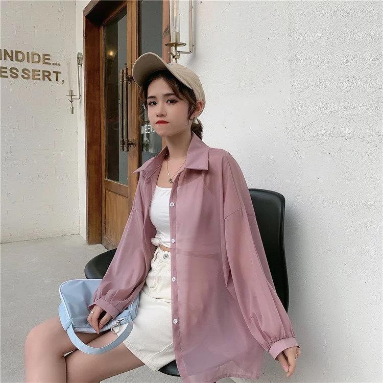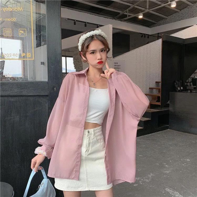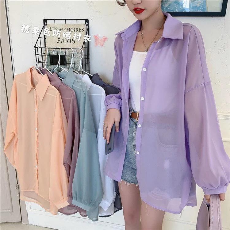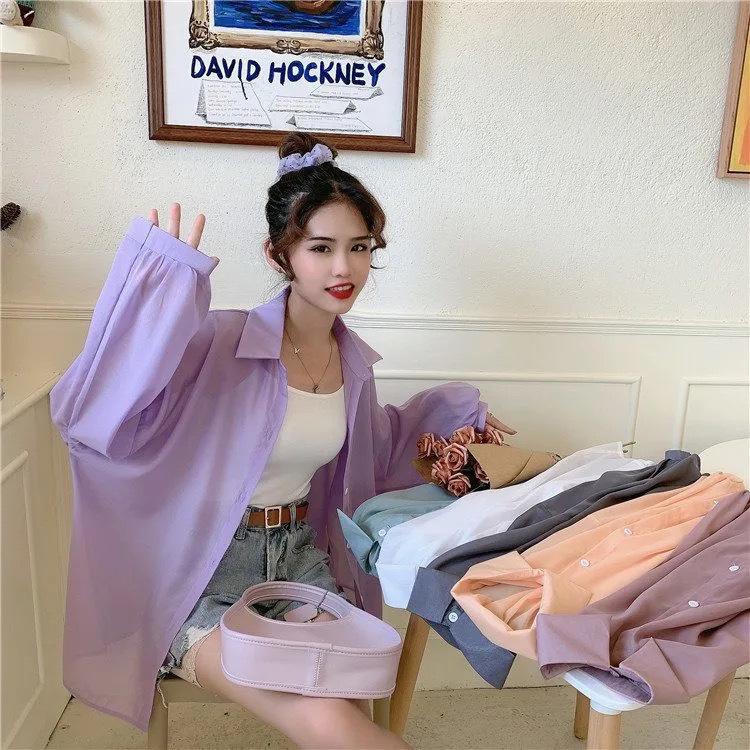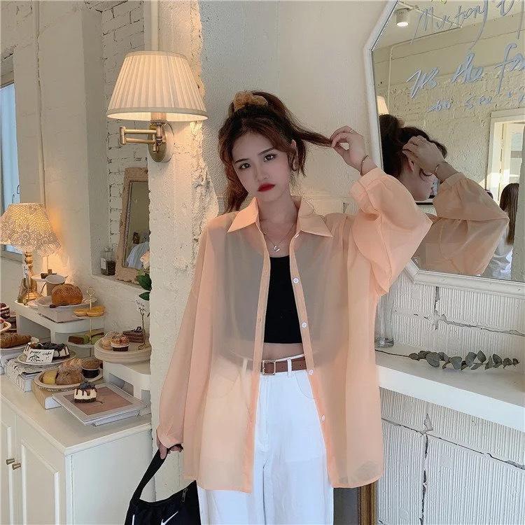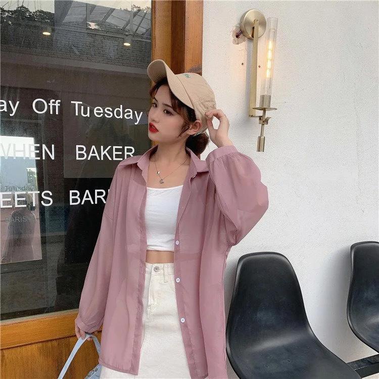 Camisa de protección solar para mujer verano 2021 nuevo estilo suelta versátil gasa manga larga verano delgada camisa chaqueta