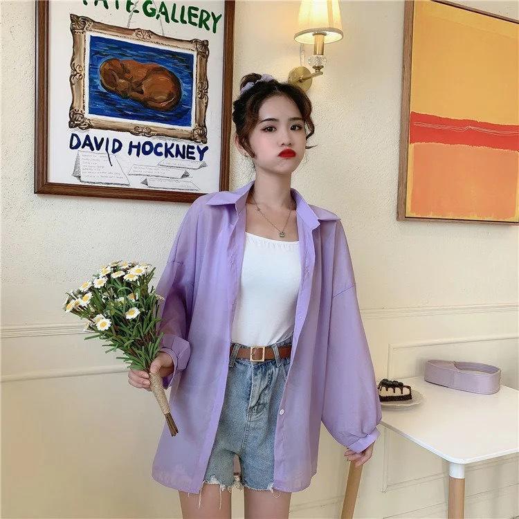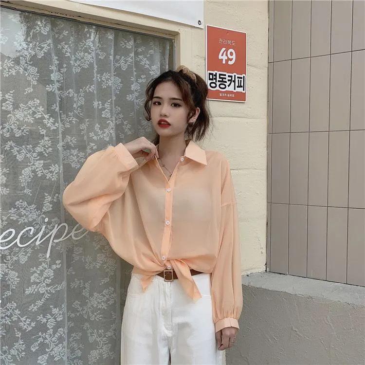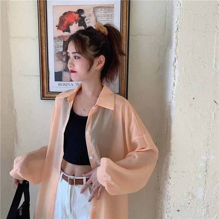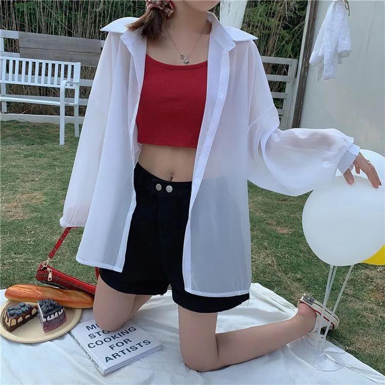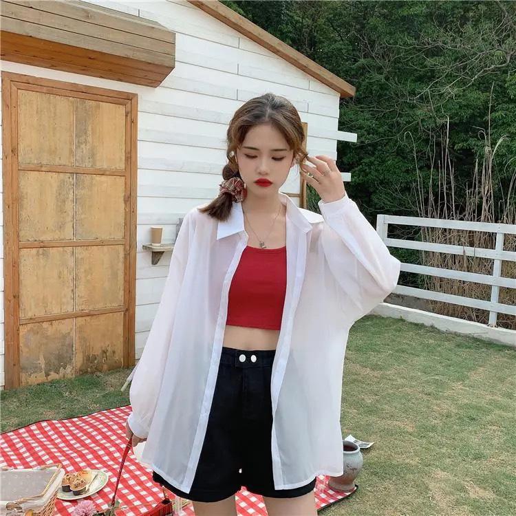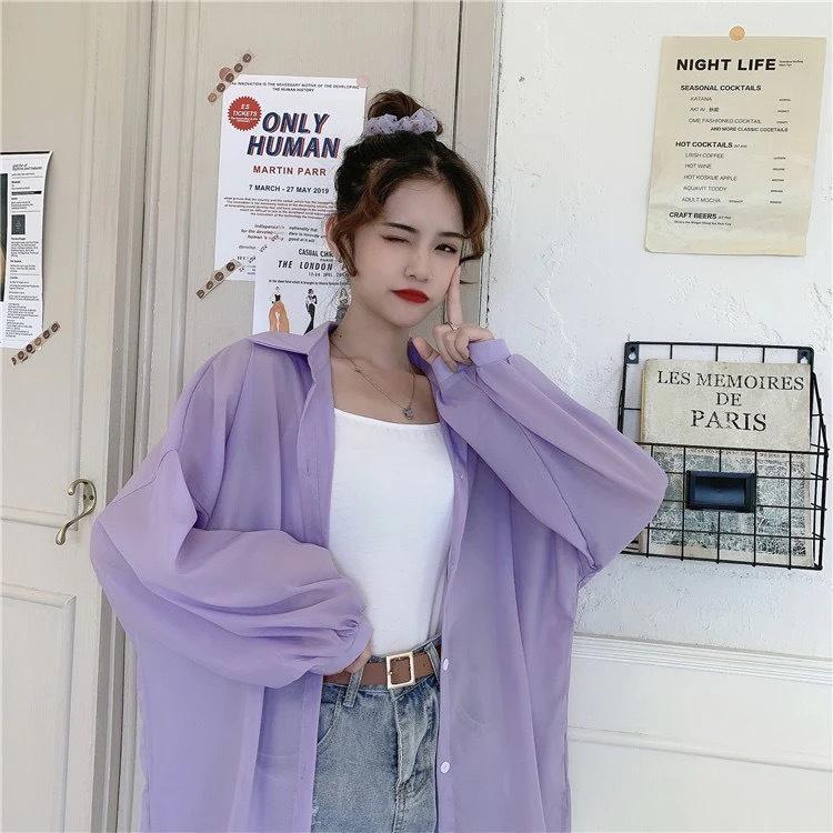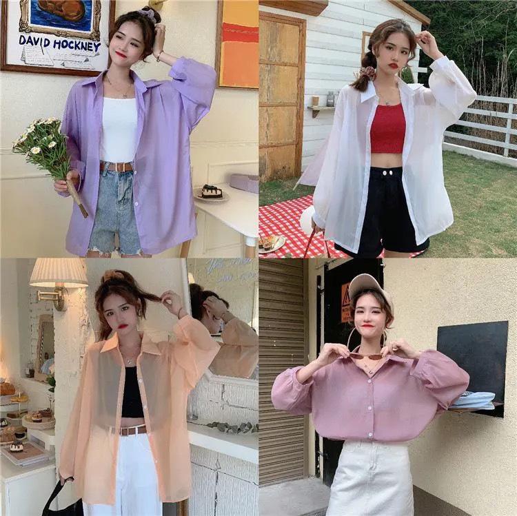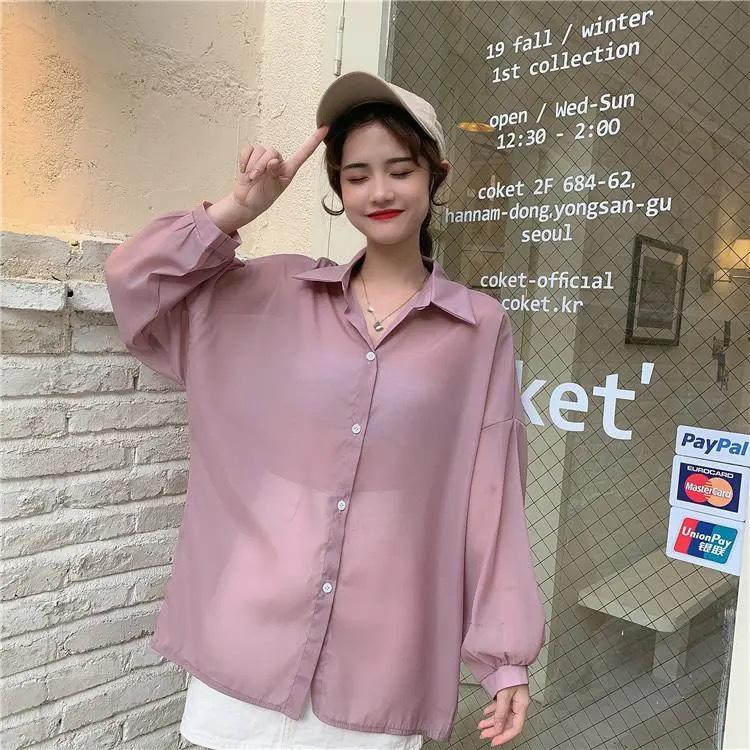 Camisa de protección solar para mujer verano 2021 nuevo estilo suelta versátil gasa manga larga verano delgada camisa chaqueta