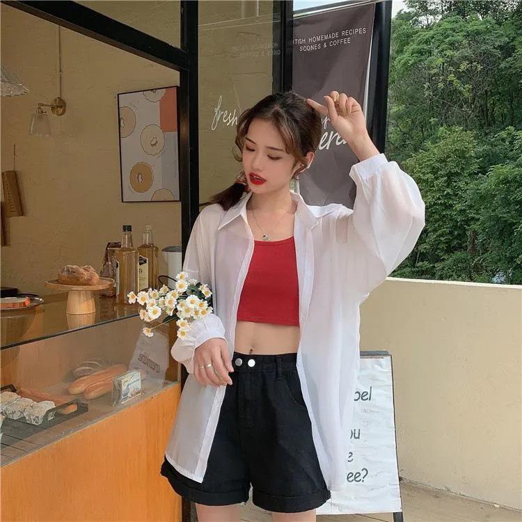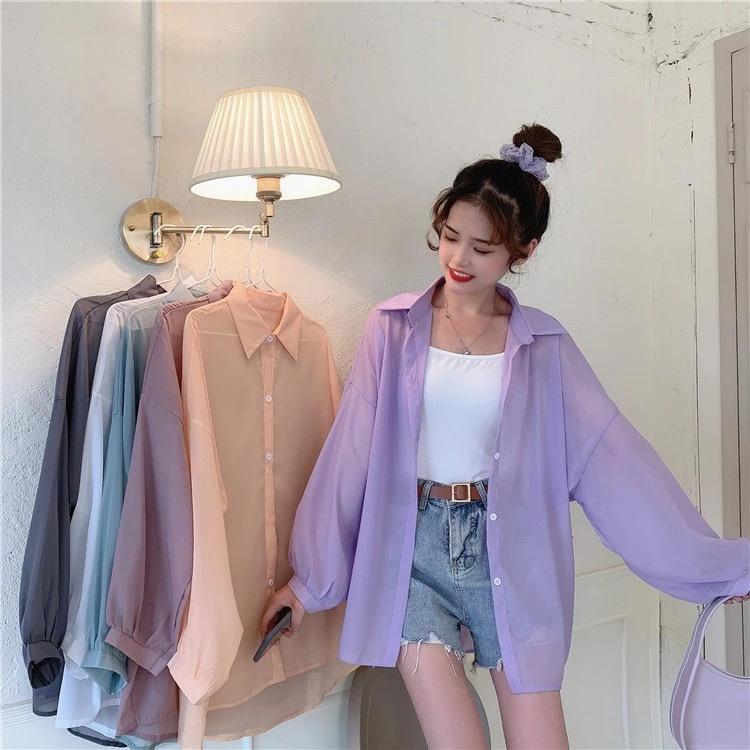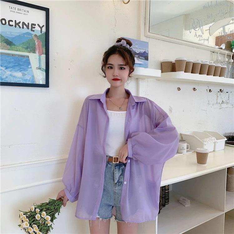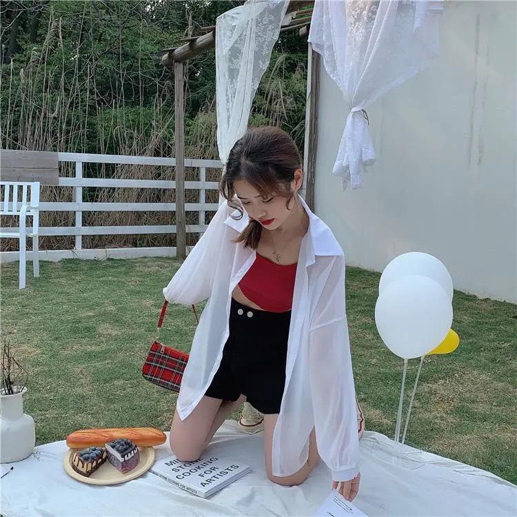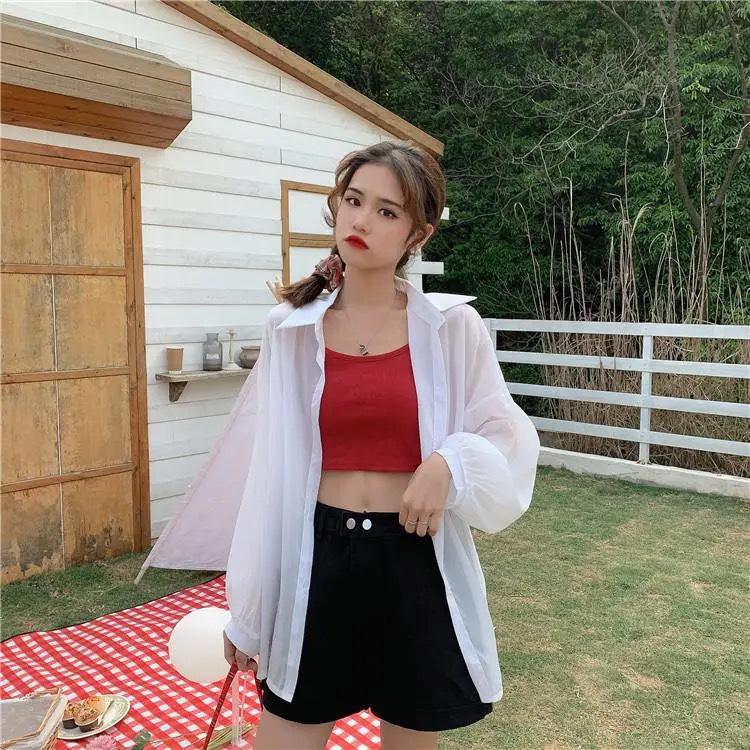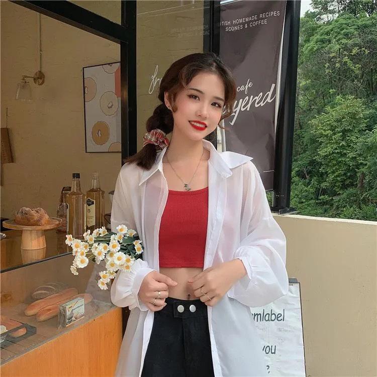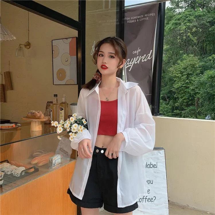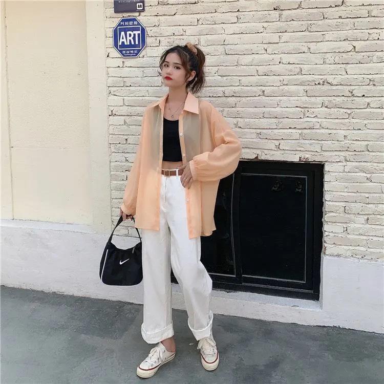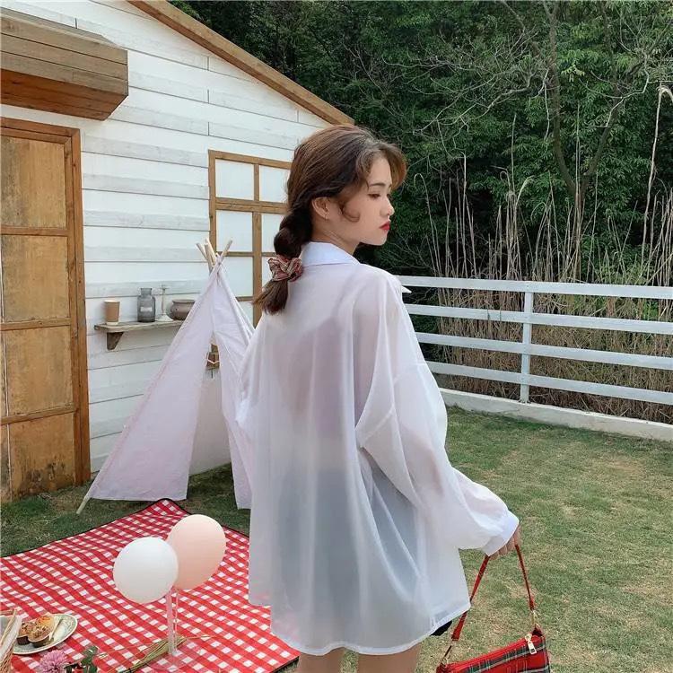 Camisa de protección solar para mujer verano 2021 nuevo estilo suelta versátil gasa manga larga verano delgada camisa chaqueta
