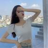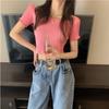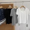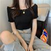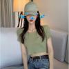 Camiseta de punto ajustada de manga corta negra para mujer, nueva primavera y verano 2023, camisa interior ajustada con cuello redondo.