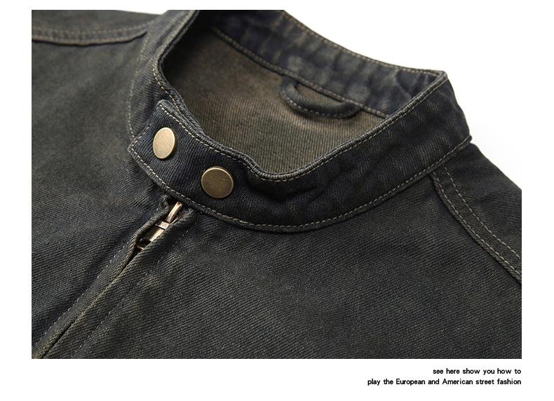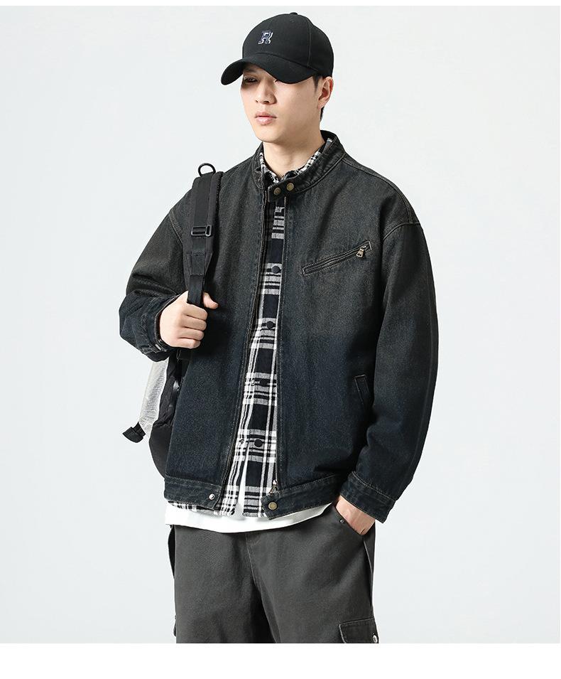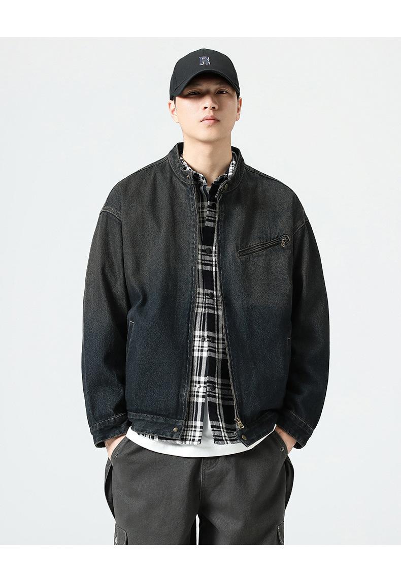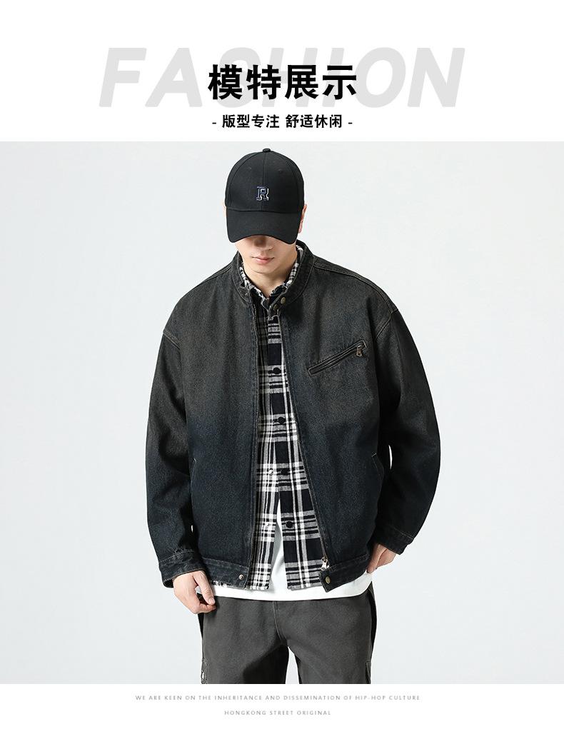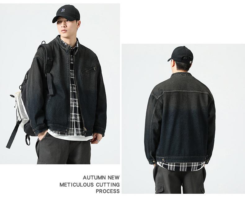 Chaqueta vaquera lavada estilo americano retro con degradado antiguo para hombre, nueva chaqueta informal de otoño con cuello vertical, ropa de moda para hombre
