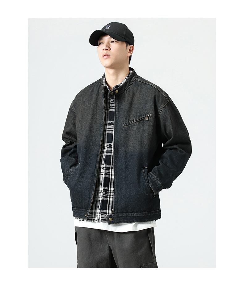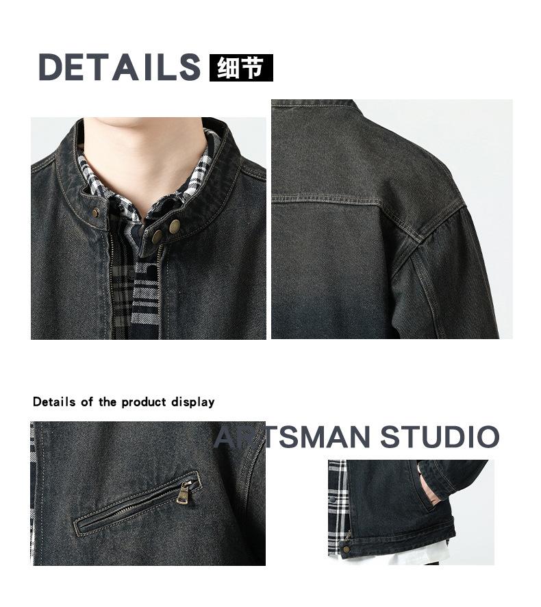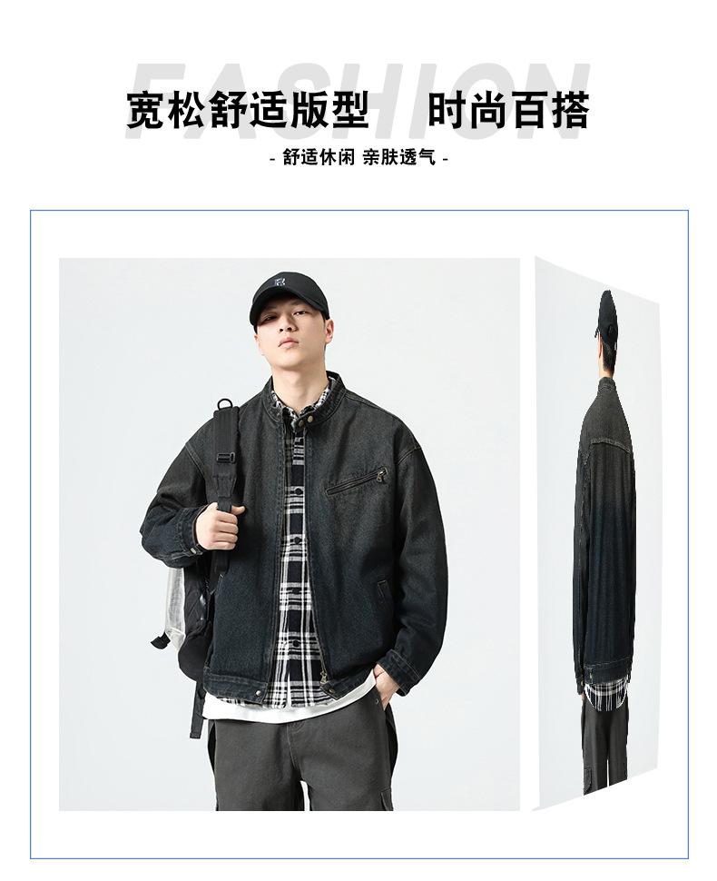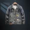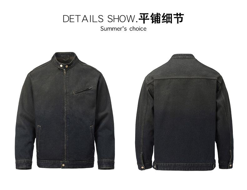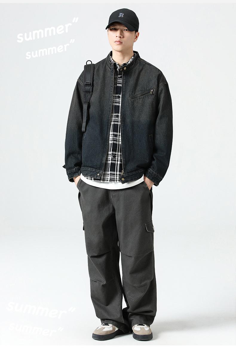 Chaqueta vaquera lavada estilo americano retro con degradado antiguo para hombre, nueva chaqueta informal de otoño con cuello vertical, ropa de moda para hombre