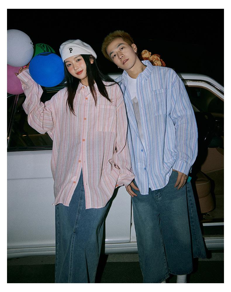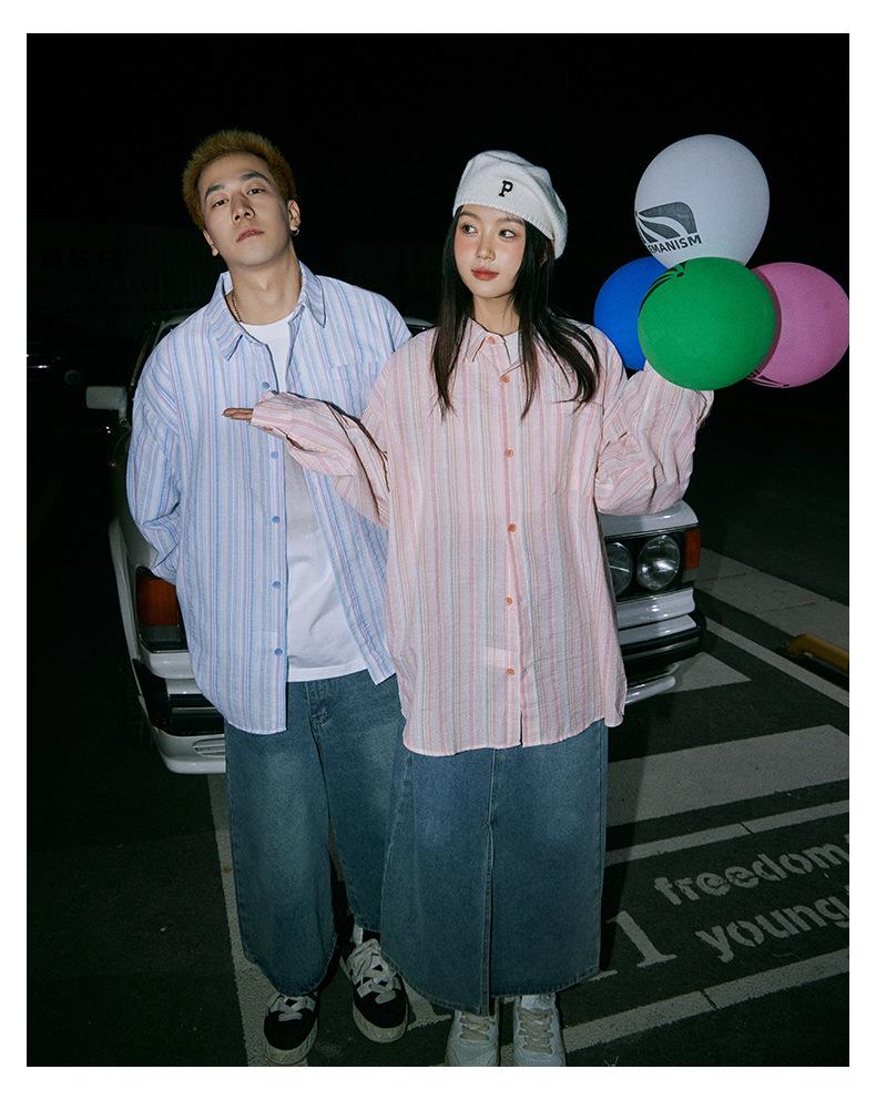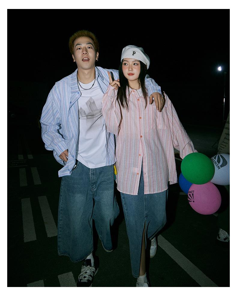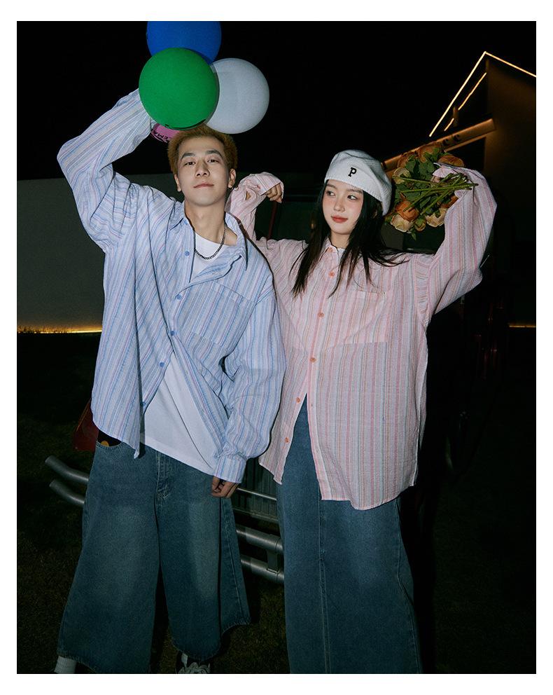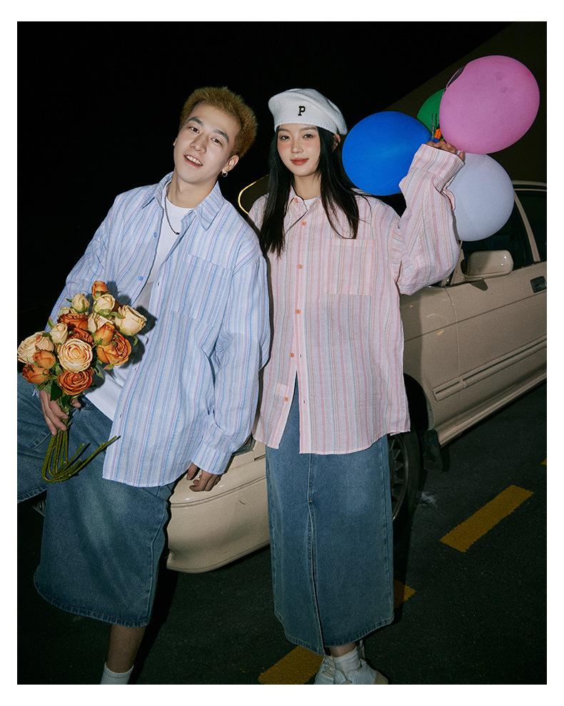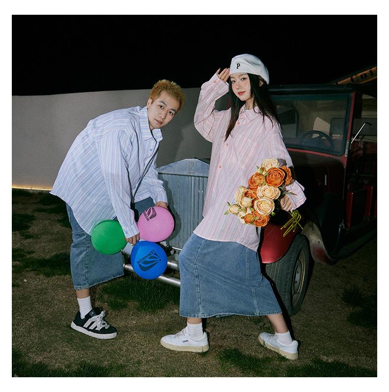 Camisa de Otoño XK a Rayas de Manga Larga Camisa Protectora del Sol para Mujer Suelta Combinable Casual Marca de Moda Abrigo Top para Pareja