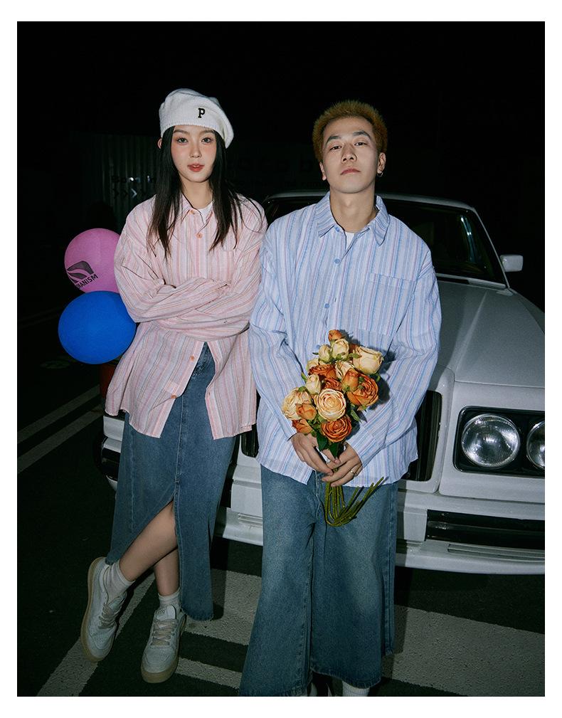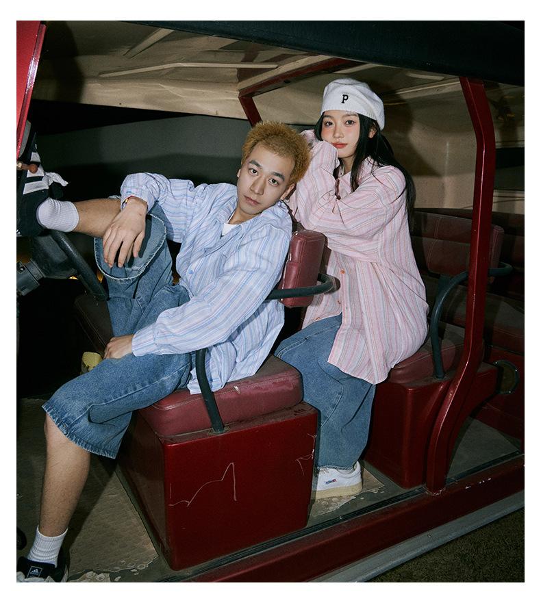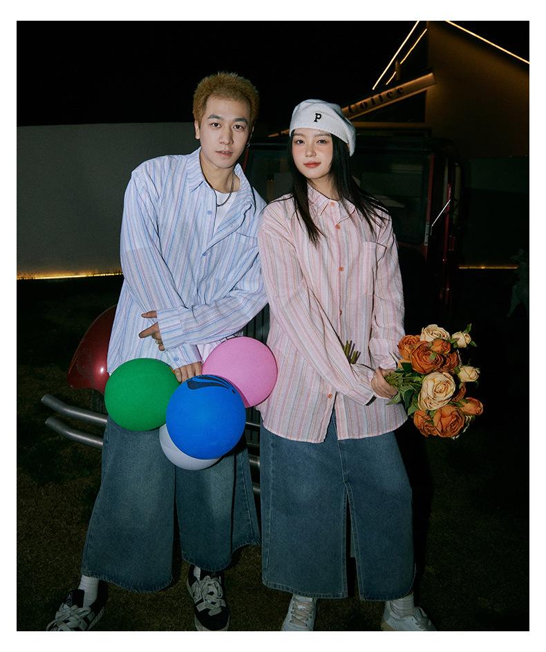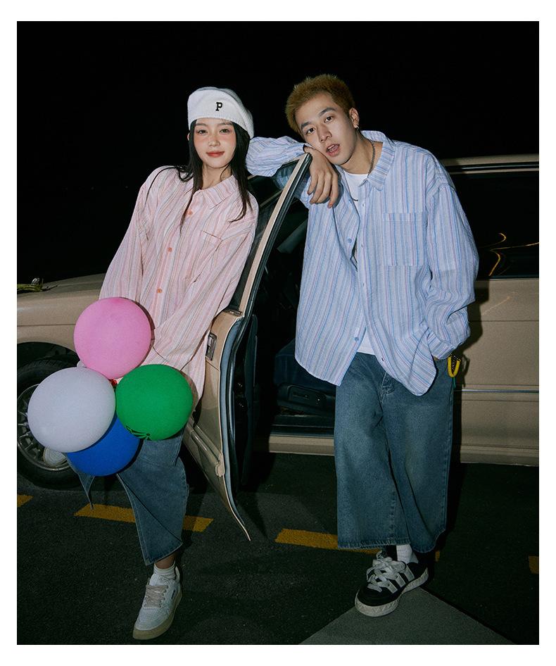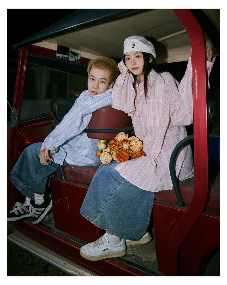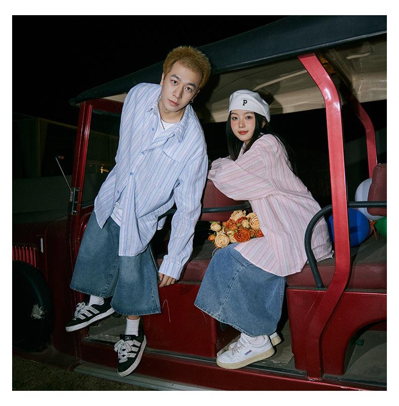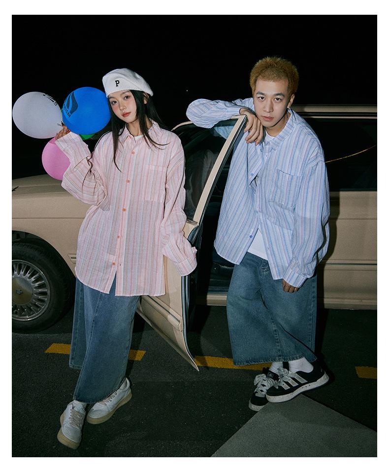Camisa de Otoño XK a Rayas de Manga Larga Camisa Protectora del Sol para Mujer Suelta Combinable Casual Marca de Moda Abrigo Top para Pareja