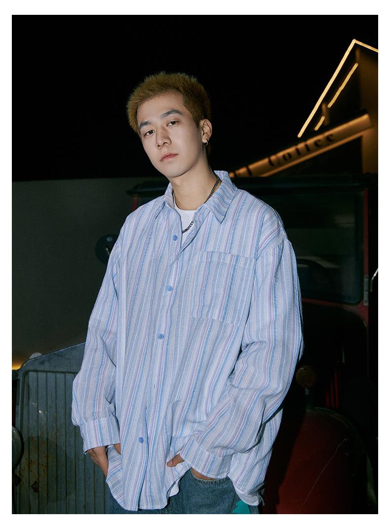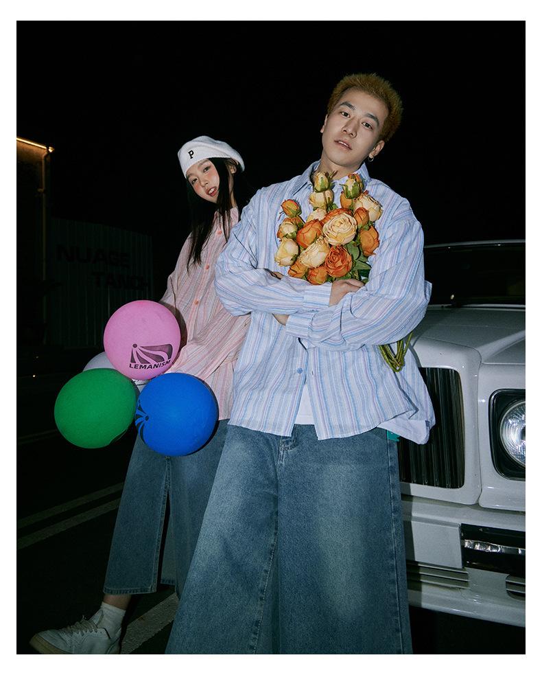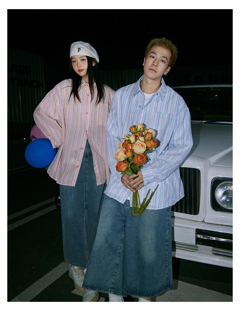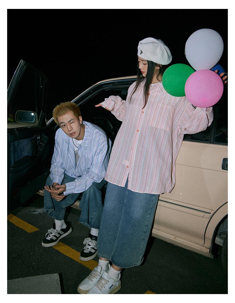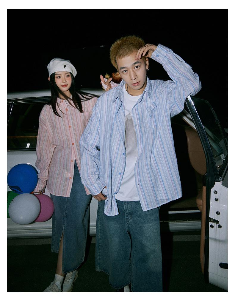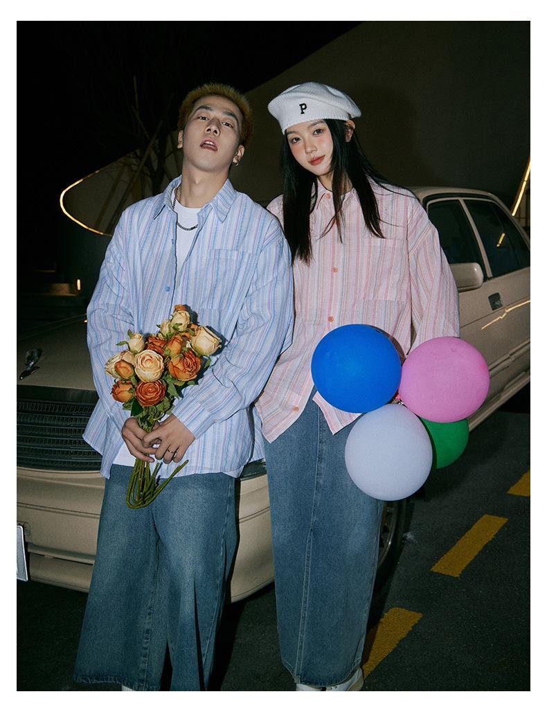 Camisa de Otoño XK a Rayas de Manga Larga Camisa Protectora del Sol para Mujer Suelta Combinable Casual Marca de Moda Abrigo Top para Pareja