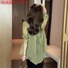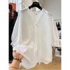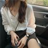 Camisa blanca de mujer con diseño Sense, popular en verano, de encaje fino, con cuello en V y manga larga, camisa exterior protectora del sol para mujer.