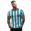 2024 Verano Nuevo Transfronterizo Europeo y Americano 3D Rayas Verdes y Blancas Simple Casual Estampada Holgada Camiseta de Manga Corta para Hombre