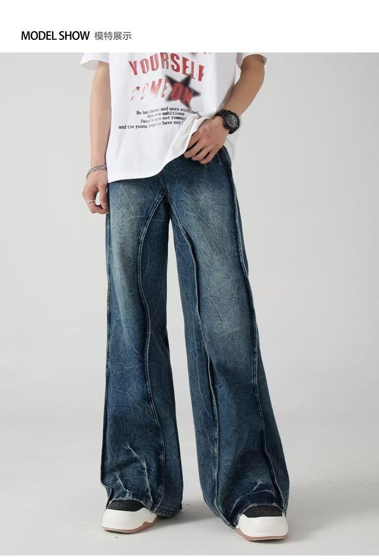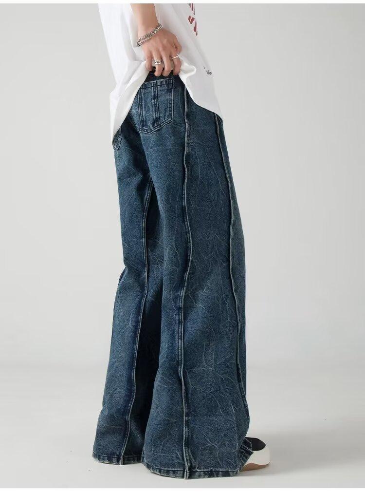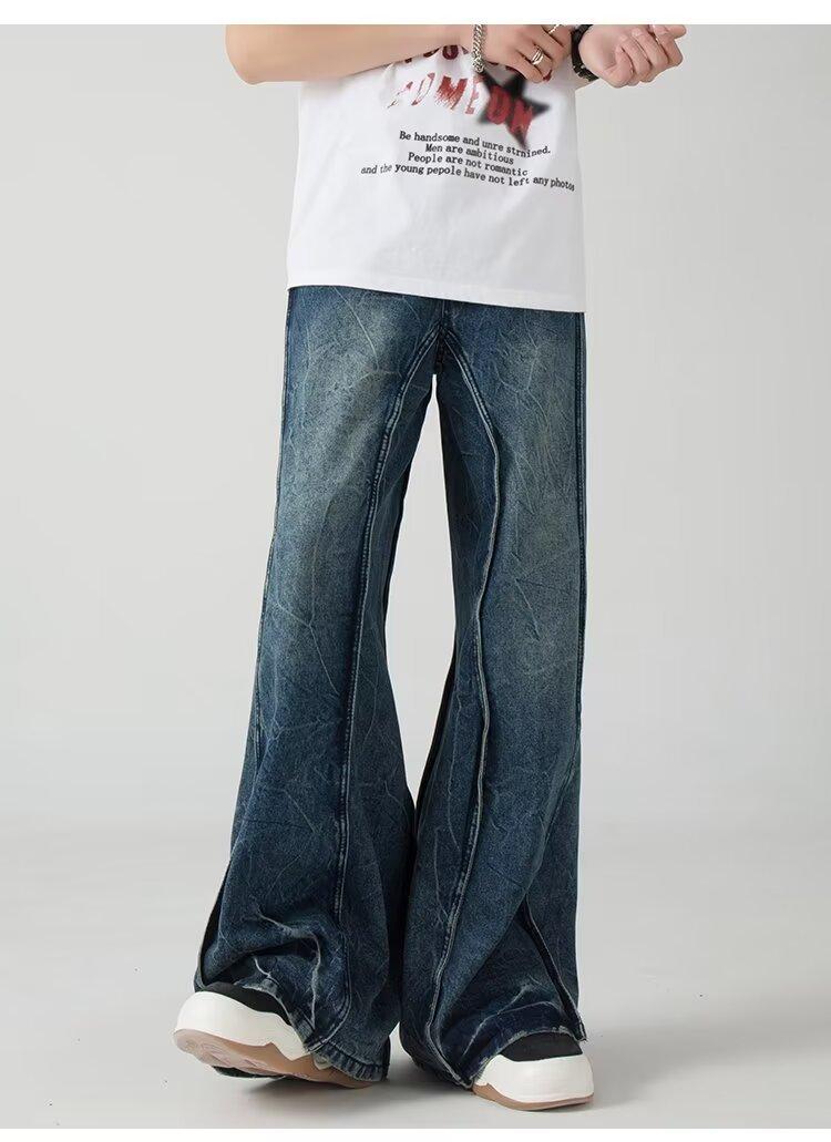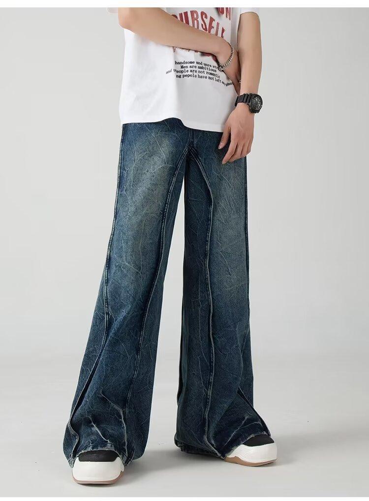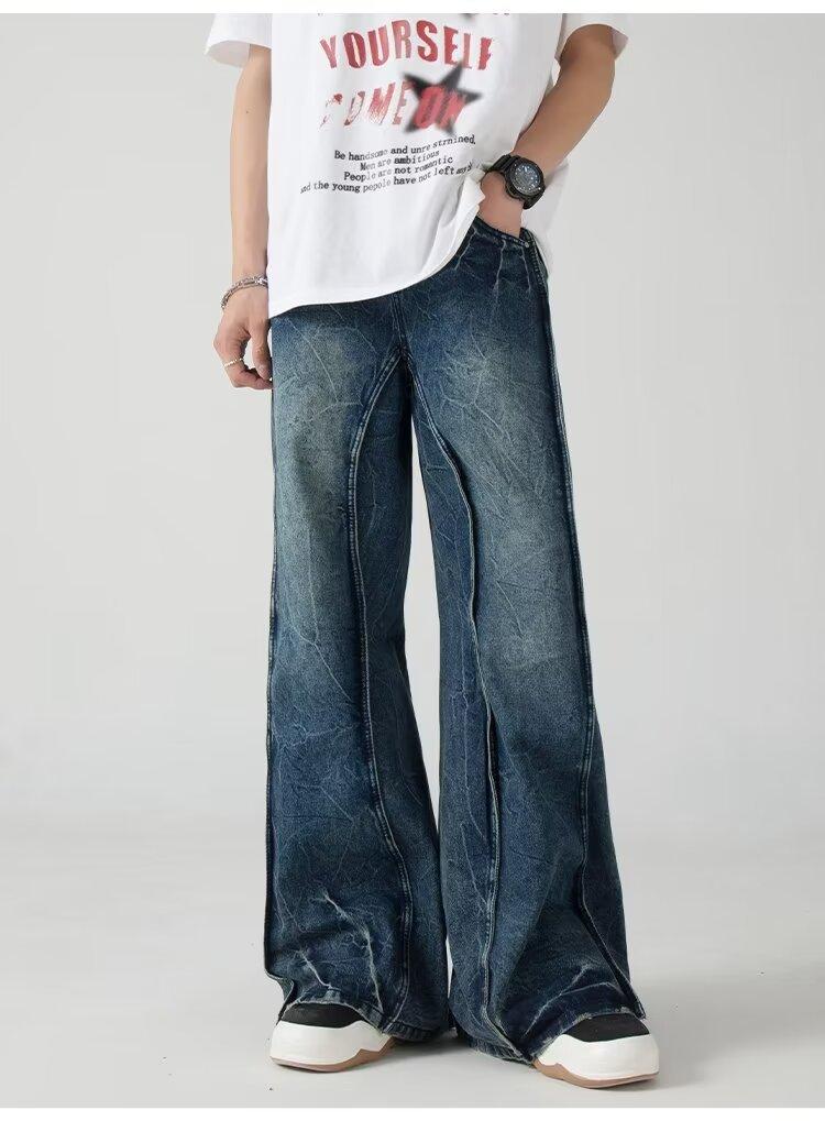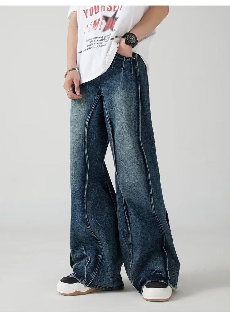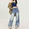 Jeans 2024 Americano Retro Nicho Diseño Costuras Sueltos High Street Pierna Ancha Dape Pantalones Rectos Pantalones de Verano de Moda