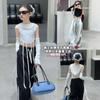 Pantalones Deportivos Cd Trendy American Drape para Niñas Primavera y Otoño 2025 Nuevos Sueltos Casuales Pierna Ancha Pantalones de Sudor para Pareja