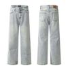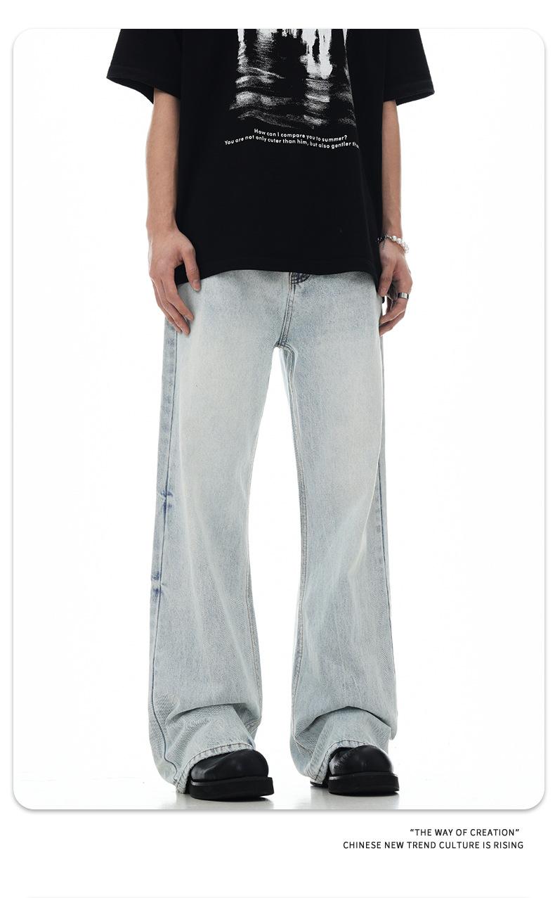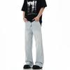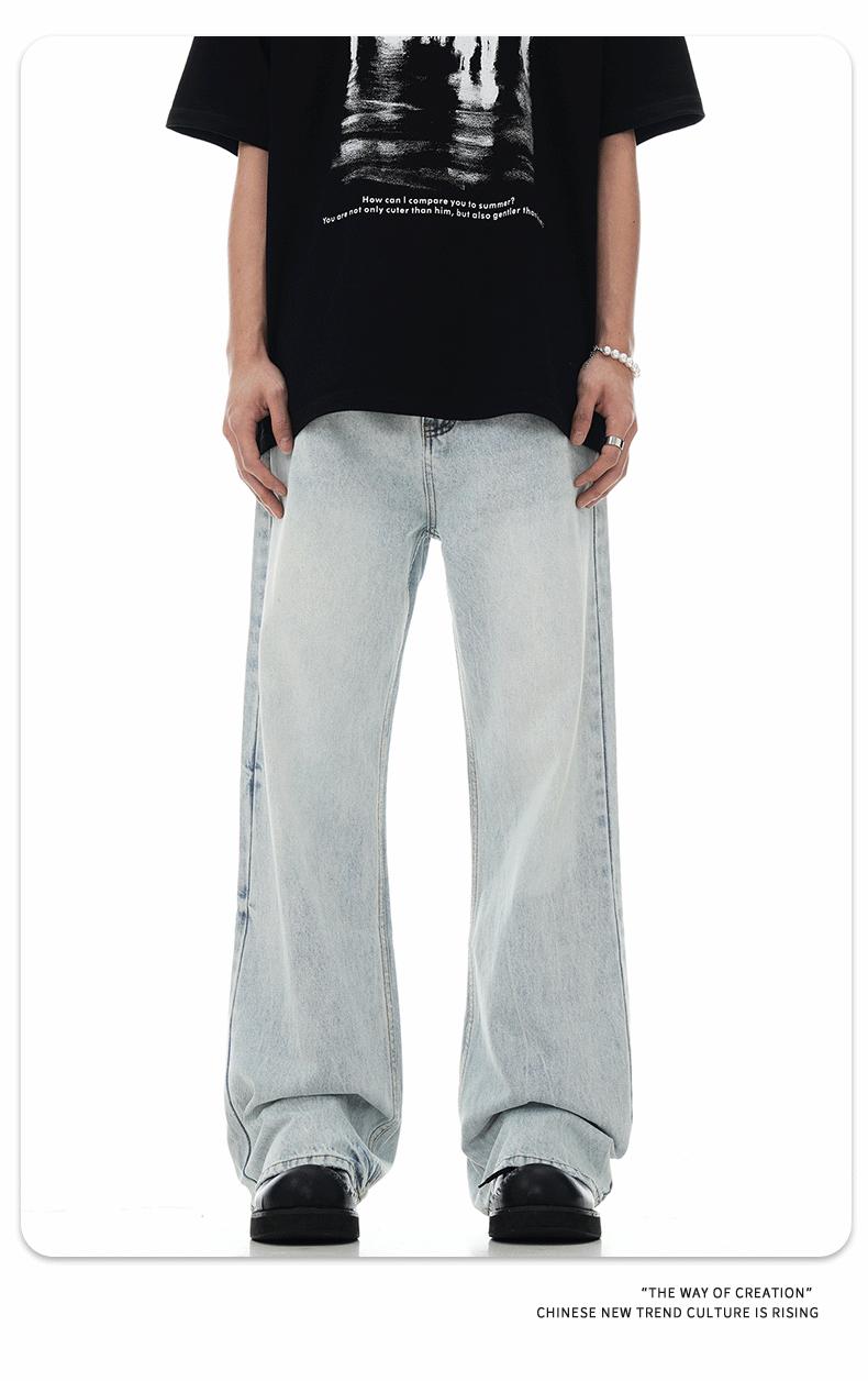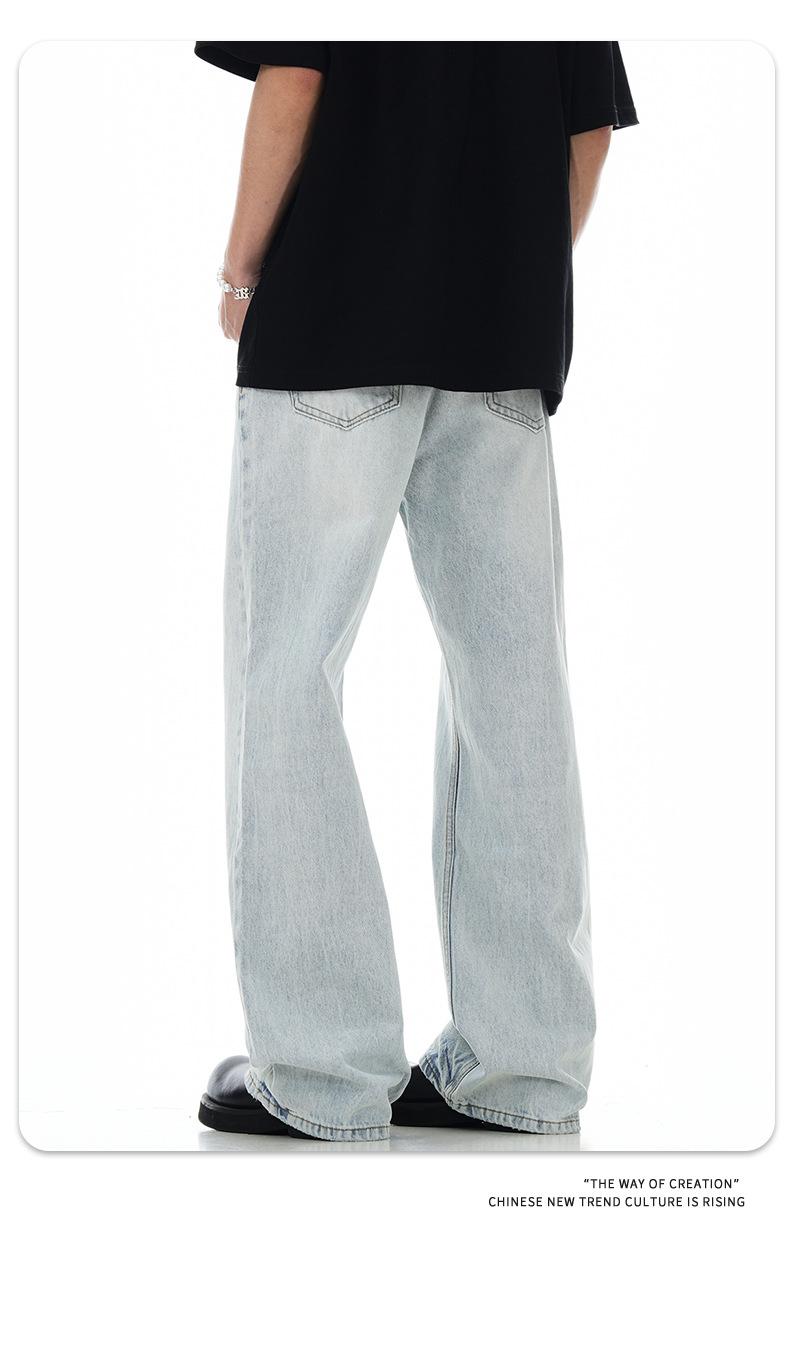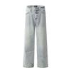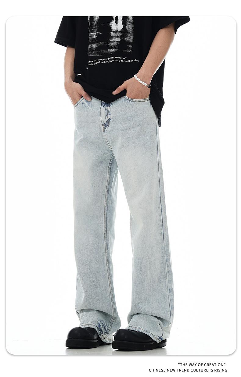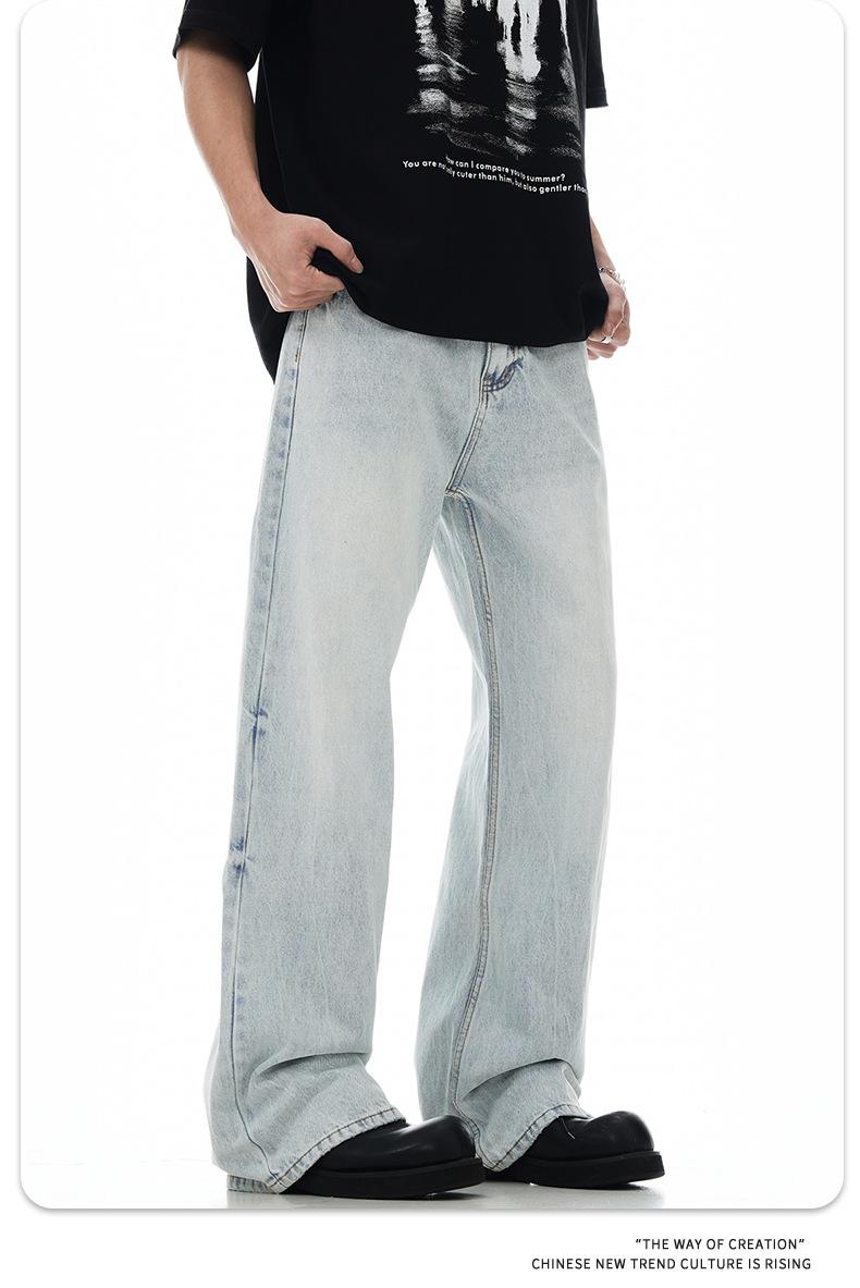 11KN American Retro lavado y molido blanco pierna recta pantalones vaqueros básicos para hombres verano suelto drapeado pierna ancha pantalones largos ins