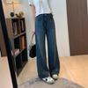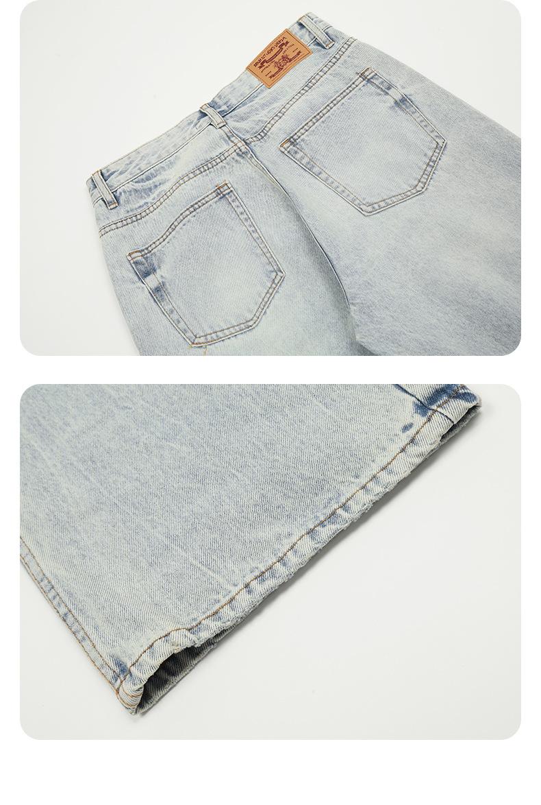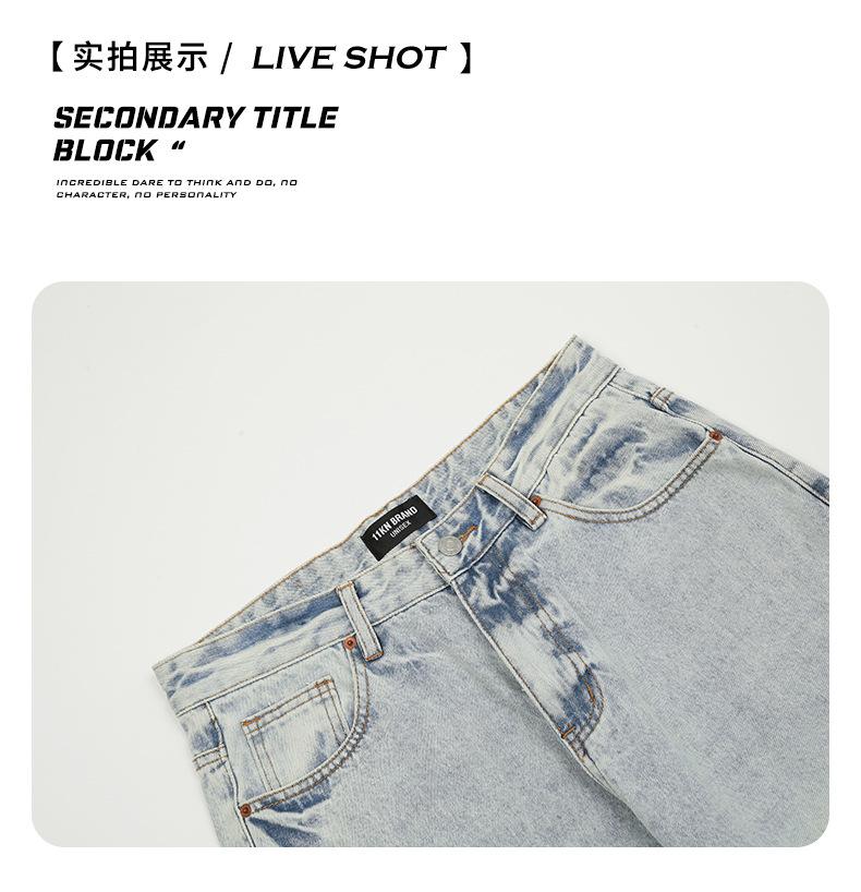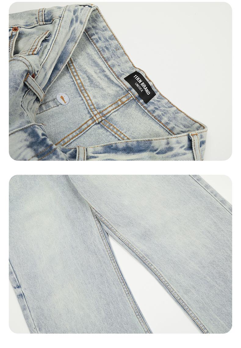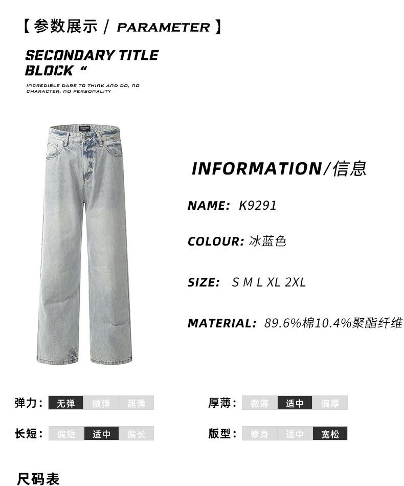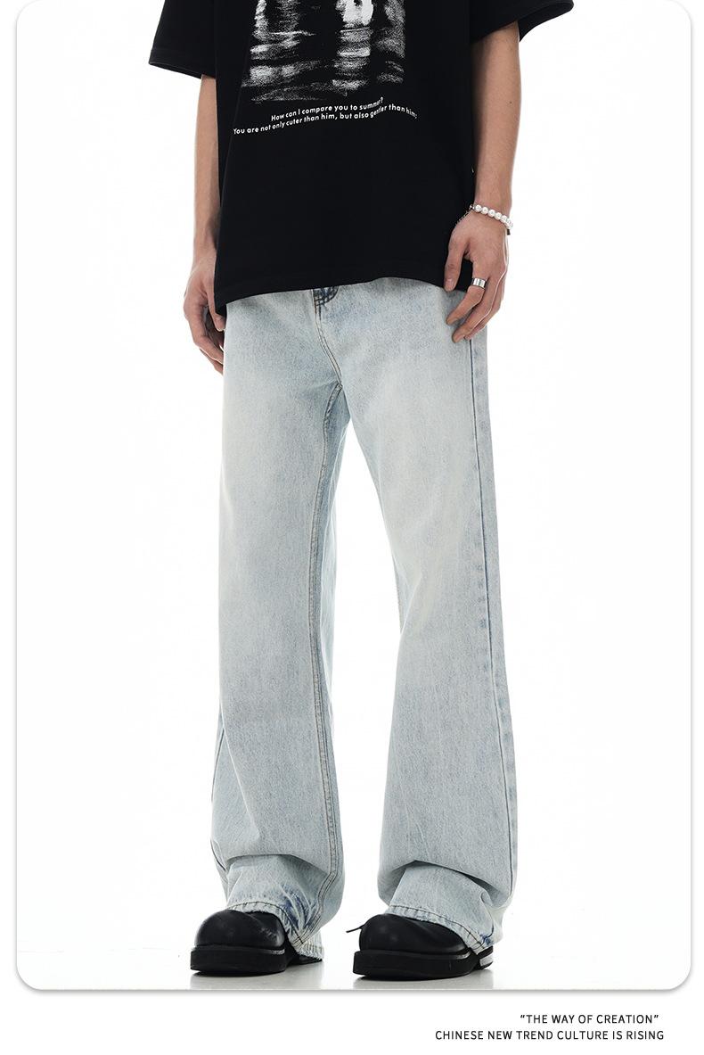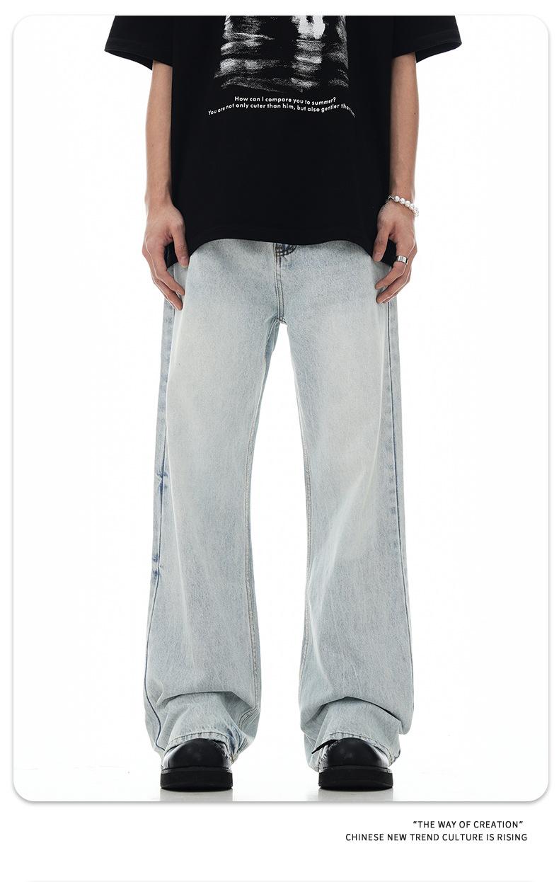 11KN American Retro lavado y molido blanco pierna recta pantalones vaqueros básicos para hombres verano suelto drapeado pierna ancha pantalones largos ins