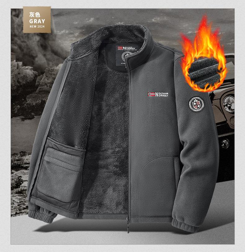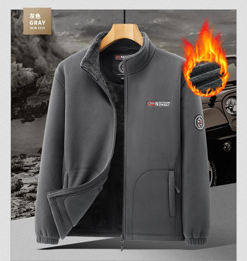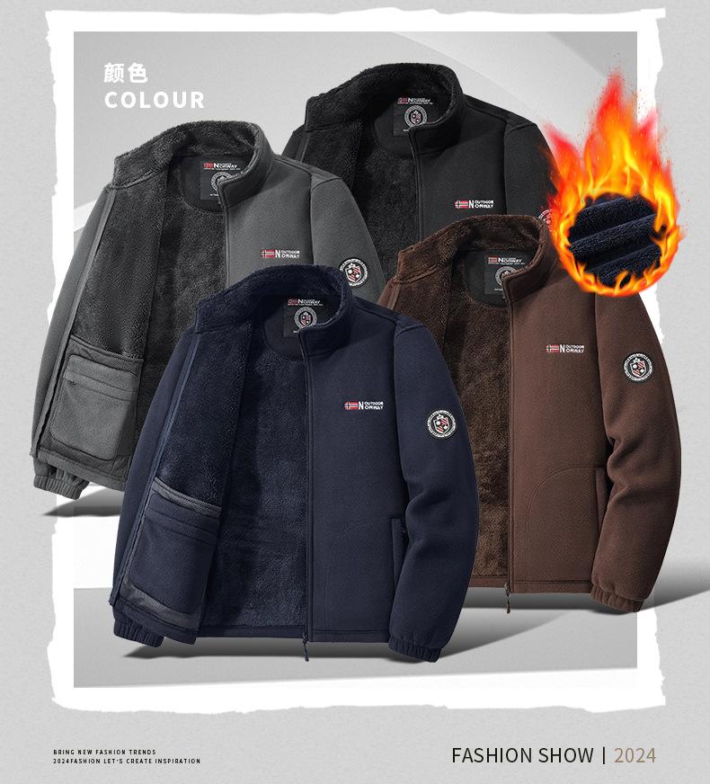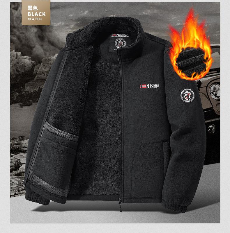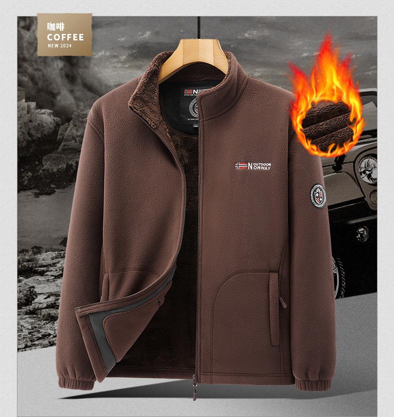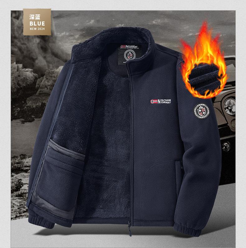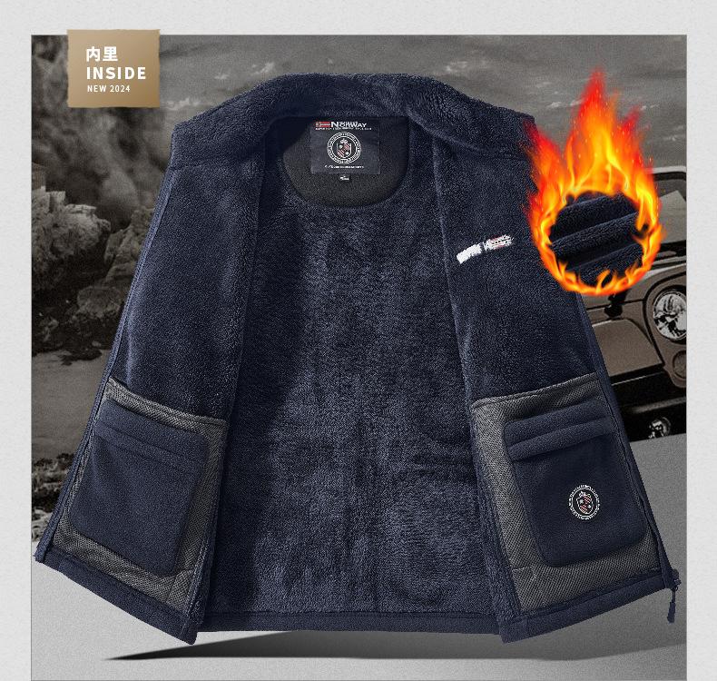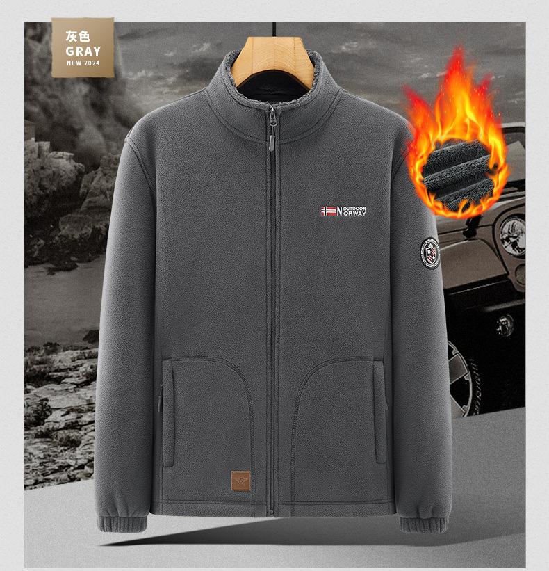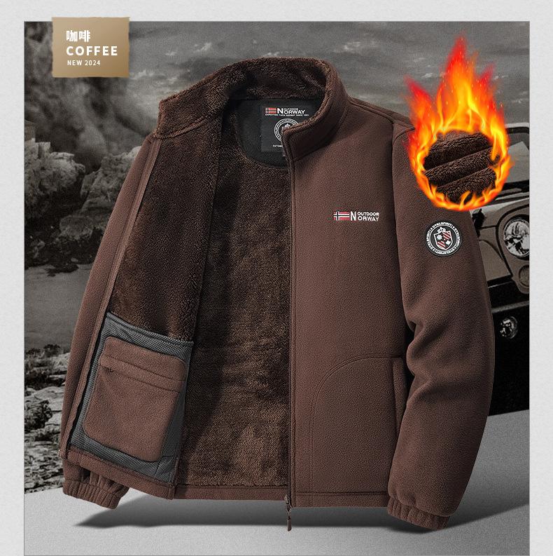 Chaqueta para hombre de lana gruesa para otoño e invierno 2025 con cuello alto, chaqueta cálida de talla grande