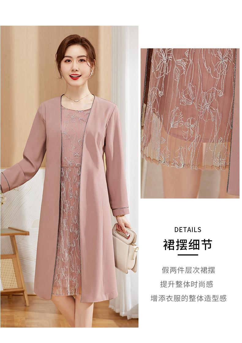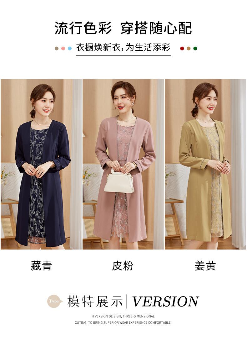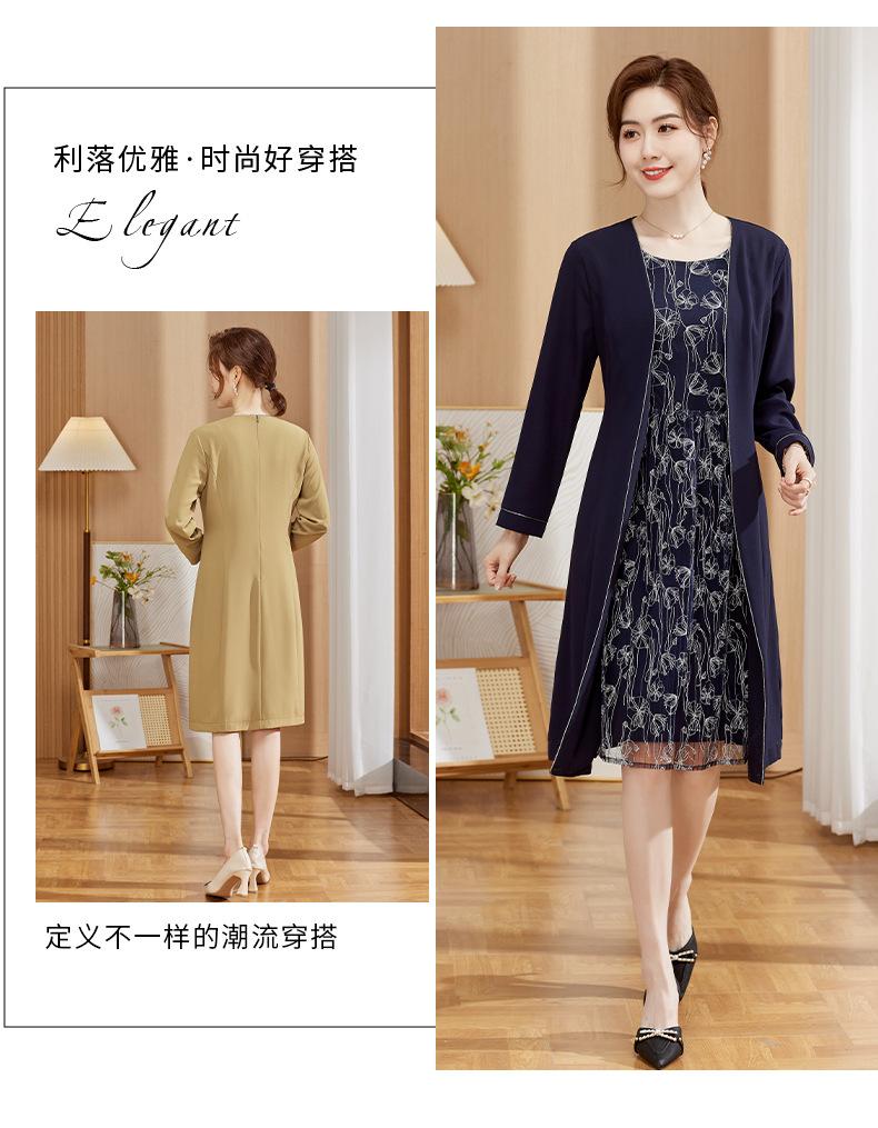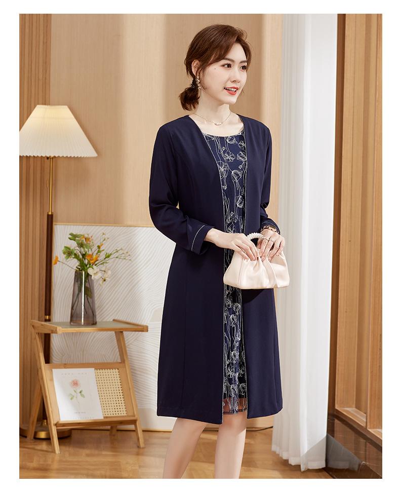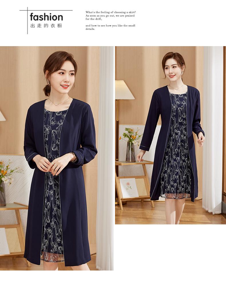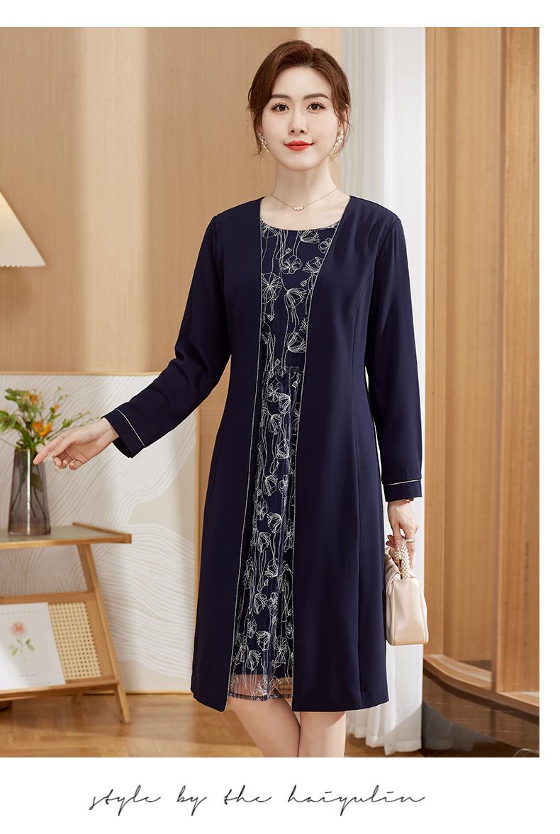 Vestido de dos piezas de manga larga de otoño para mamá, regalo de primavera y otoño para mujer, falda nueva por encima de la rodilla para mediana edad y mayores DLY-639
