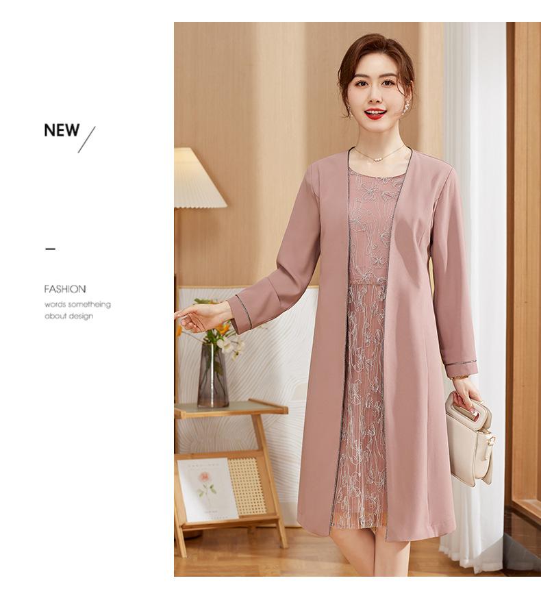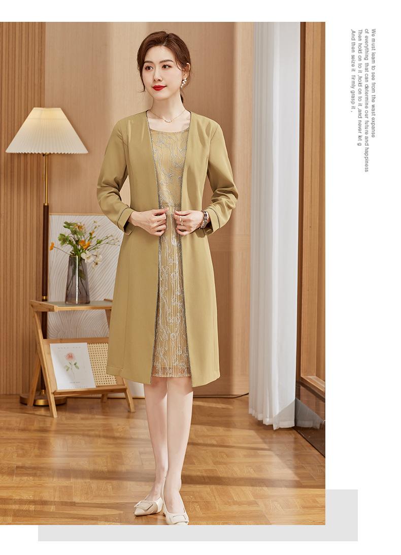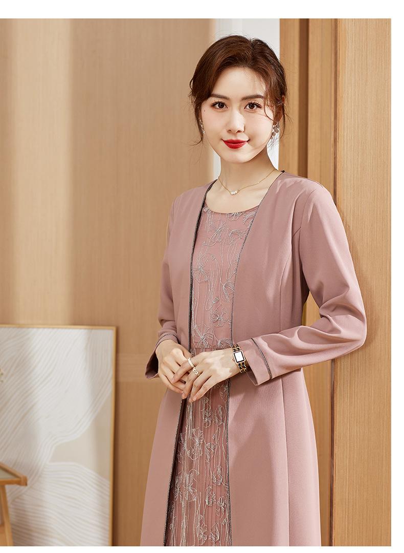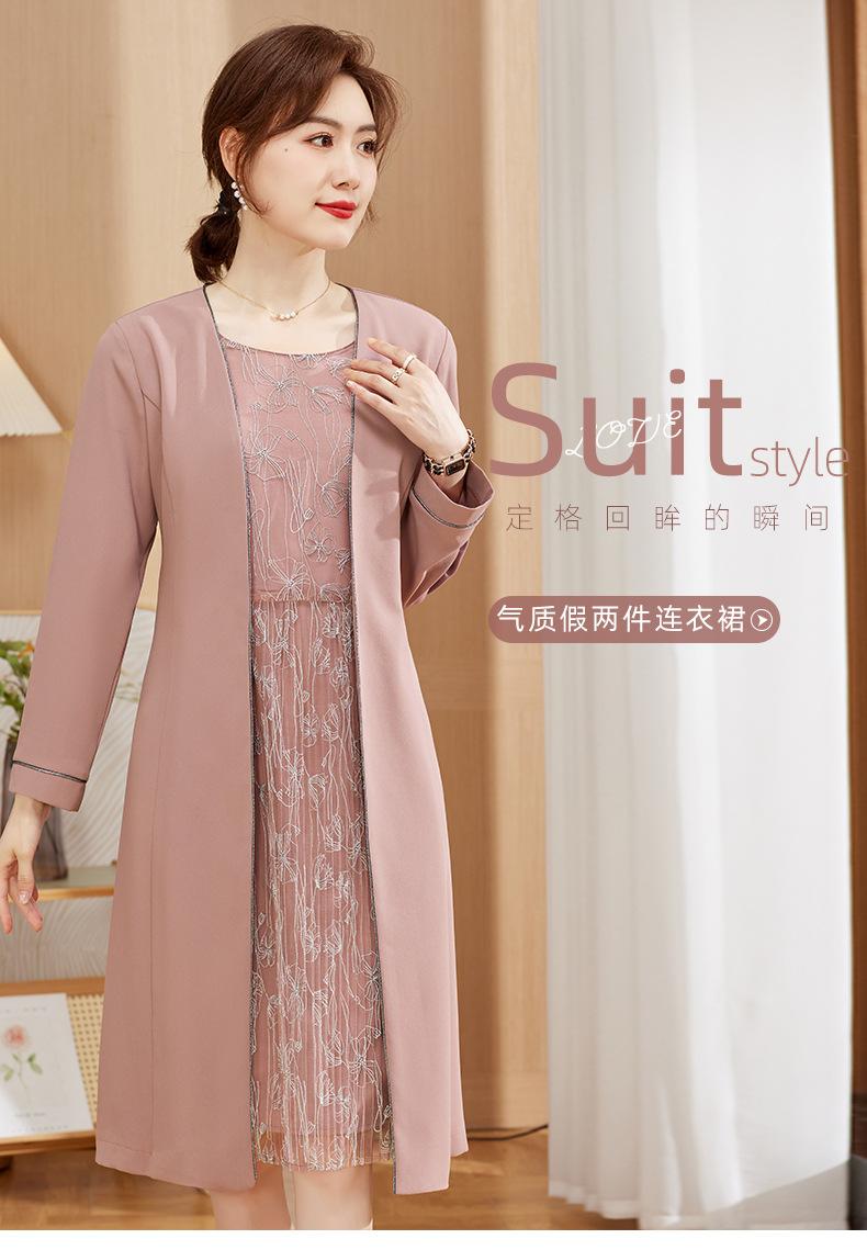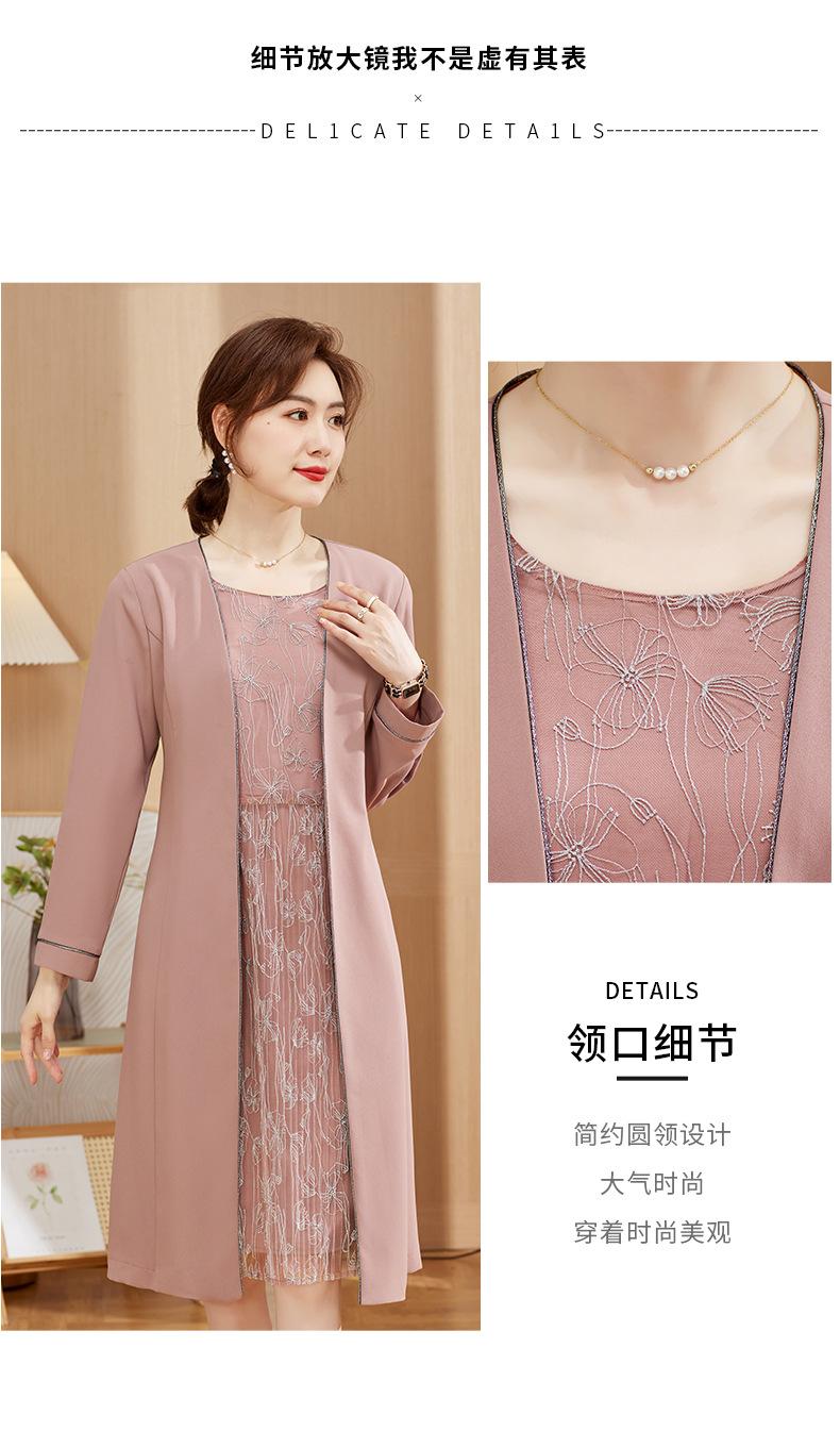 Vestido de dos piezas de manga larga de otoño para mamá, regalo de primavera y otoño para mujer, falda nueva por encima de la rodilla para mediana edad y mayores DLY-639
