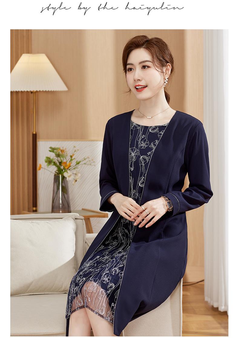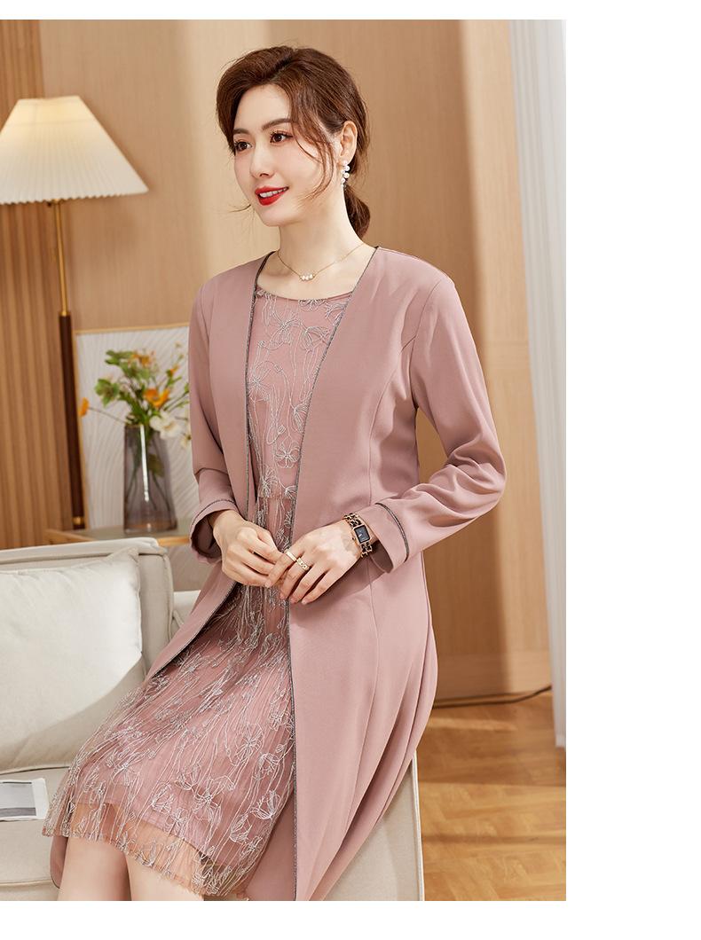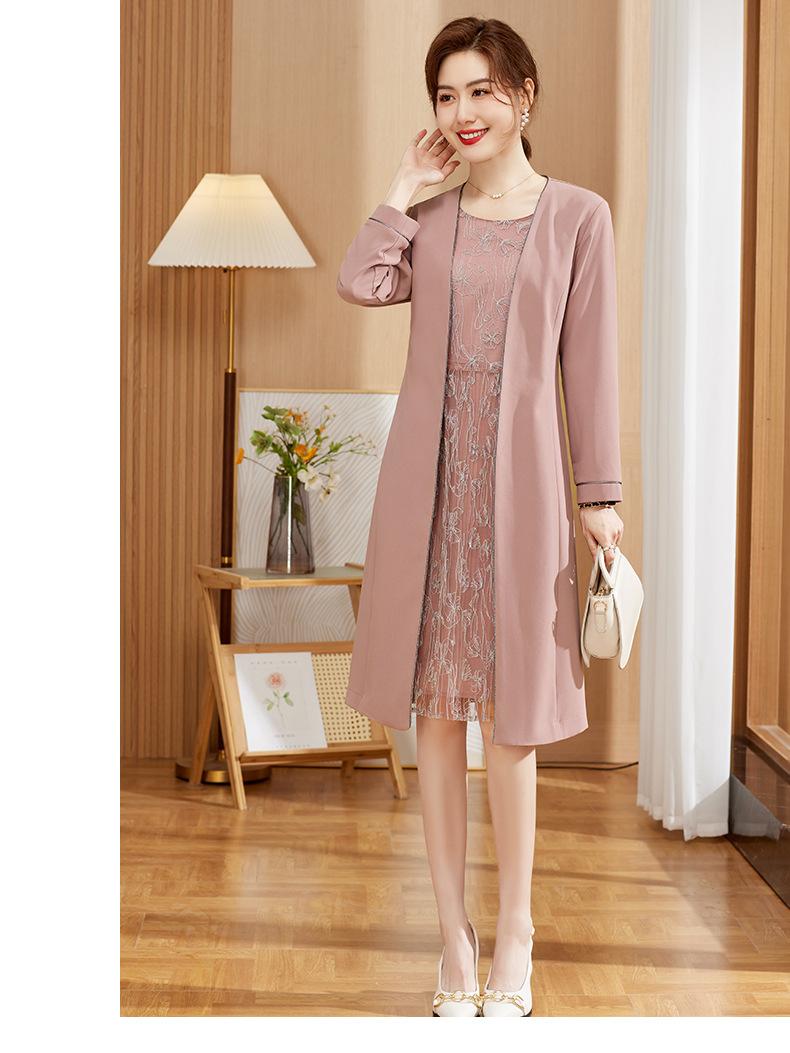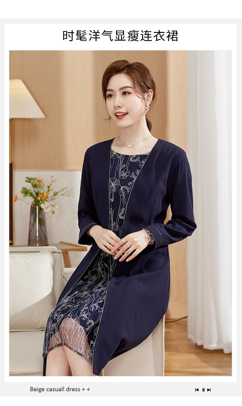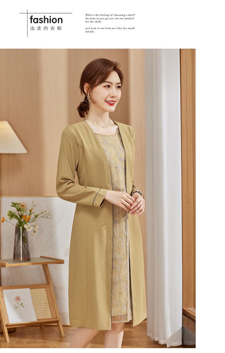 Vestido de dos piezas de manga larga de otoño para mamá, regalo de primavera y otoño para mujer, falda nueva por encima de la rodilla para mediana edad y mayores DLY-639