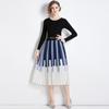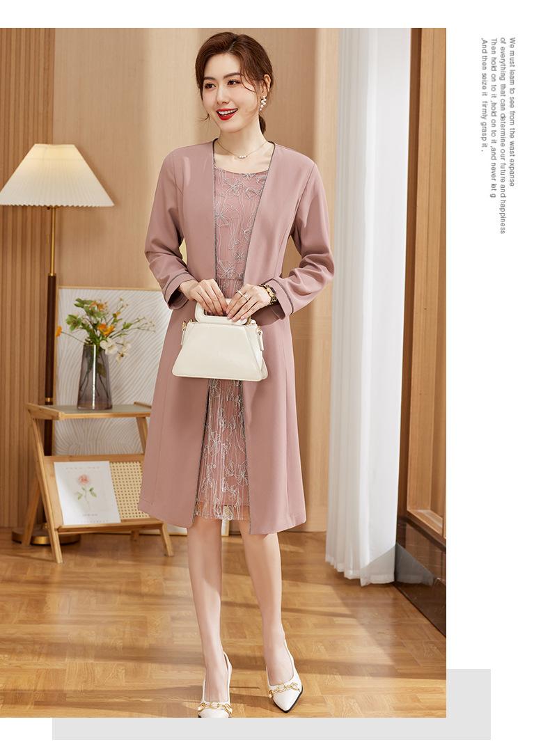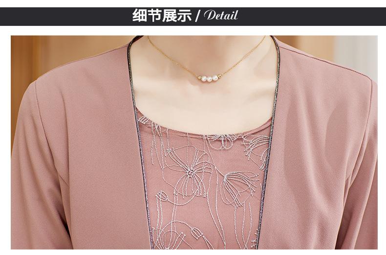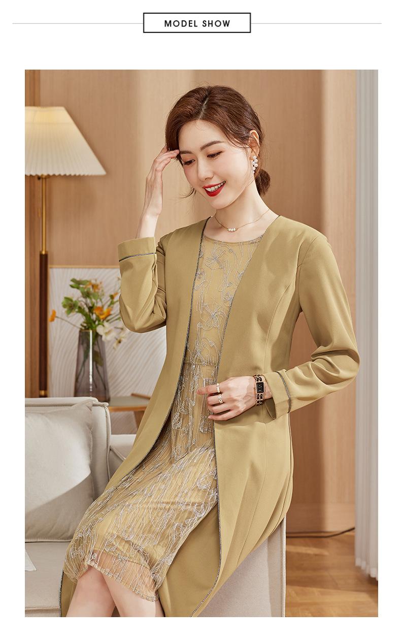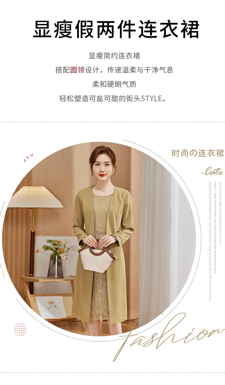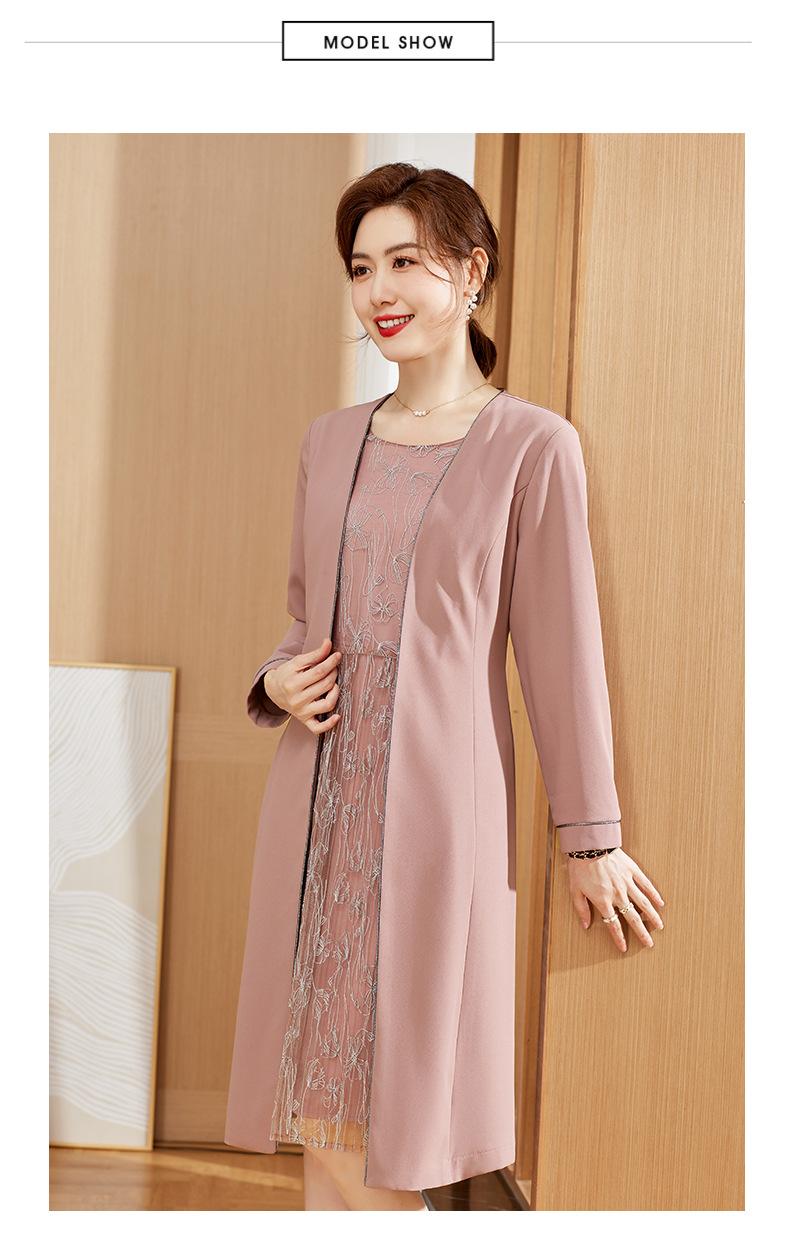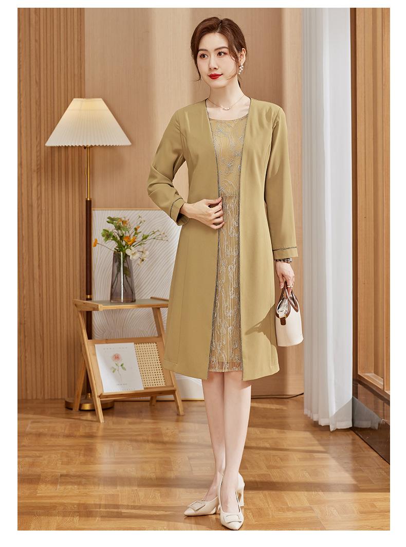 Vestido de dos piezas de manga larga de otoño para mamá, regalo de primavera y otoño para mujer, falda nueva por encima de la rodilla para mediana edad y mayores DLY-639