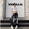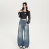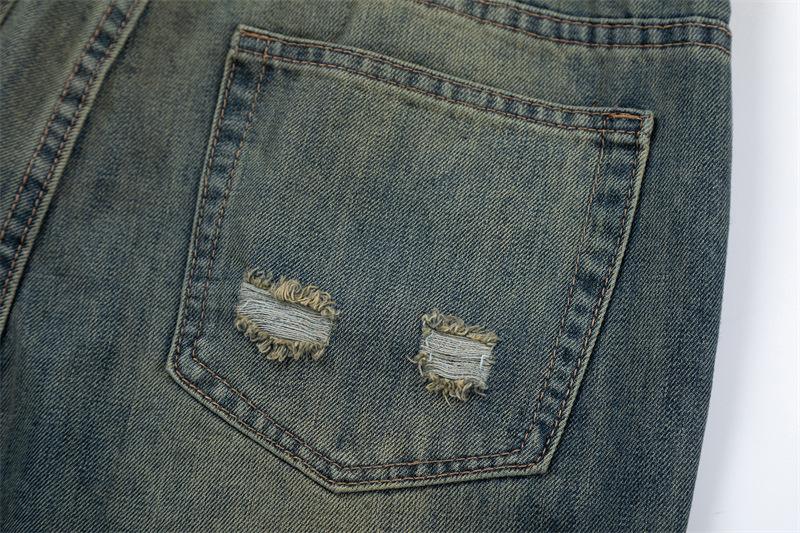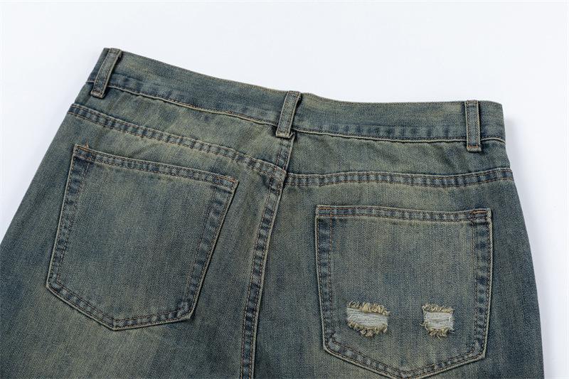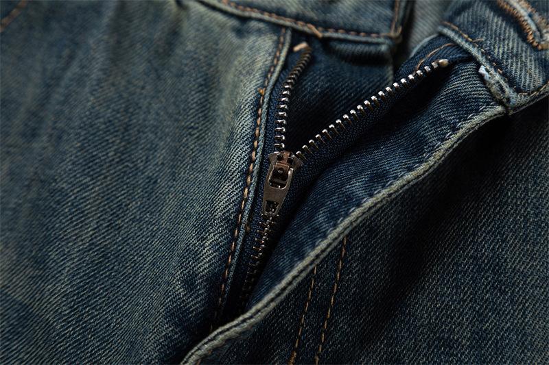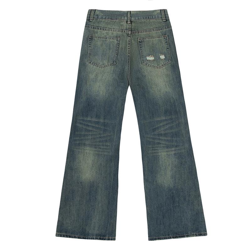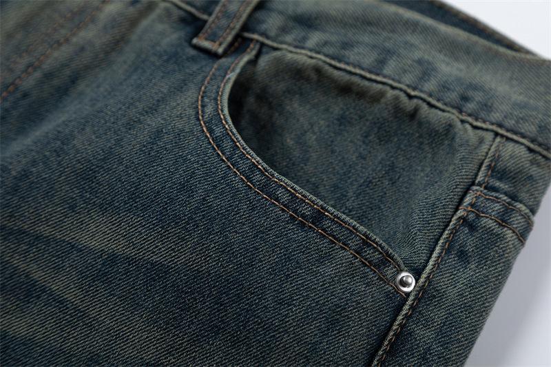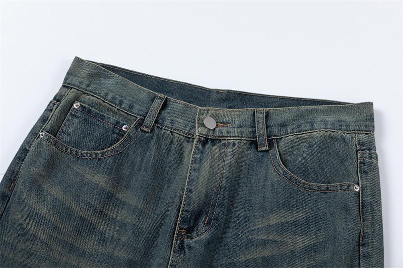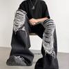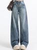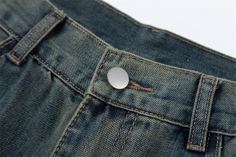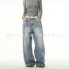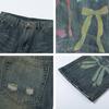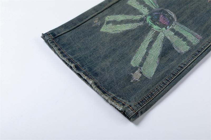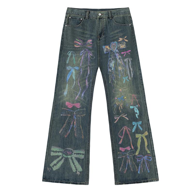 Pantalones vaqueros estilo americano con diseño de lazo pintado antiguo, estilo urbano, holgados, de pierna ancha y rectos, para hombre y mujer.
