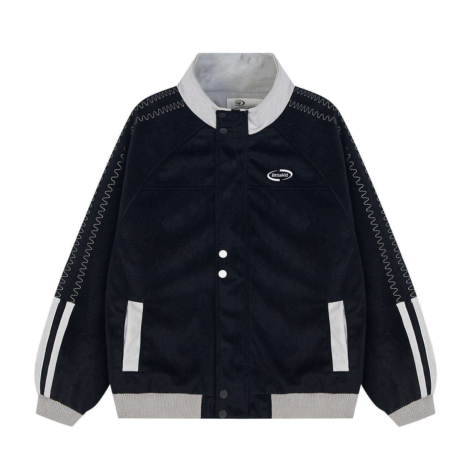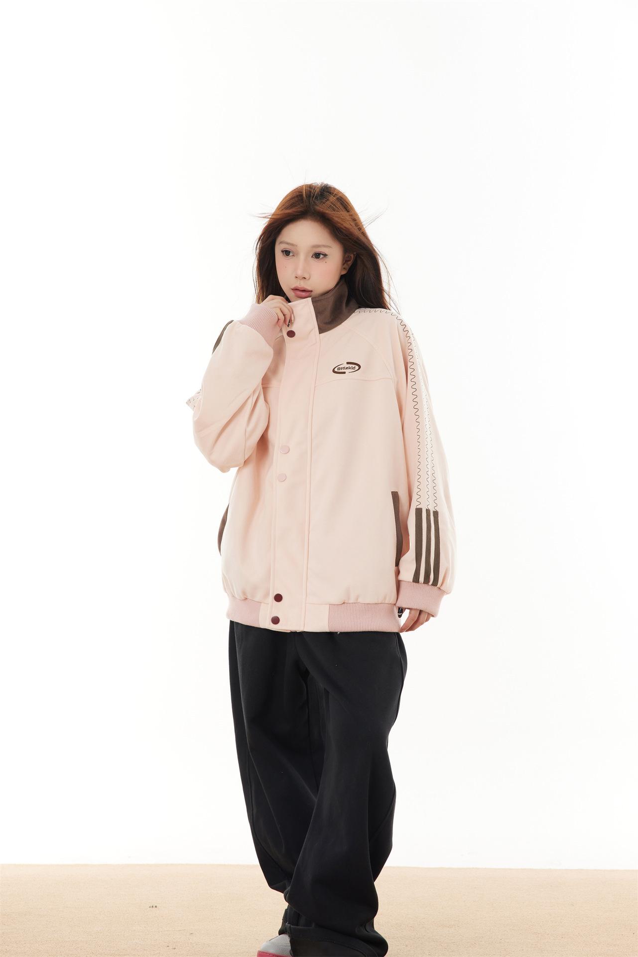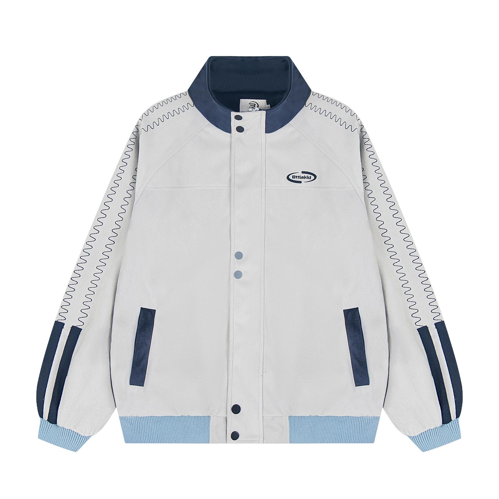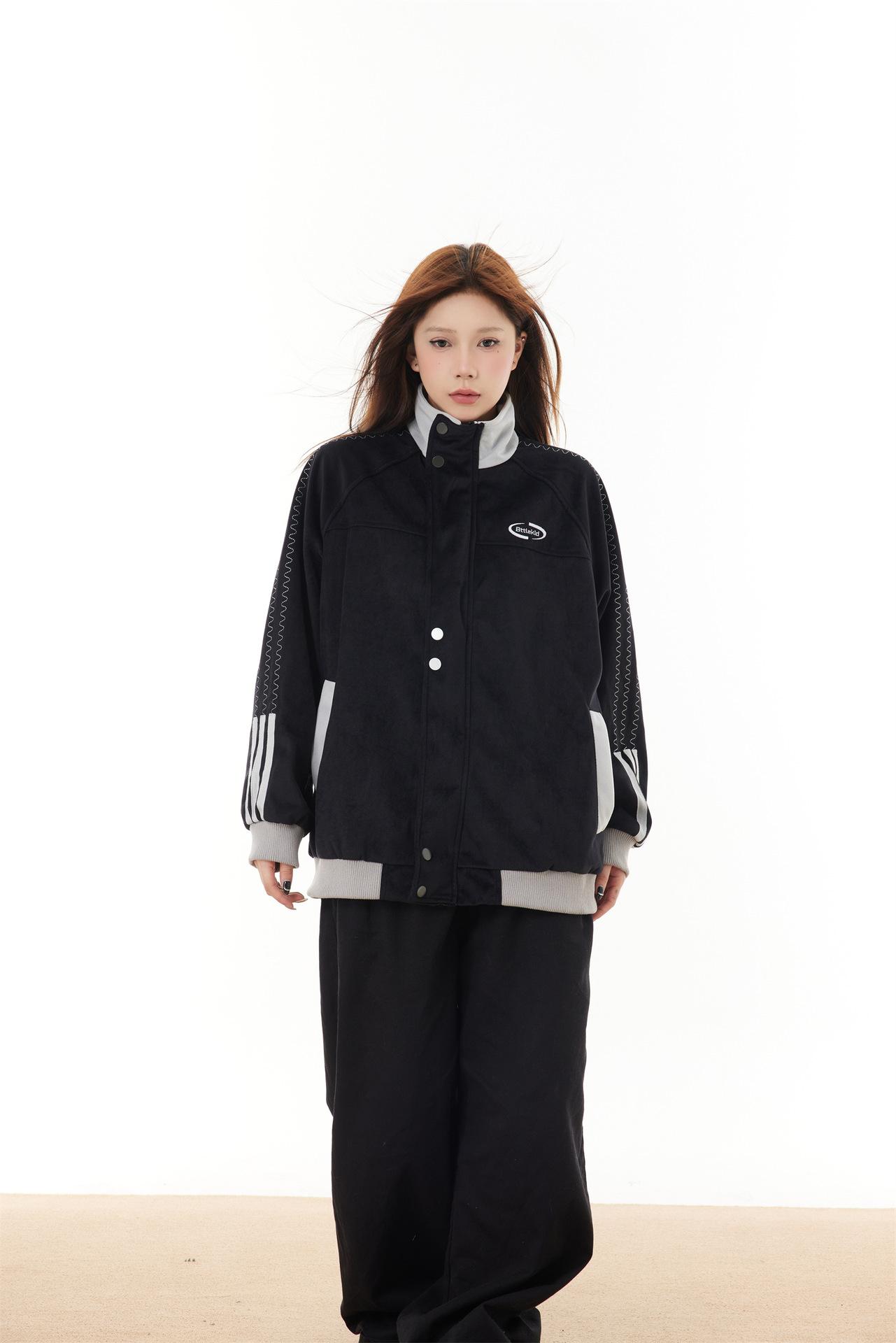 Chaqueta de trabajo holgada y versátil con diseño de rayas de American Street para hombre y mujer, con costuras contrastantes