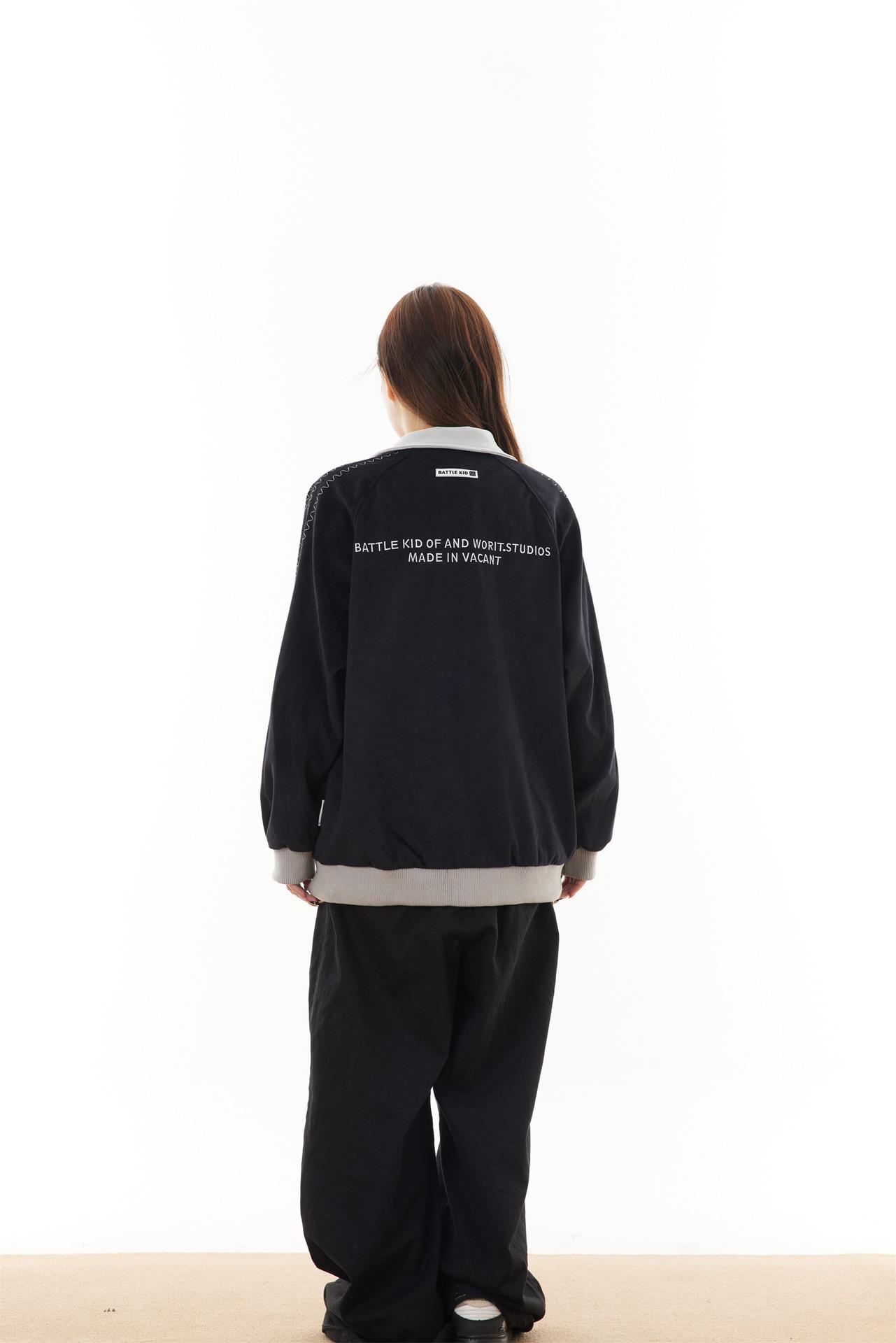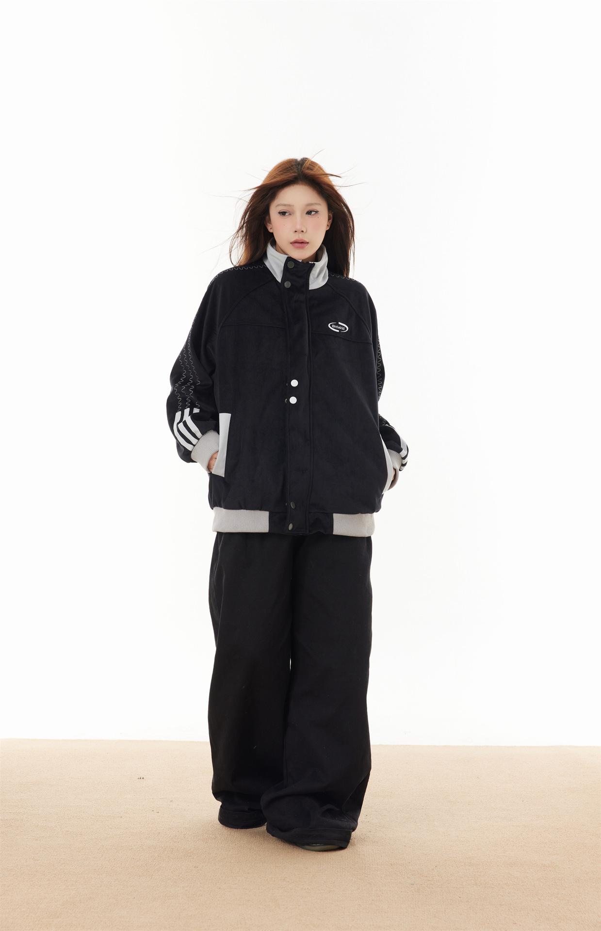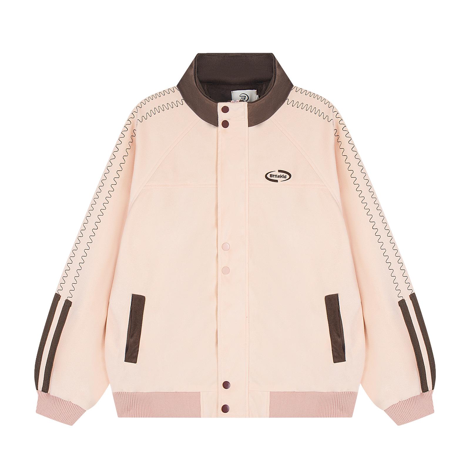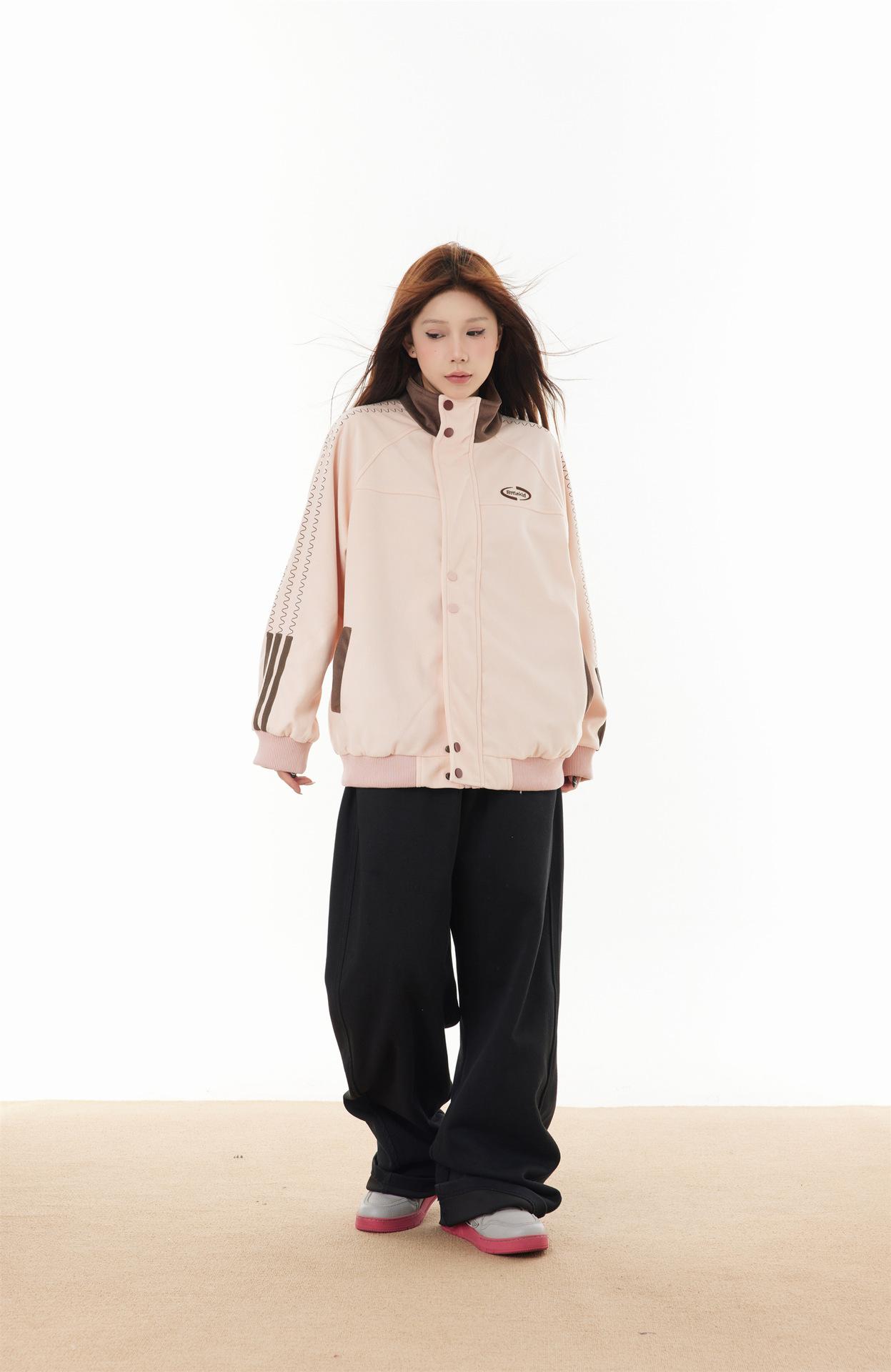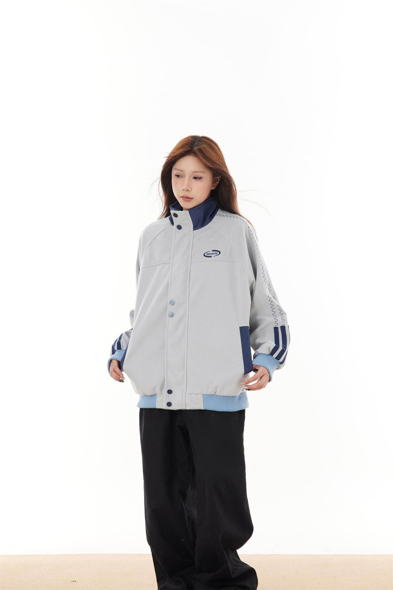 Chaqueta de trabajo holgada y versátil con diseño de rayas de American Street para hombre y mujer, con costuras contrastantes