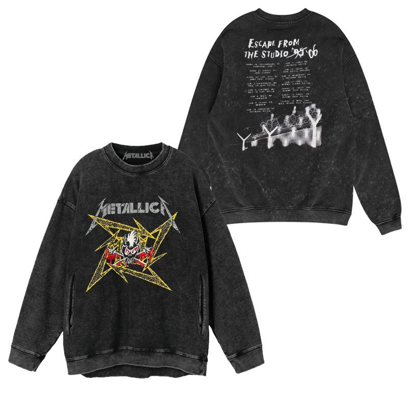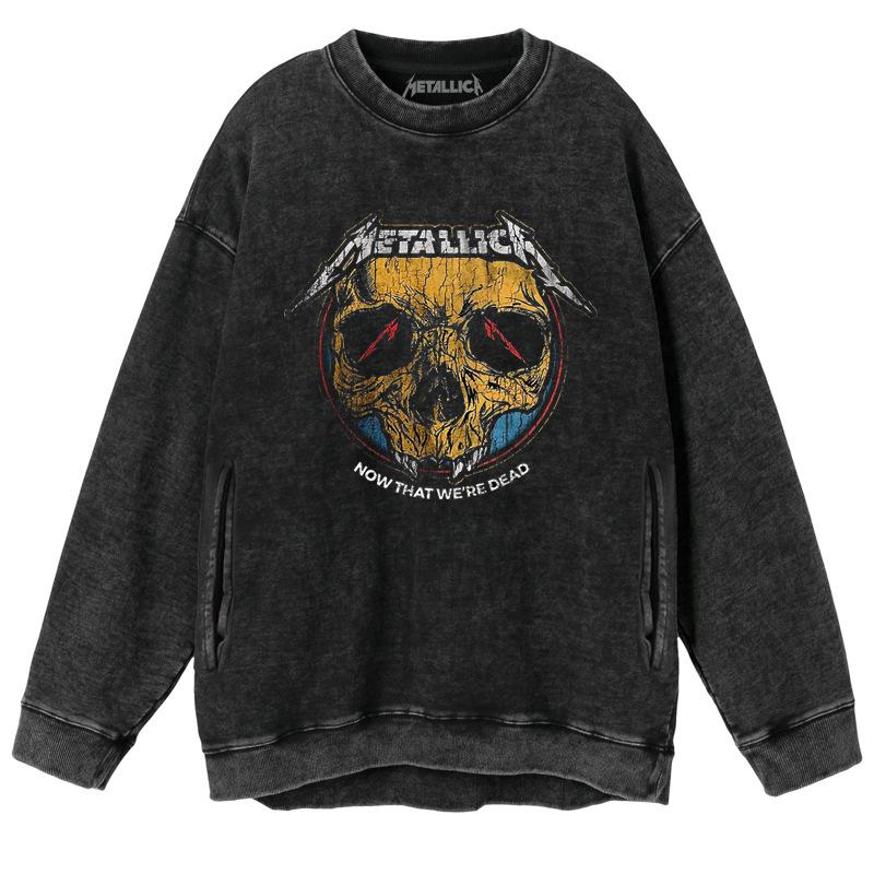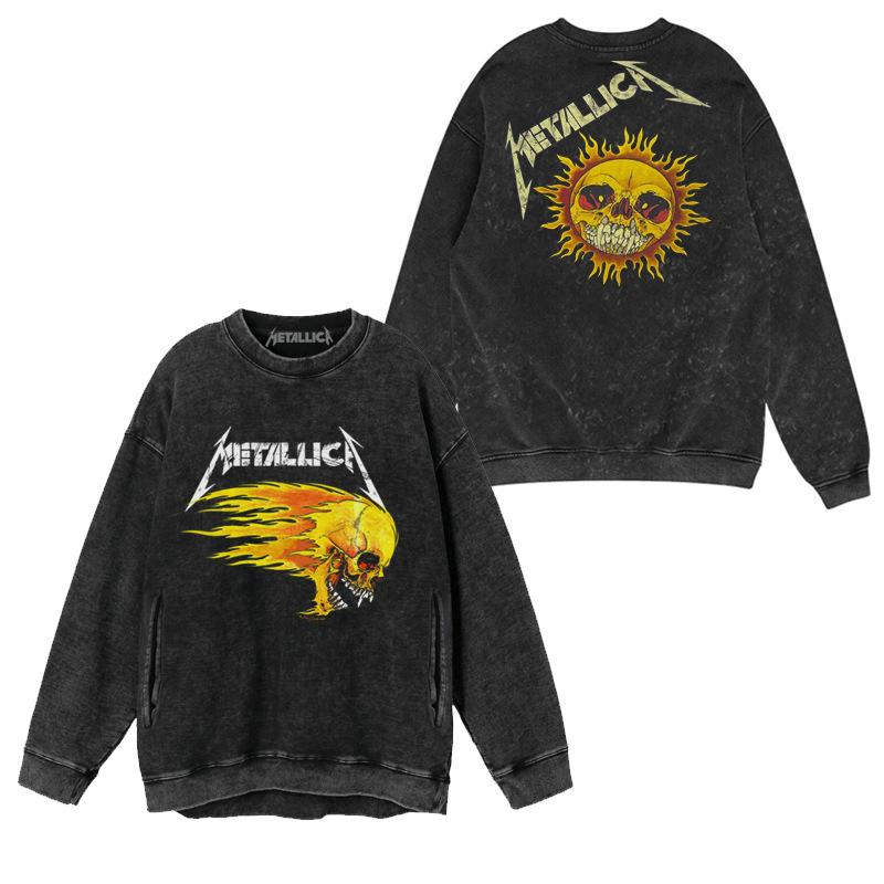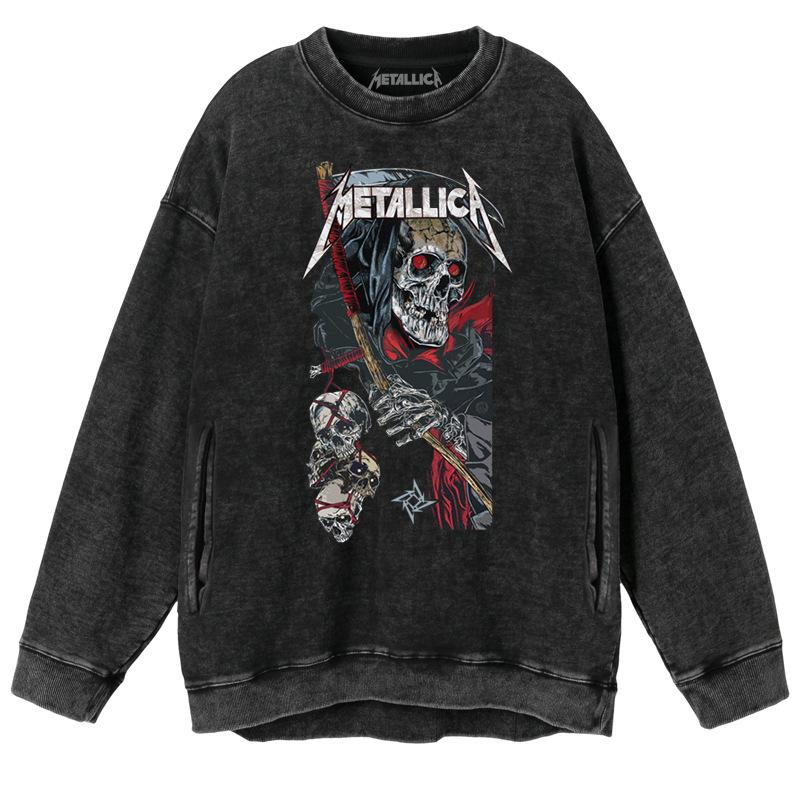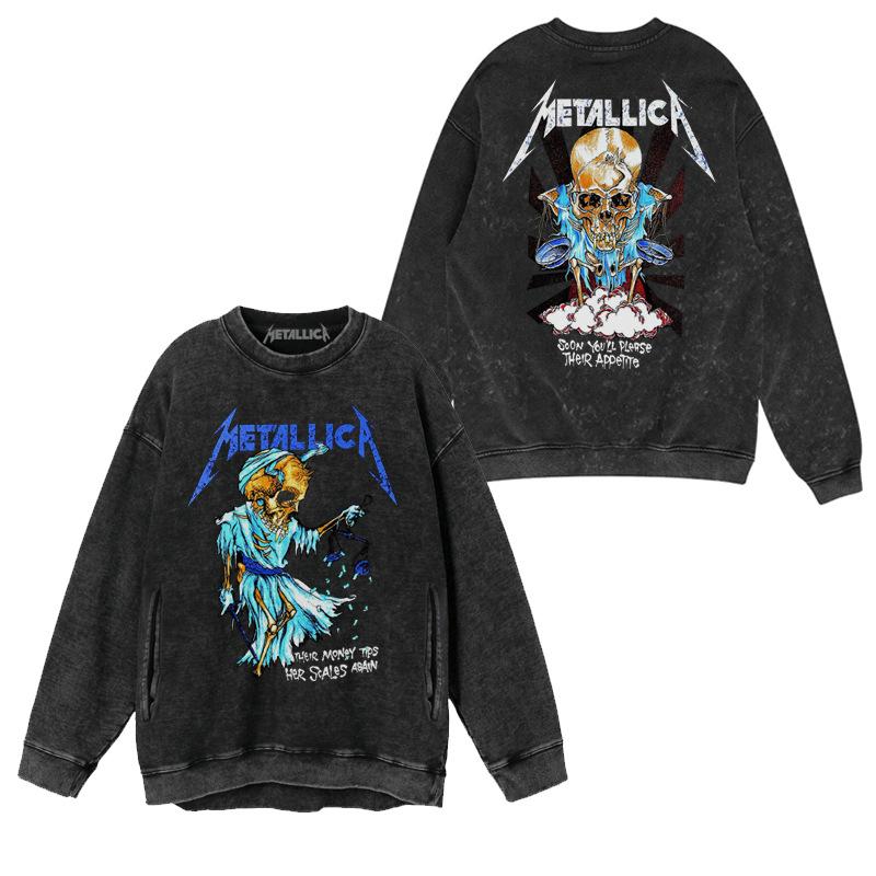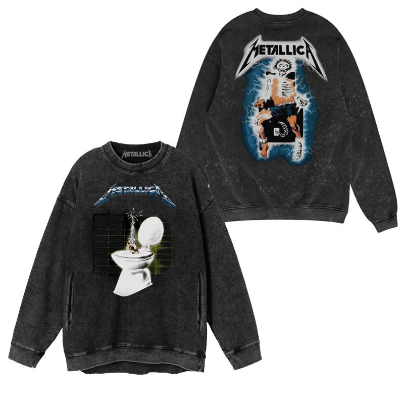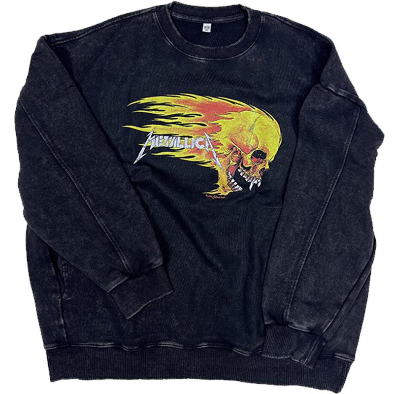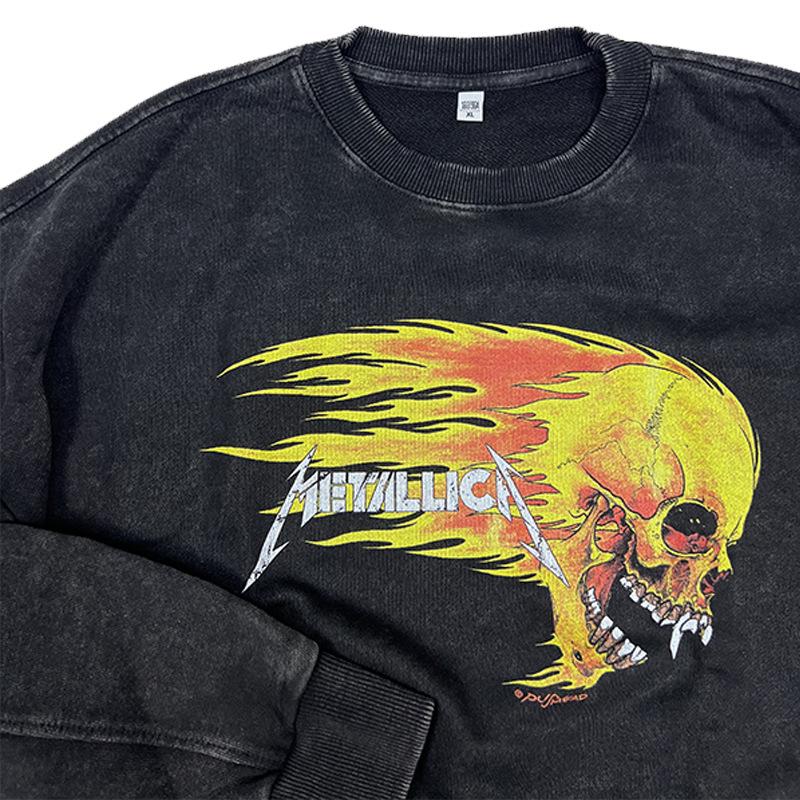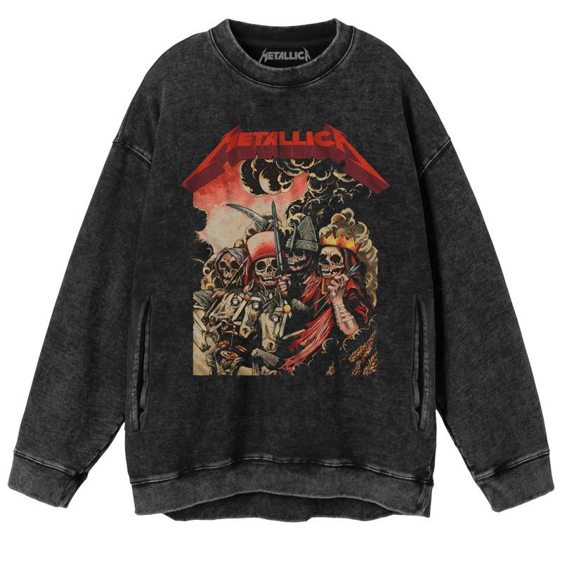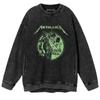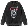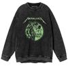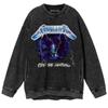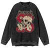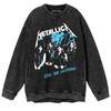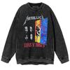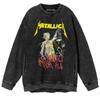 Suéter de cuello redondo para hombre con diseño de batik vintage desgastado y lavado de la banda de metal Metallica King, rock punk
